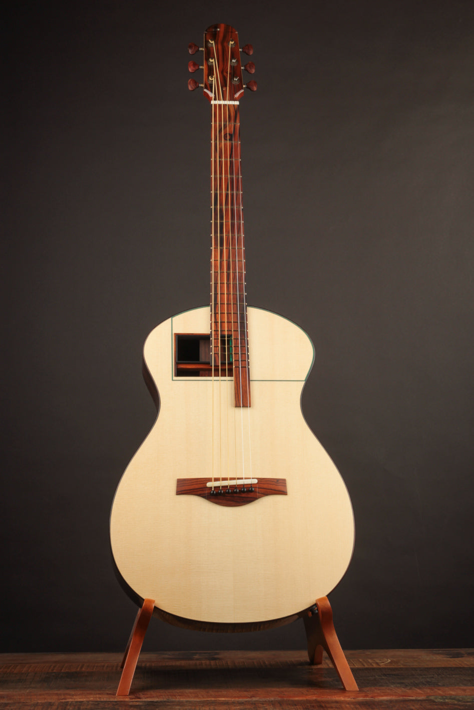 The Music Emporium's relationship with Ray's guitars stretches back to 2007, when we acquired one of his early modified OMs at the Newport Guitar Show. That instrument still starts up conversations in the back office at TME: its sensational tone, modern voice, and massive response were all the sorts of characteristics that present themselves infrequently in our business.
