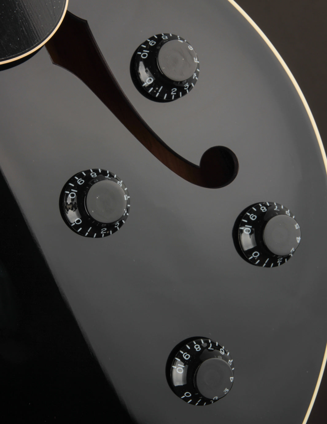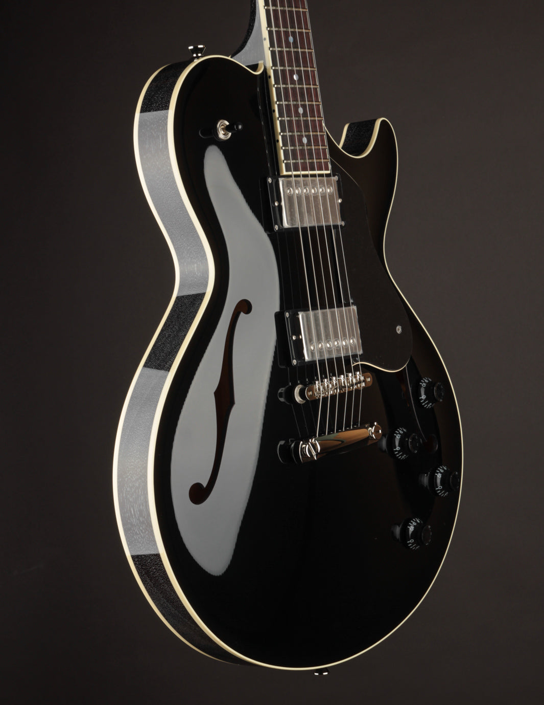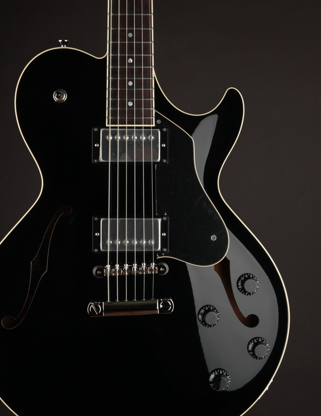 The build quality is flawless, as are the setup and playability. The slightly chunky C carve is the ideal semi-hollow shape for this style of guitar (in our minds). Think early 60s 335 with regard to the depth - definitely not a slim-taper, but also not a late 50s Les Paul either.