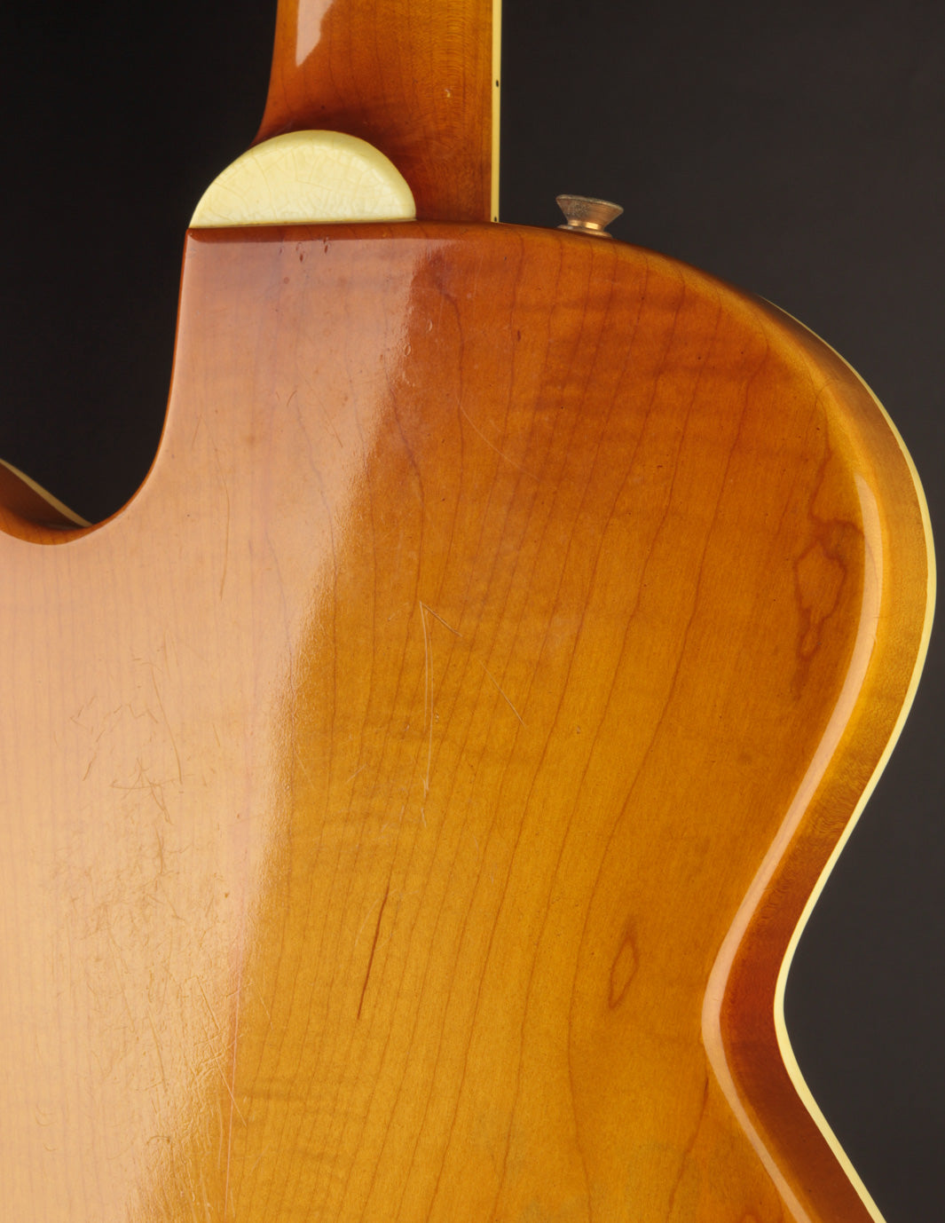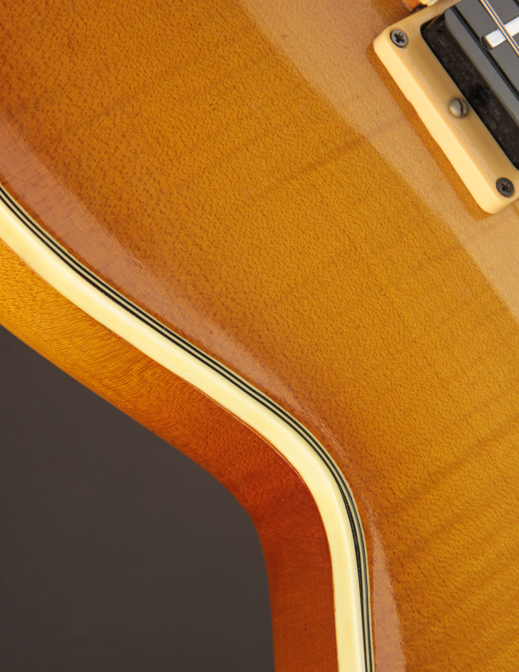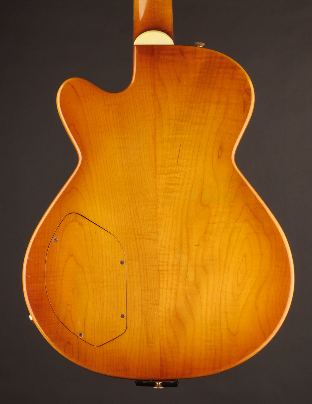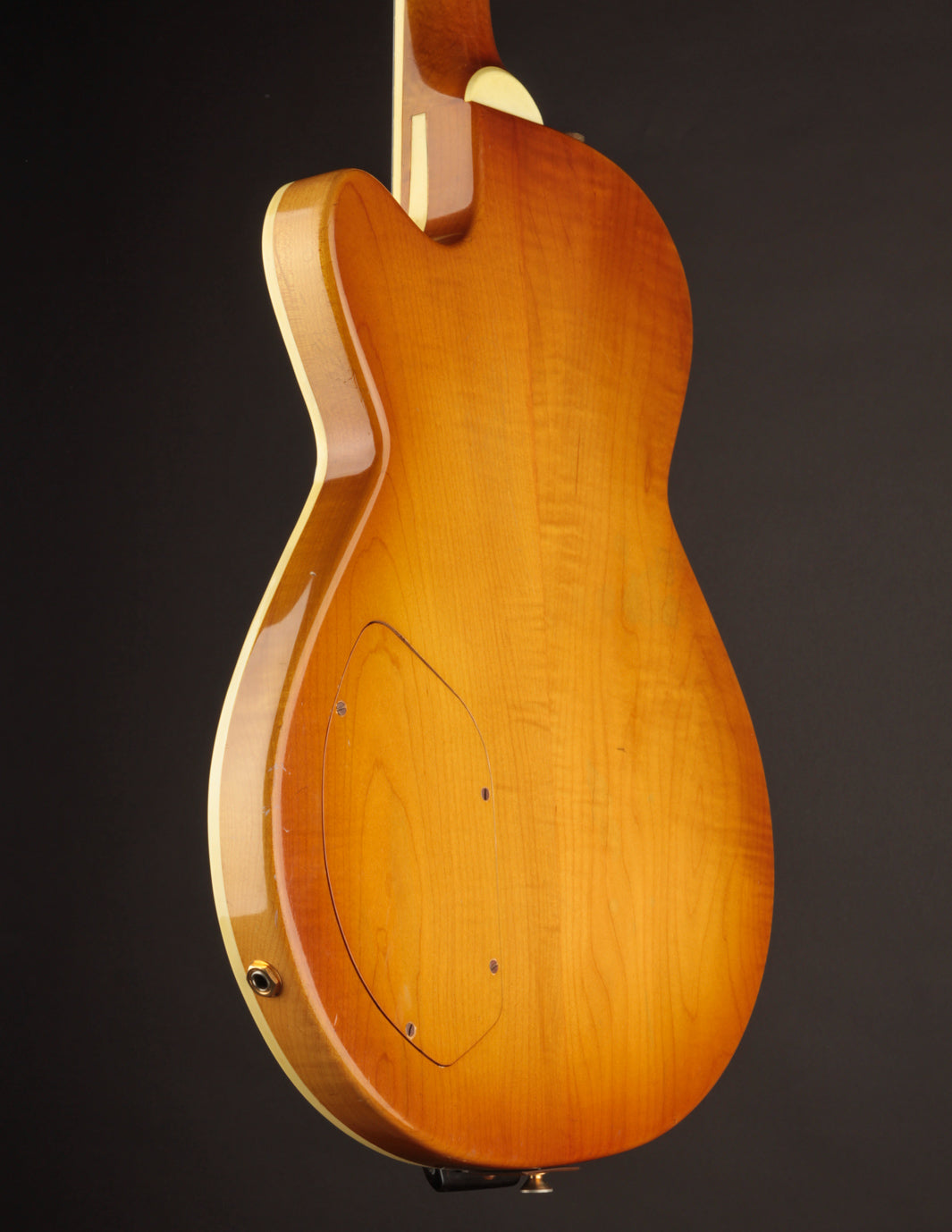 The original owner, a lifelong professional musician who is local to the Boston area, consulted with Jimmy in 1979 to begin building this very guitar. It was a three-year long process, and as the story is told, Jimmy upgraded the wood set to German violin-grade Maple to make up for the lengthy build time. The top is made of a gorgeous slab of carved one-piece Maple, with the body being a bookmatched carved billet of Maple. A control plate was routed out of the Maple, allowing for easy access to the electronics/wiring.