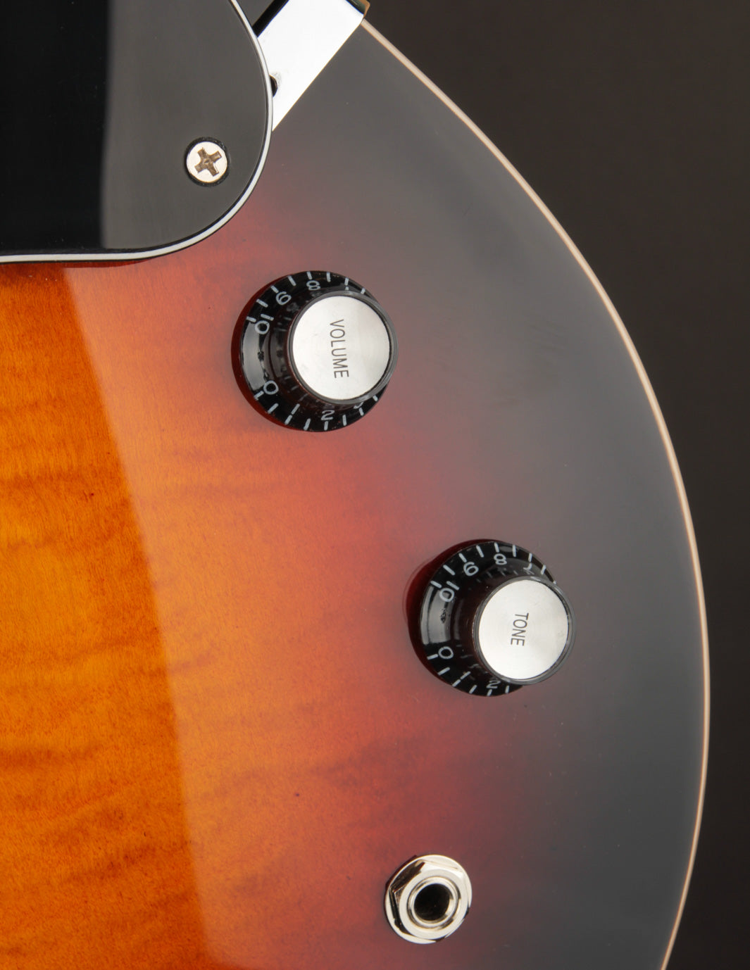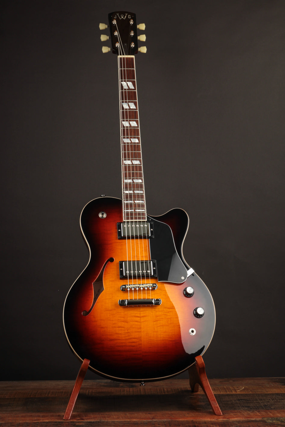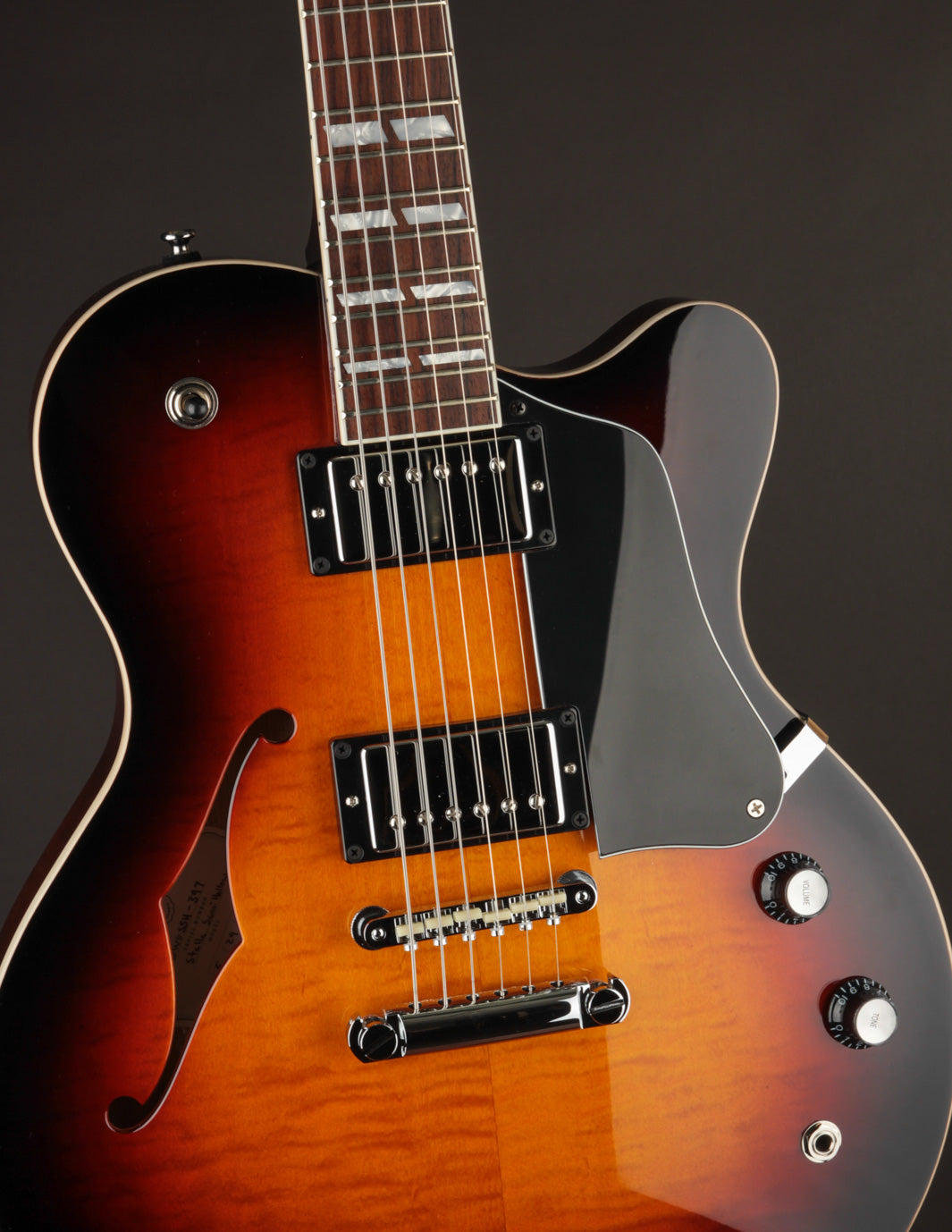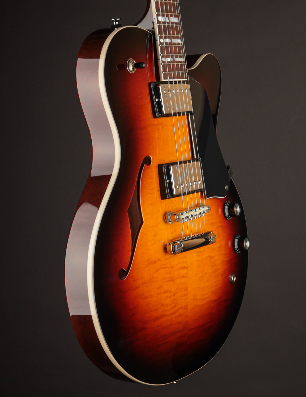 Featuring a curly maple top, semi-hollow mahogany body, mahogany neck w/a rosewood fingerboard, 24.75" scale length, and twin Lollar humbuckers, the Stella semi-hollow pulls from a well-proven combination of specs.