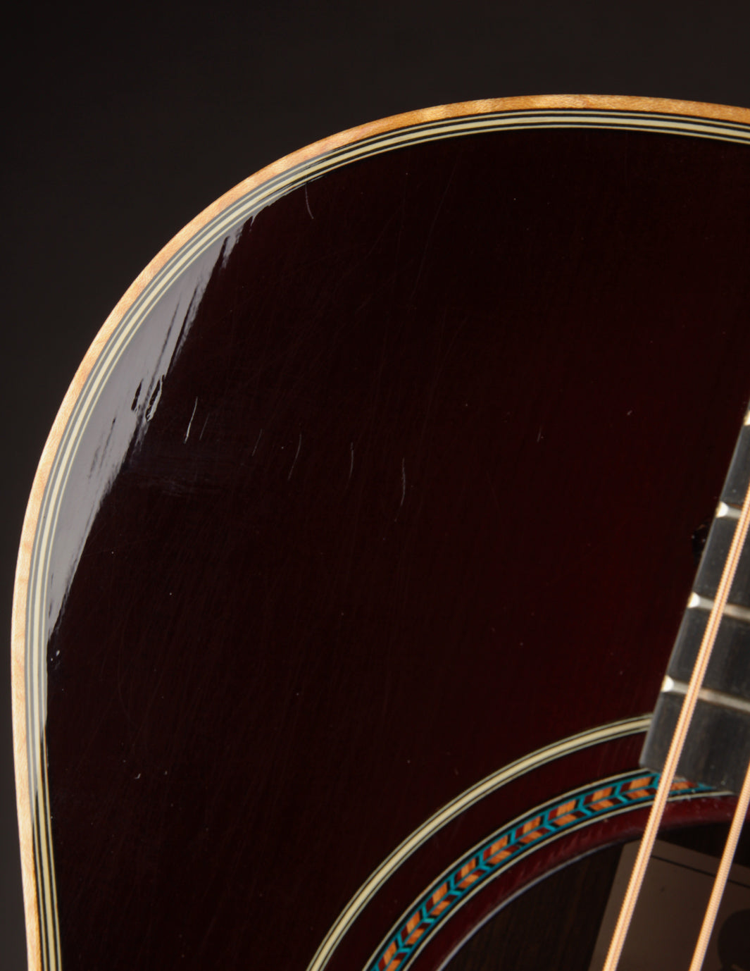 This guitar remains in very good pre-owned condition. Remember that it's been played, so expect to see the associated signs of handling consistent with 18 years of regular use. There's one noticeable ding on the top; and the surfaces show as assortment of light scratches and smudges. Excellent sound and playability! Priced with hardshell case.