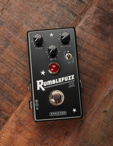 In celebration of Spaceman’s 15th anniversary, we revisit the very first Spaceman pedal with the Rumblefuzz II. We added several upgrades to the original 2009 Rumblefuzz circuit, including: 10db’s of additional output volume; an additional third toggle switch position; and increased tonal range on the Rumble control.