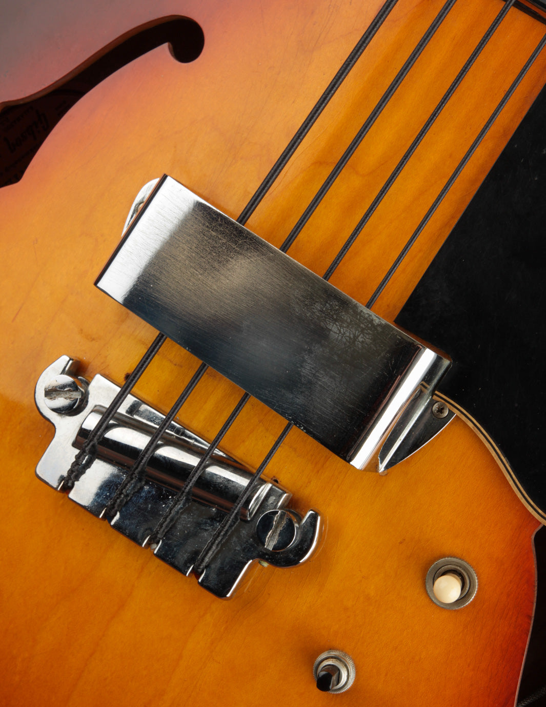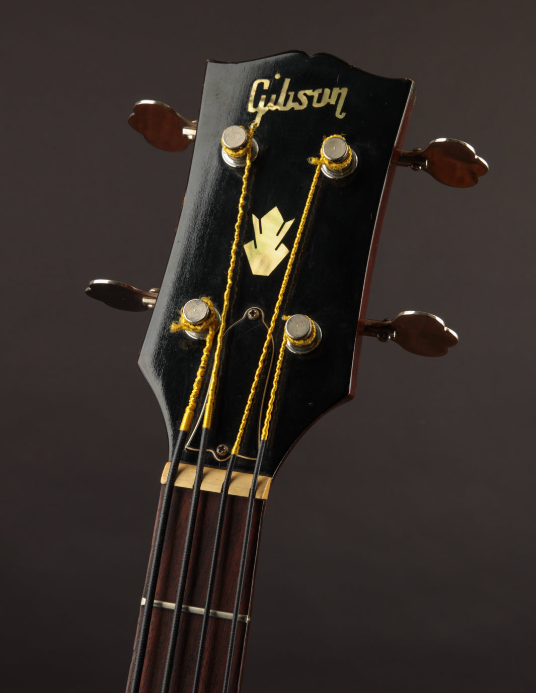 Introduced in 1958, the Gibson EB-2 or 'Electric Bass' followed the formula of the guitar-equivalent ES-335 by way of a semi-hollow electric model with a laminated Maple body, and Mahogany neck with Rosewood fingerboard. It was originally offered as a single-pickup guitar and evolved into a twin-pickup variant you see before you.