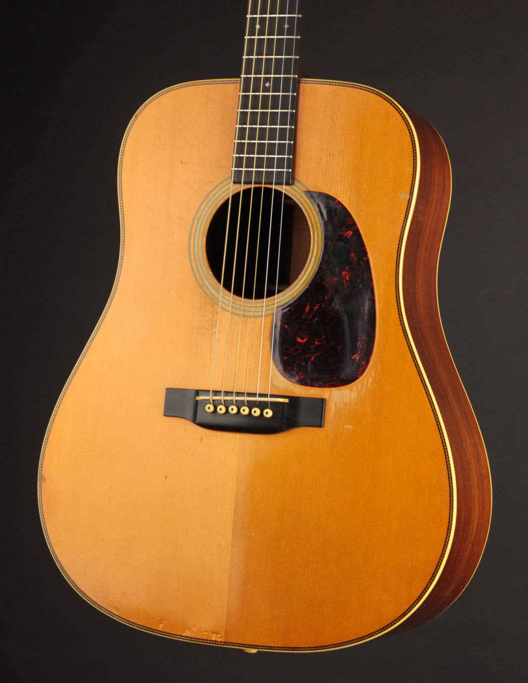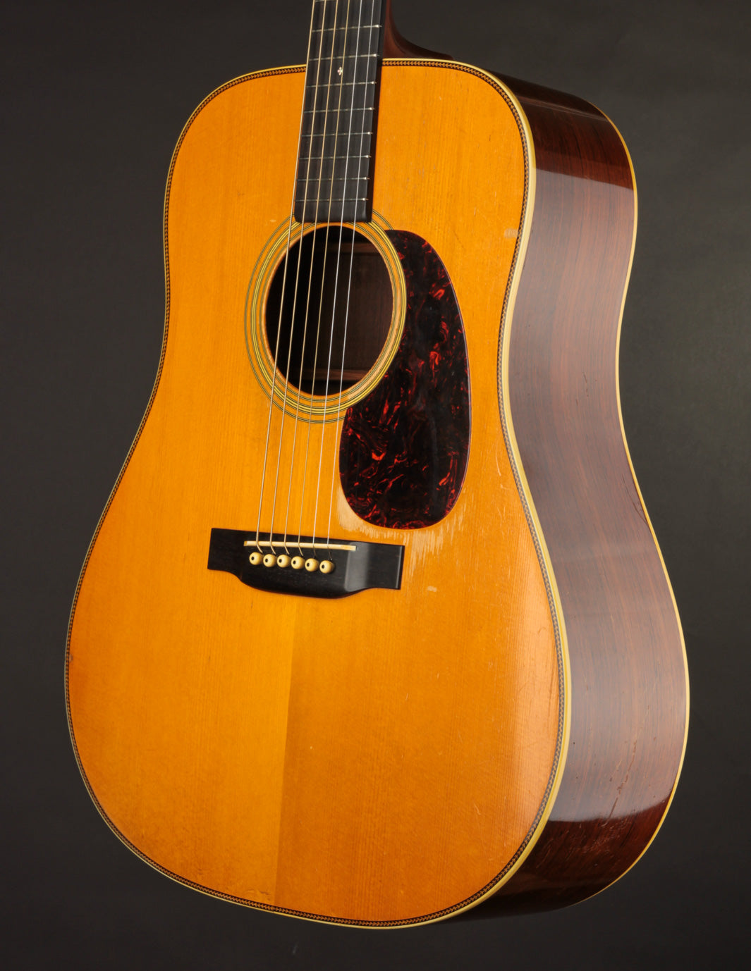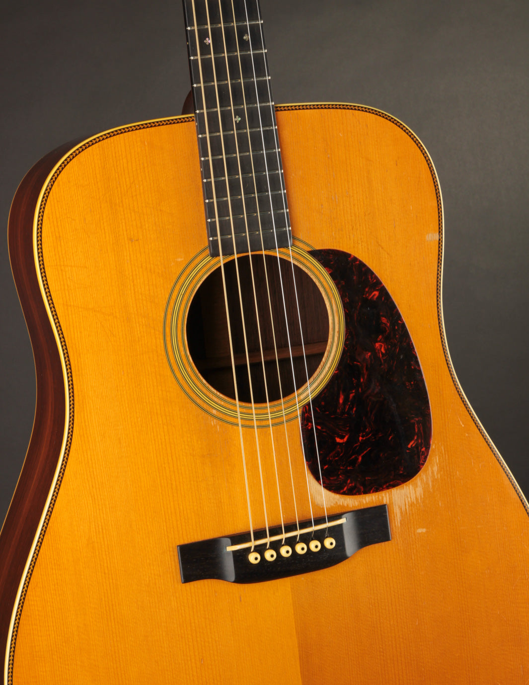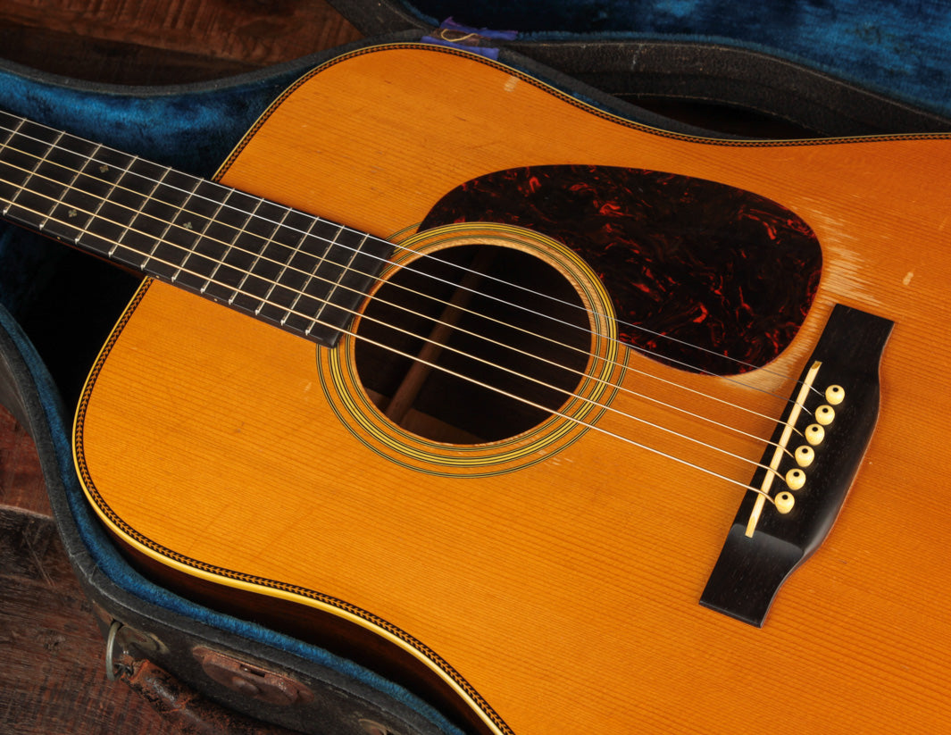 Ironically, we hesitate to discuss sound with a guitar like this one. What can we say that you haven't heard before? Suffice it to say ~ this is a best of all worlds scenario for guitar lovers. The instrument has been played hard for decades; and it's also been meticulously preserved. Its only service appointment was under the supervision of an expert. And its lineage is the stuff of a guitar worthy of a display in the Martin museum. We cannot think of a more perfect-sounding herringbone D-28 that this one, with its inimitable combination of kick-drum-sized bass, thick, bluegrass-ready mids, and bright-but-never-harsh trebles all working in perfect harmony. This guitar is more than its heralded, storybook voice ~ it's a piece of one family's musical history. And we're proud to have made it part of ours as well.