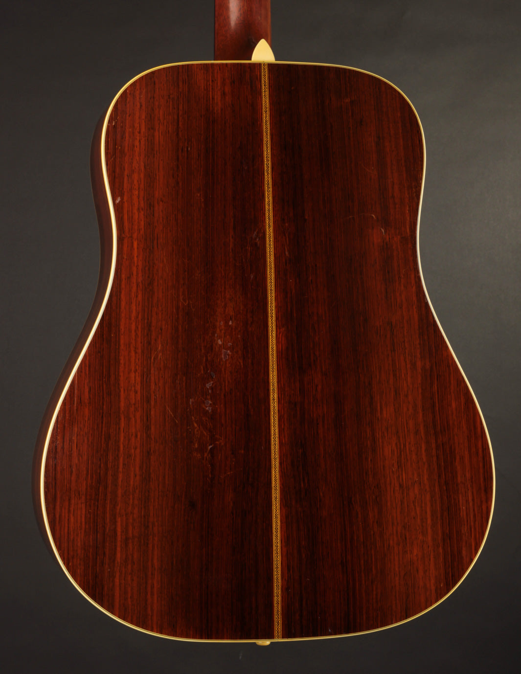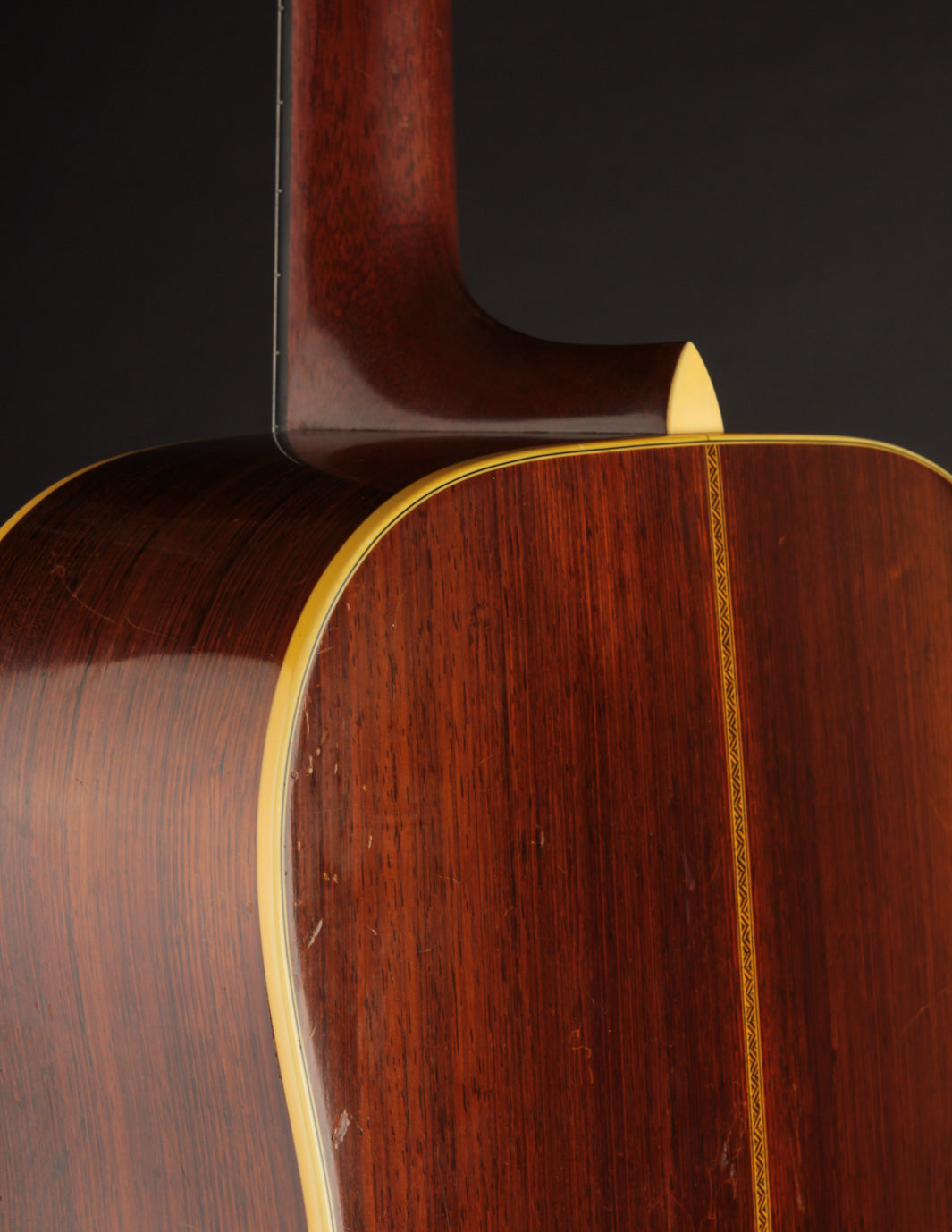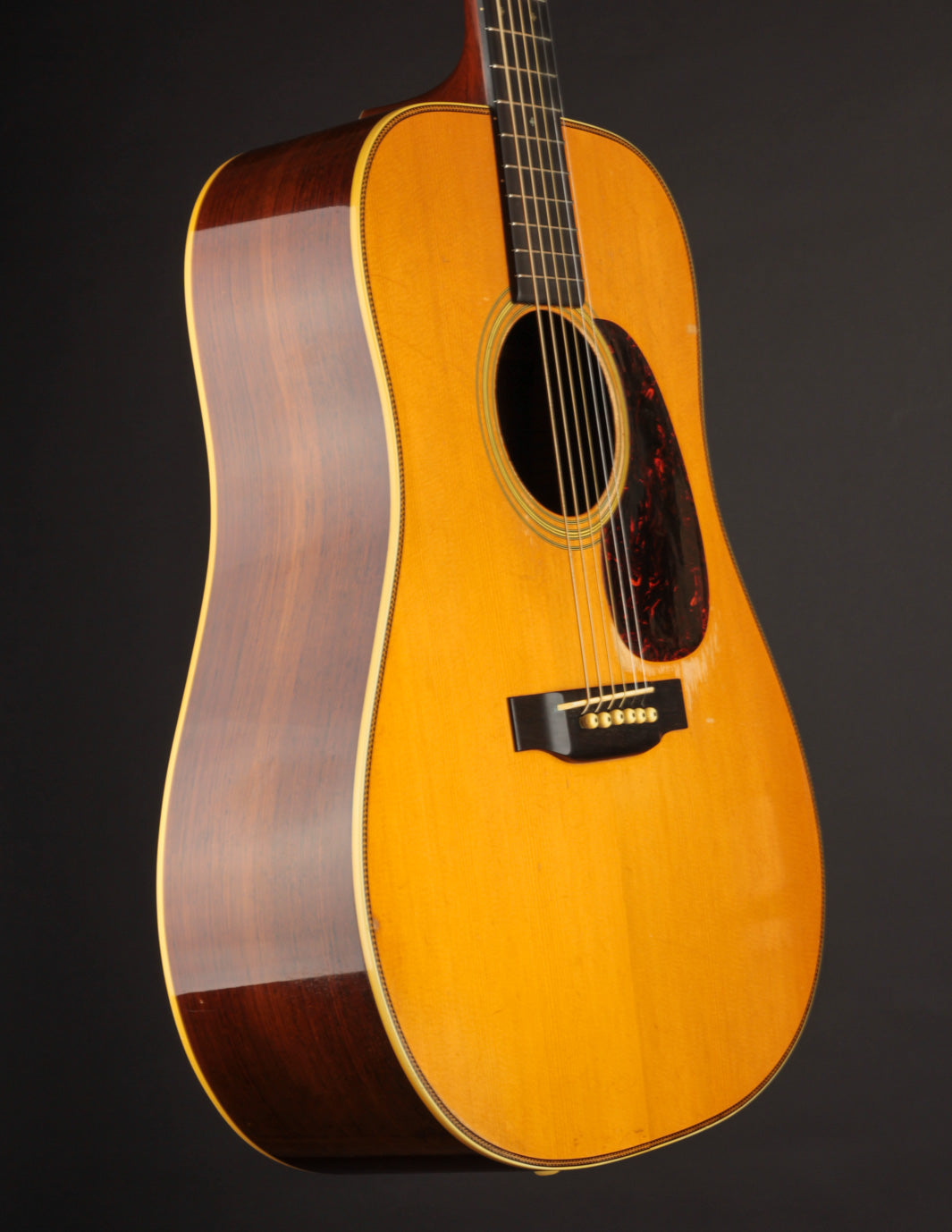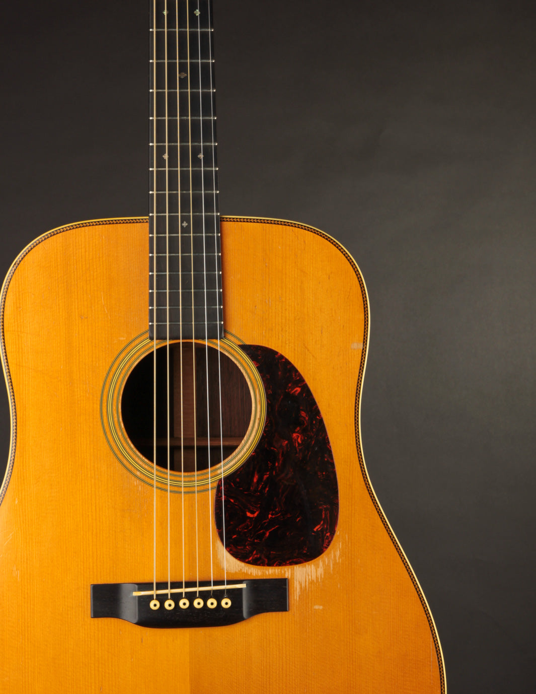 Ironically, we hesitate to discuss sound with a guitar like this one. What can we say that you haven't heard before? Suffice it to say ~ this is a best of all worlds scenario for guitar lovers. The instrument has been played hard for decades; and it's also been meticulously preserved. Its only service appointment was under the supervision of an expert. And its lineage is the stuff of a guitar worthy of a display in the Martin museum. We cannot think of a more perfect-sounding herringbone D-28 that this one, with its inimitable combination of kick-drum-sized bass, thick, bluegrass-ready mids, and bright-but-never-harsh trebles all working in perfect harmony. This guitar is more than its heralded, storybook voice ~ it's a piece of one family's musical history. And we're proud to have made it part of ours as well.