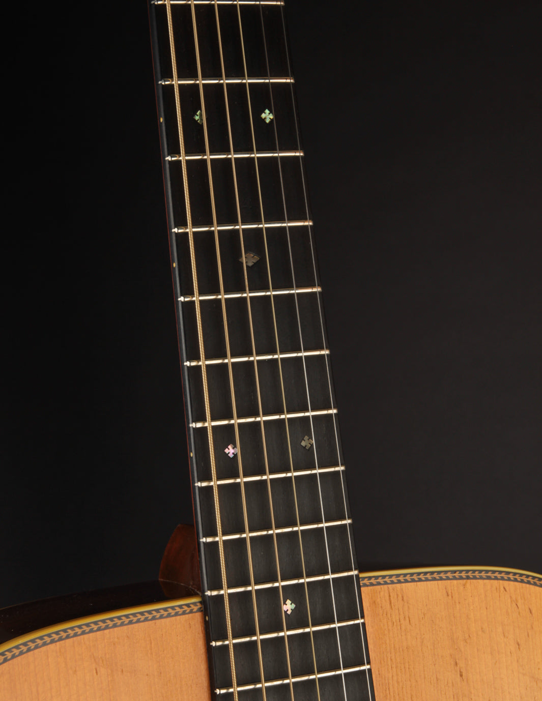 On Friday, March 14th, 1941, a worker at the C.F. Martin factory stamped the number, "77299," on the neck block of a D-28 ordered by Grinnell Brothers Music House in Detroit, Michigan. As we admire this magnificent instrument on a Friday morning, 30,100 days after it received its number, we can't help but ruminate on the bygone era in which it was produced; and we're extremely proud to be a small part of its story, as we shepherd it forward to its next steward. This guitar exemplifies everything we value in our day-to-day business: excellence of craftsmanship, pride of ownership, and unflinching dedication to presenting the work of those we admire in an elegant fashion. There were no "Friday guitars" made at C.F. Martin in the pre-war era; and we like to think that whoever applied number 77299 to this one would be happy to see that it's still being cherished all these years later.