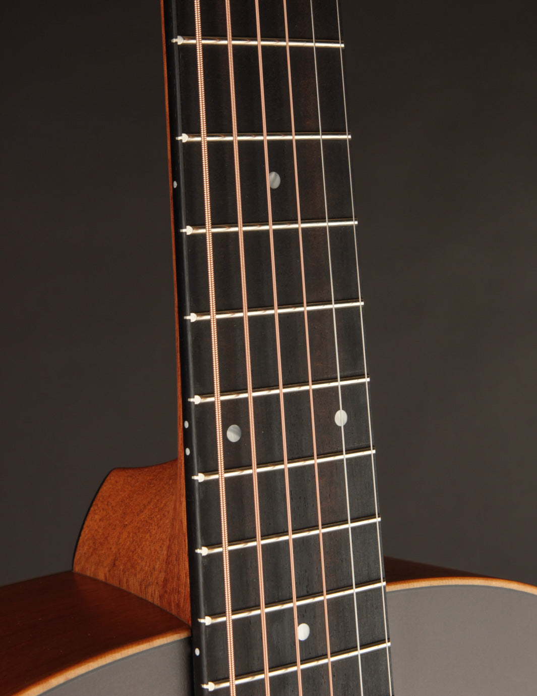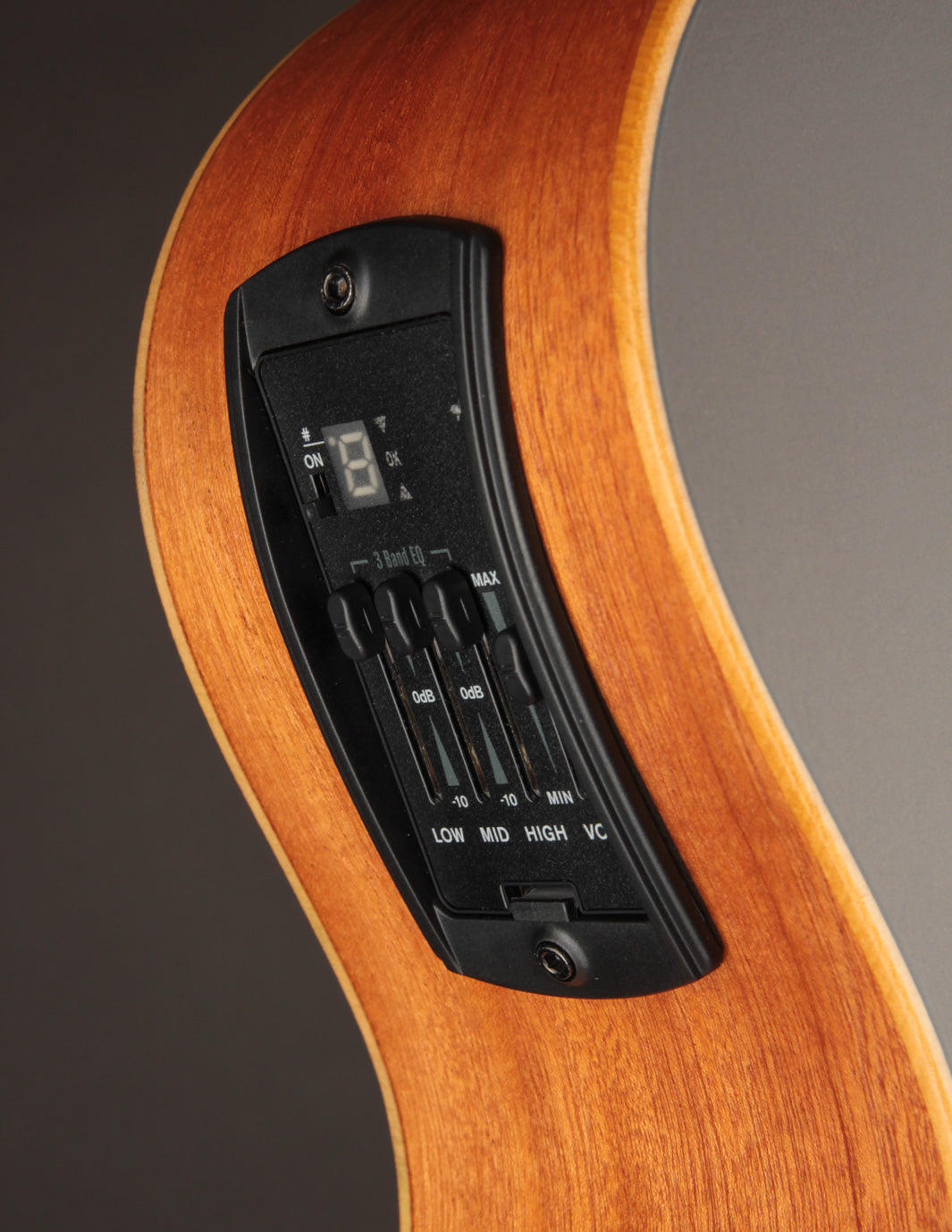 With its slightly transparent black soundboard, you can catch subtle glimpses of the spruce grain beneath, adding to its cool, understated vibe. The torrefied Sitka spruce top and layered sapele back and sides deliver a clear, well-balanced tone with plenty of projection, while the roasted top adds a touch of vintage warmth to the sound.