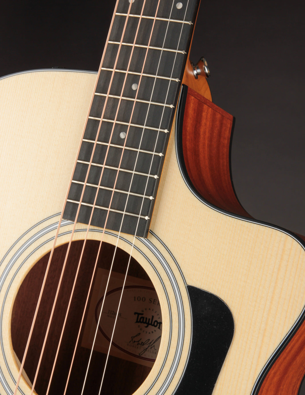 Taylor's limited edition 112ce-S brings an attractive Grand Concert entrant to the 100 Series, benefitting fingerstyle players attracted to its slightly smaller body size. With layered Sapele back & sides and a solid Spruce top, the 112ce-S provides bright, balanced tone beautifully fit for stage or studio. Priced with Taylor gig bag.