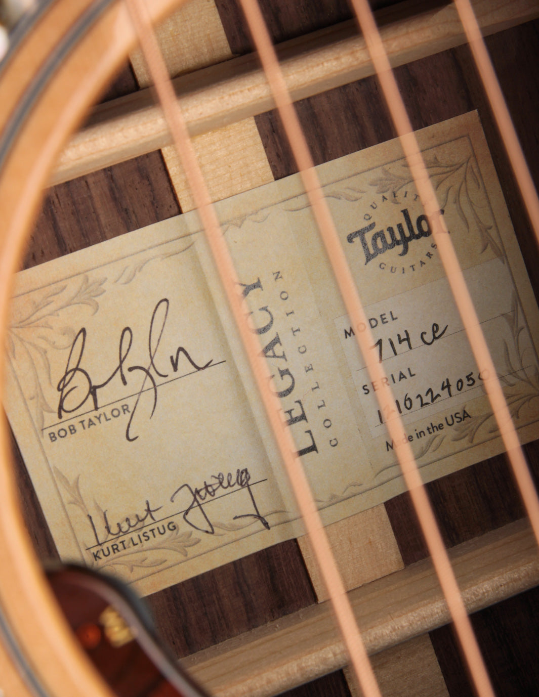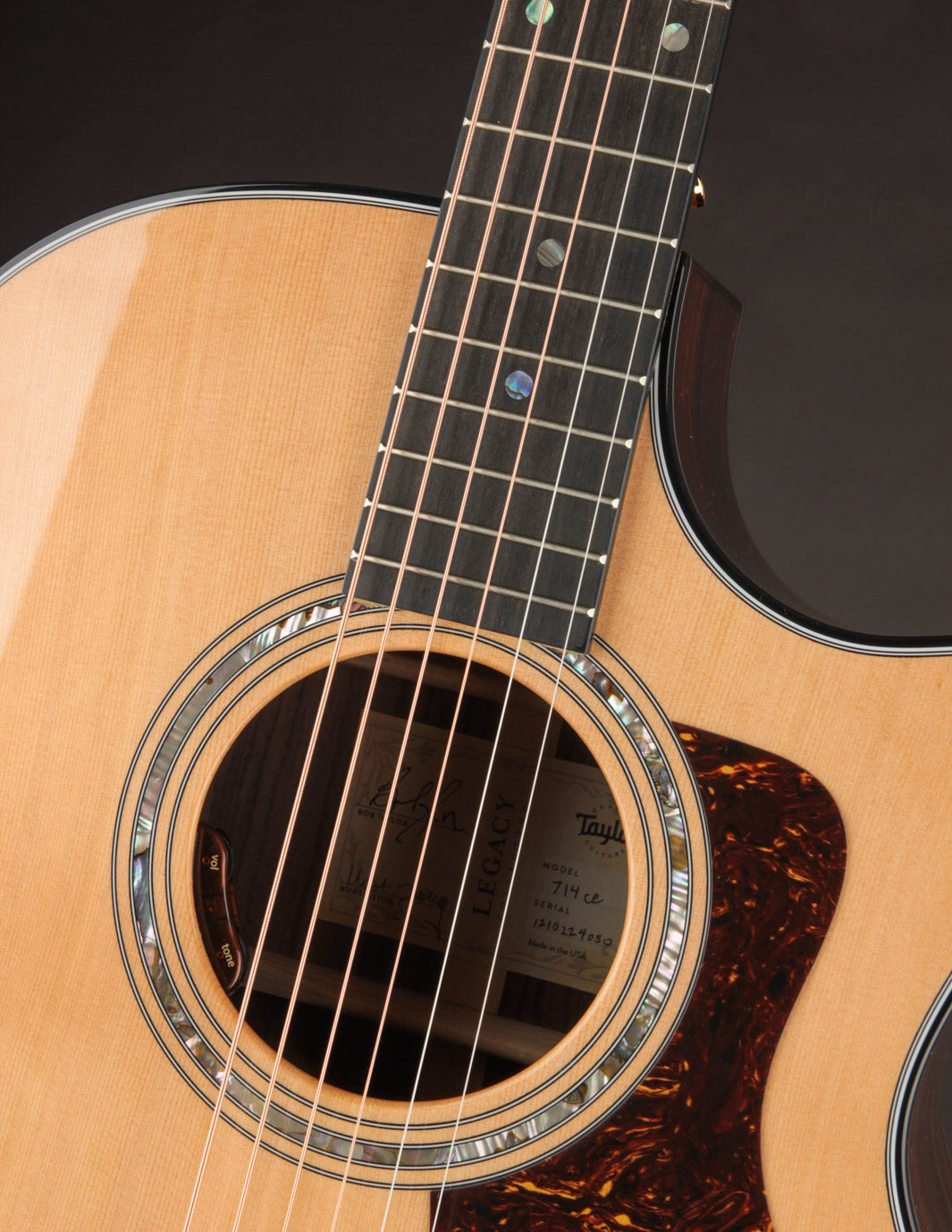 The Legacy 714ce is a testament to the groundbreaking vision of Bob Taylor, celebrating the introduction of the iconic Grand Auditorium body shape in 1994.