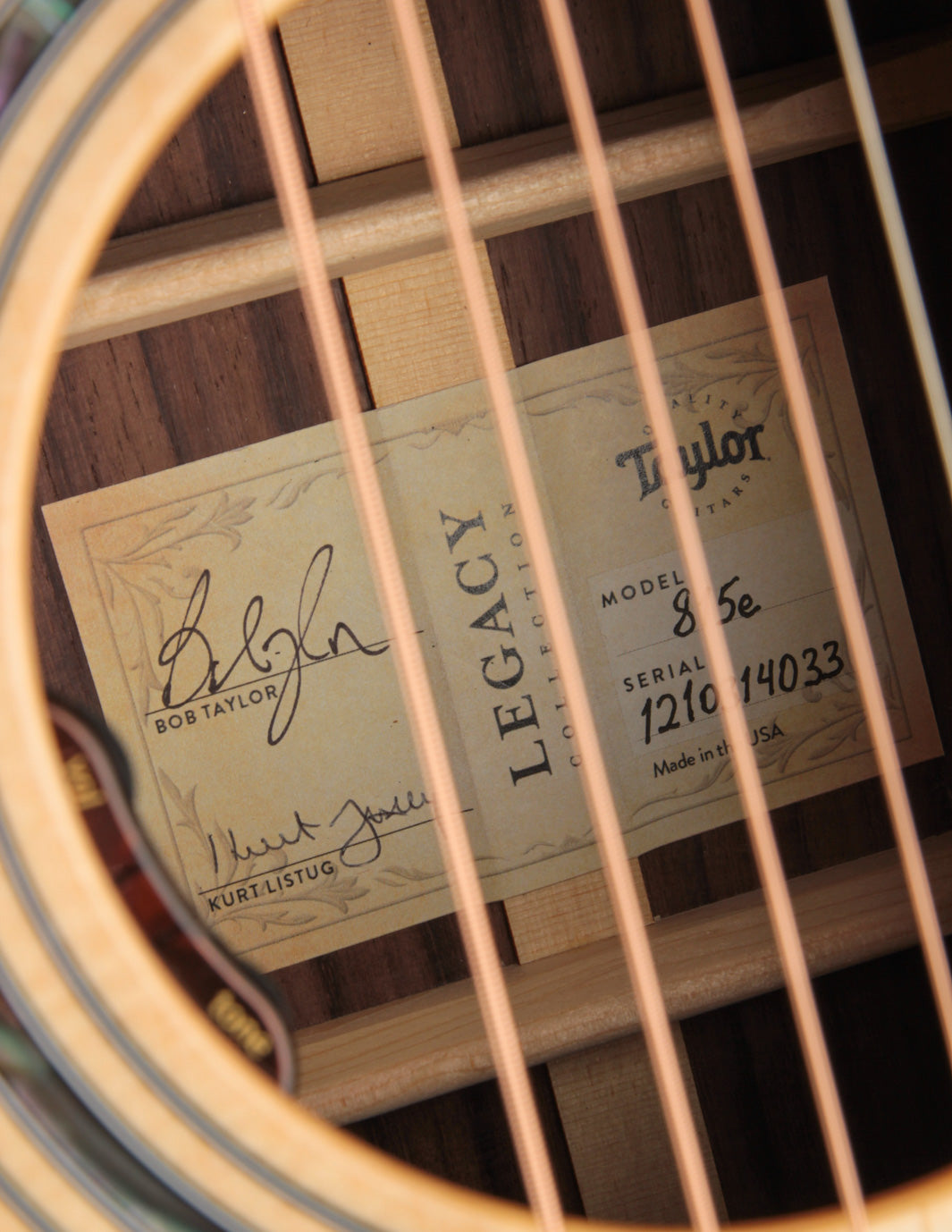"The Taylor Guitars Legacy Collection celebrates a half-century of Taylor musical innovation...The first 100 guitars built of each model feature an interior label personally signed by Taylor founders Bob Taylor and Kurt Listug."