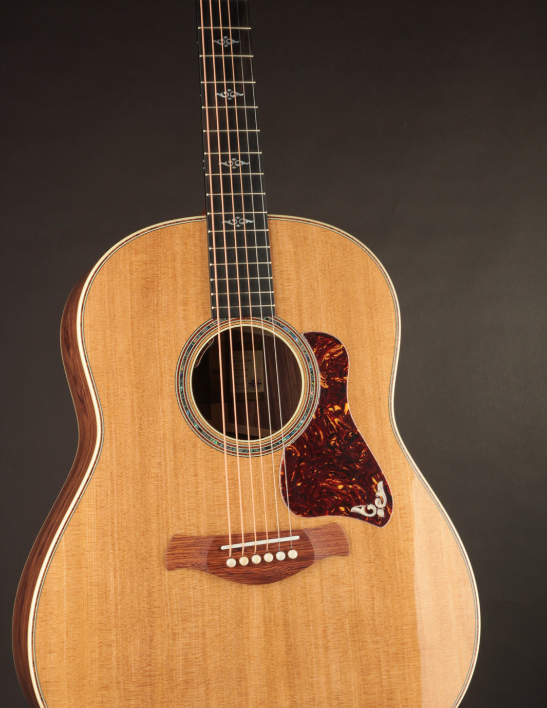 The 817E brings 800s series appointments and tone woods in a Grand Pacific shape to the popular Gold Label Series!
