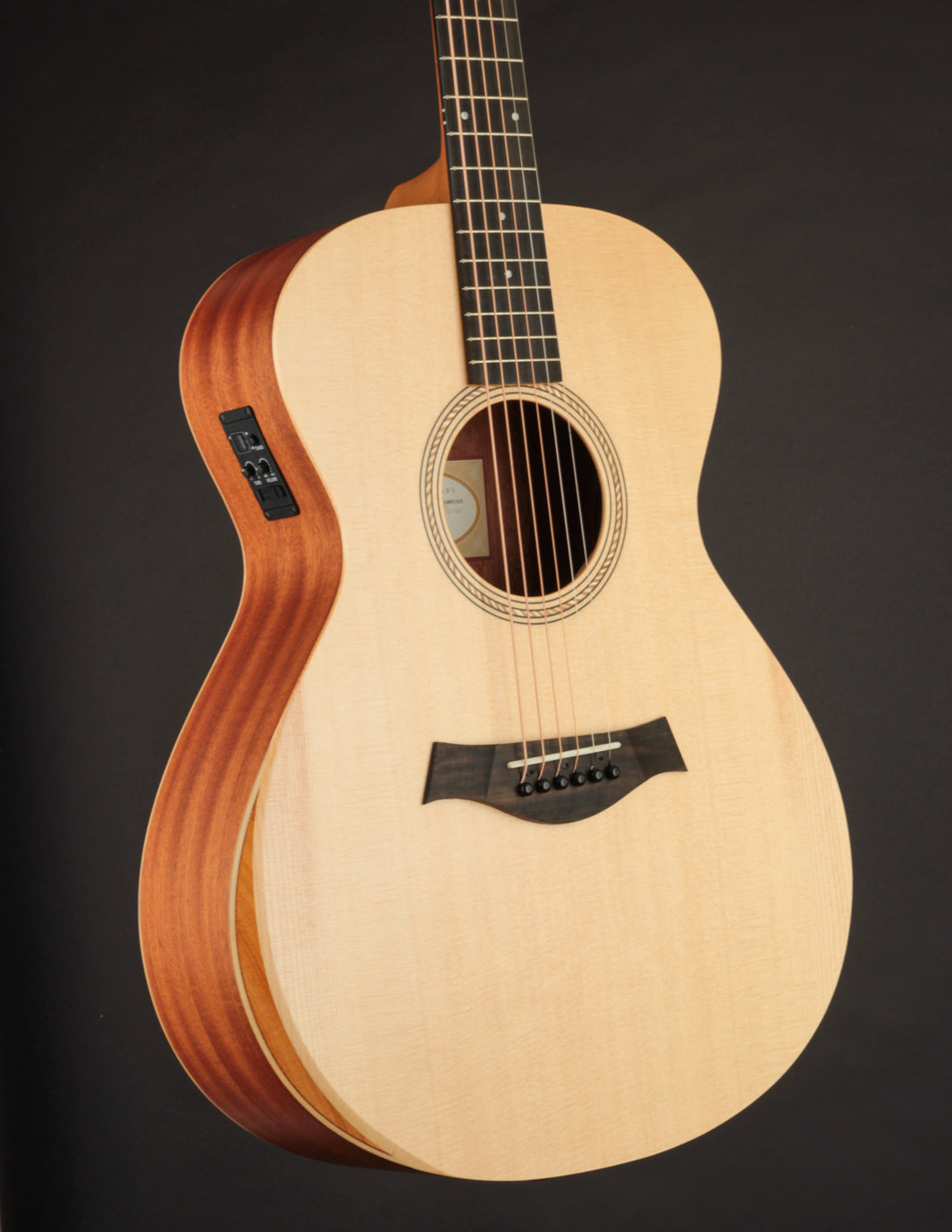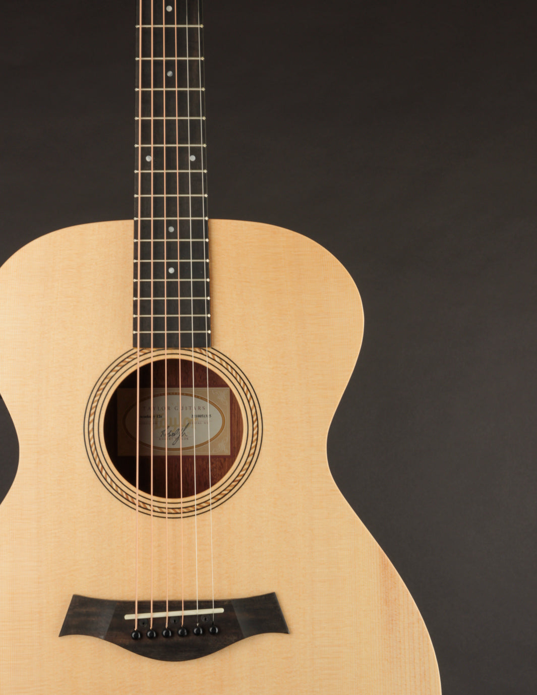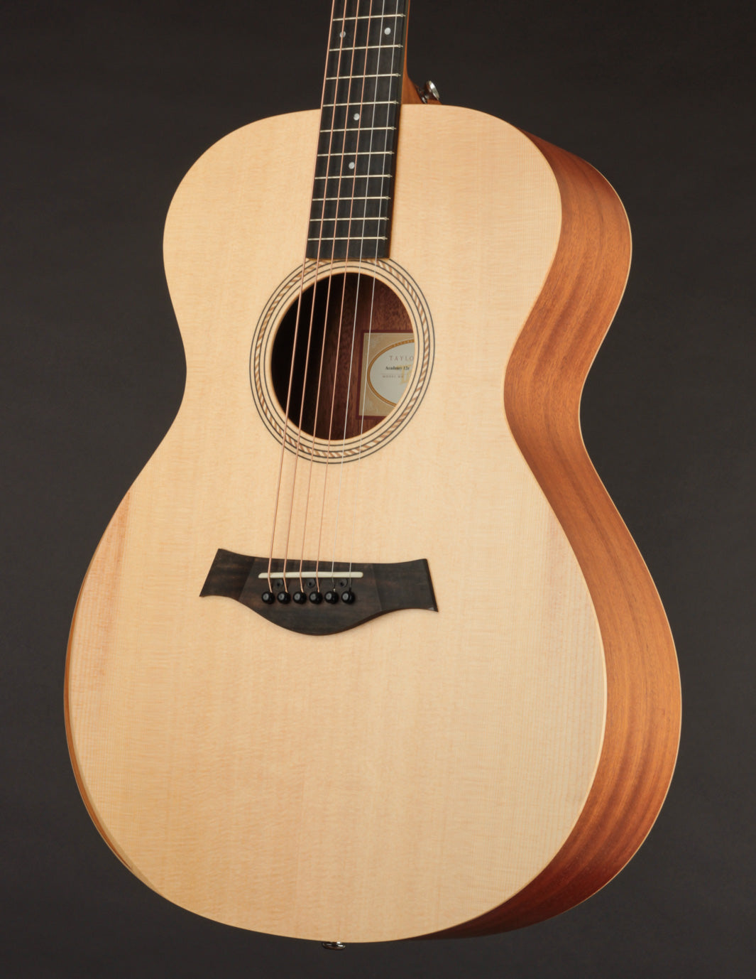 But the A12 serves up more than just a comfortable feel, yielding a balanced, robust sound that mingles the sparkle of solid spruce with the punchy, responsive midrange of layered sapele. With that versatile sound and a forgiving, unintrusive design, the A12 gives you the power to pursue your musical inspiration, whether it's your first guitar or a new addition for your collection." ~ Taylor Guitars