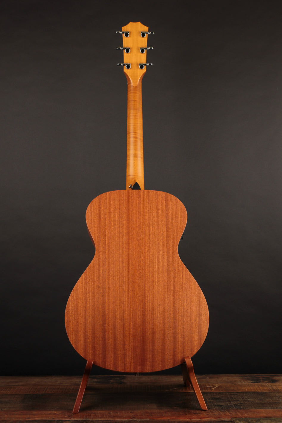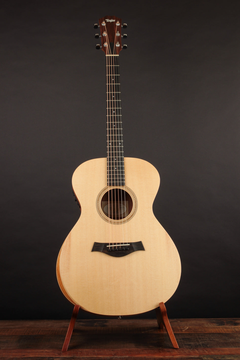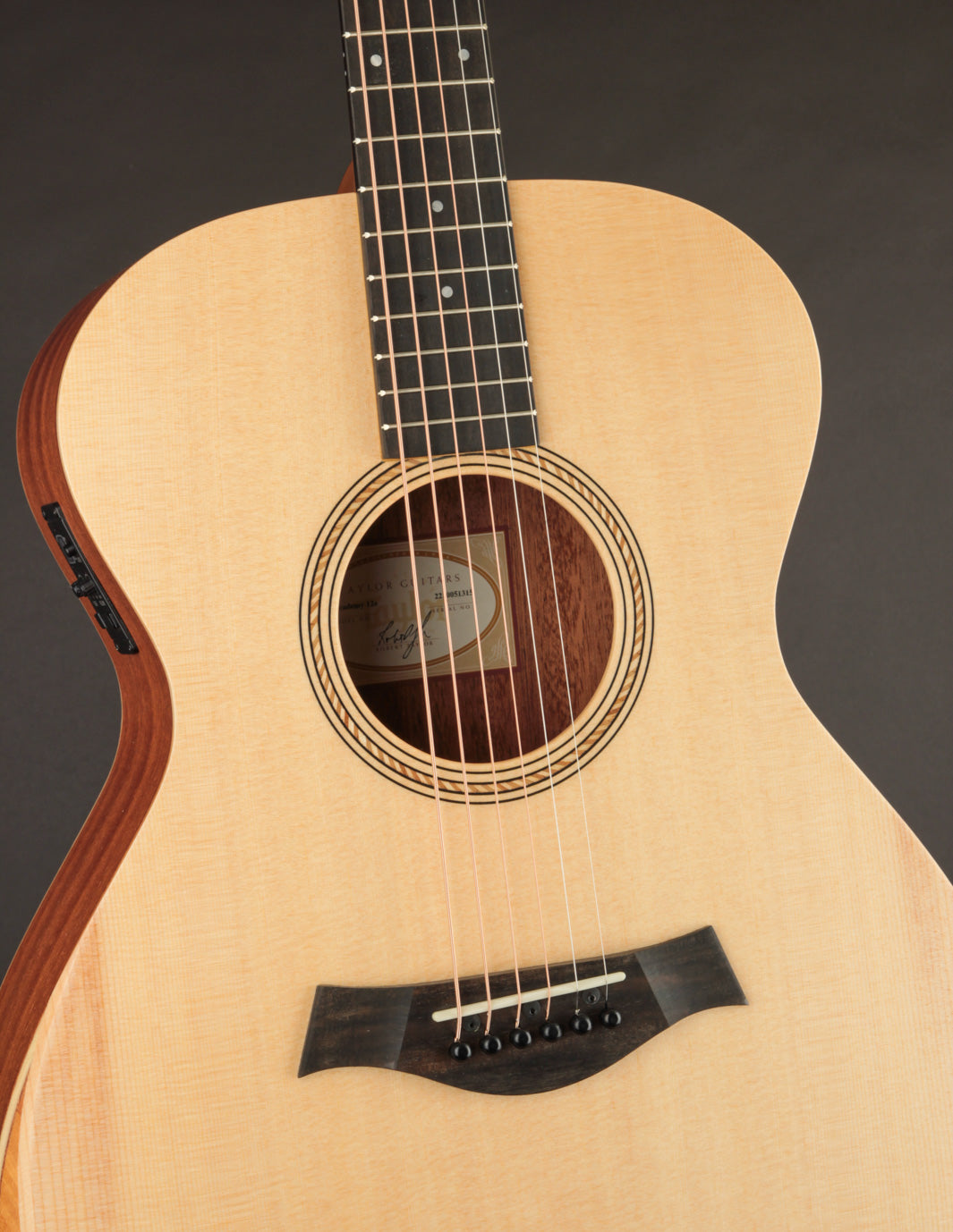 But the A12 serves up more than just a comfortable feel, yielding a balanced, robust sound that mingles the sparkle of solid spruce with the punchy, responsive midrange of layered sapele. With that versatile sound and a forgiving, unintrusive design, the A12 gives you the power to pursue your musical inspiration, whether it's your first guitar or a new addition for your collection." ~ Taylor Guitars