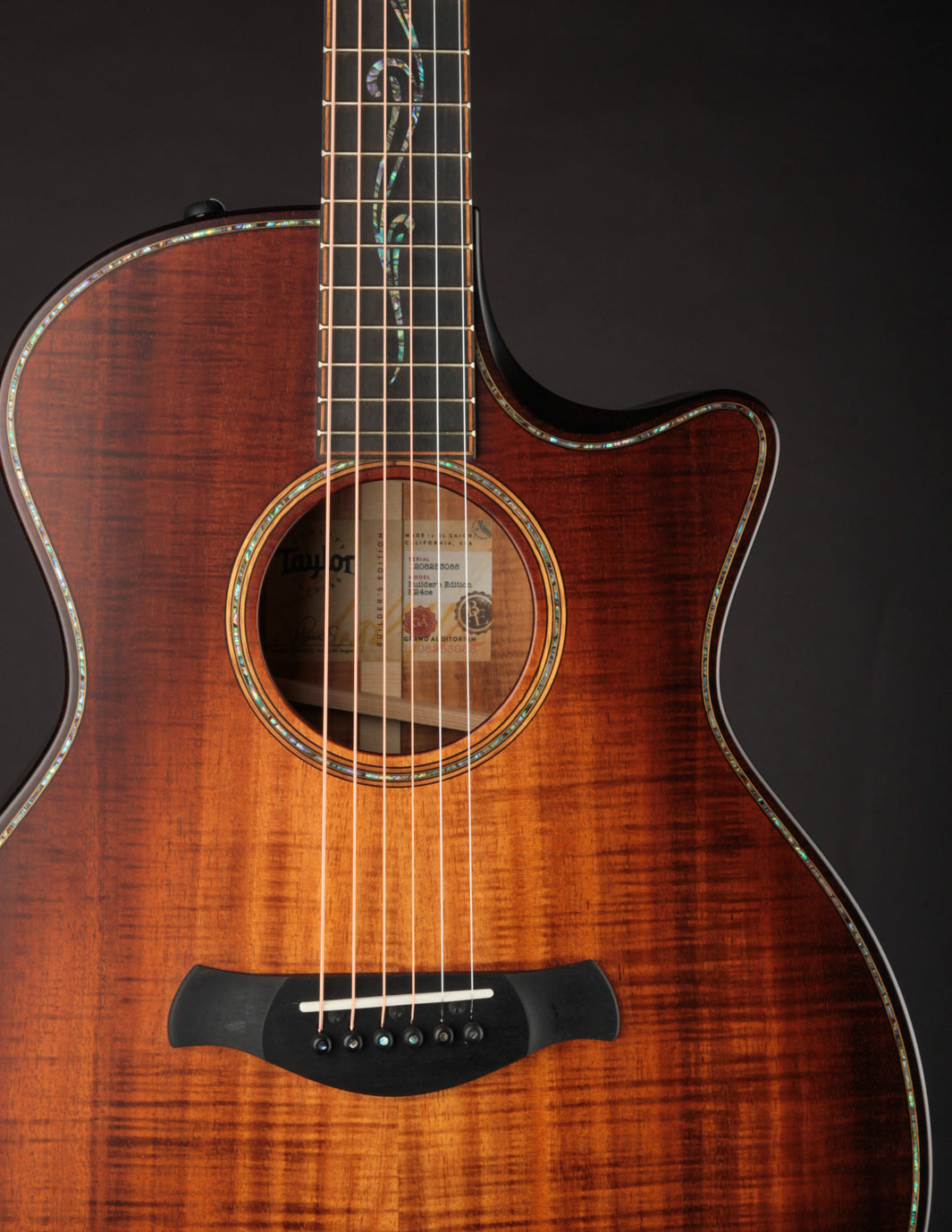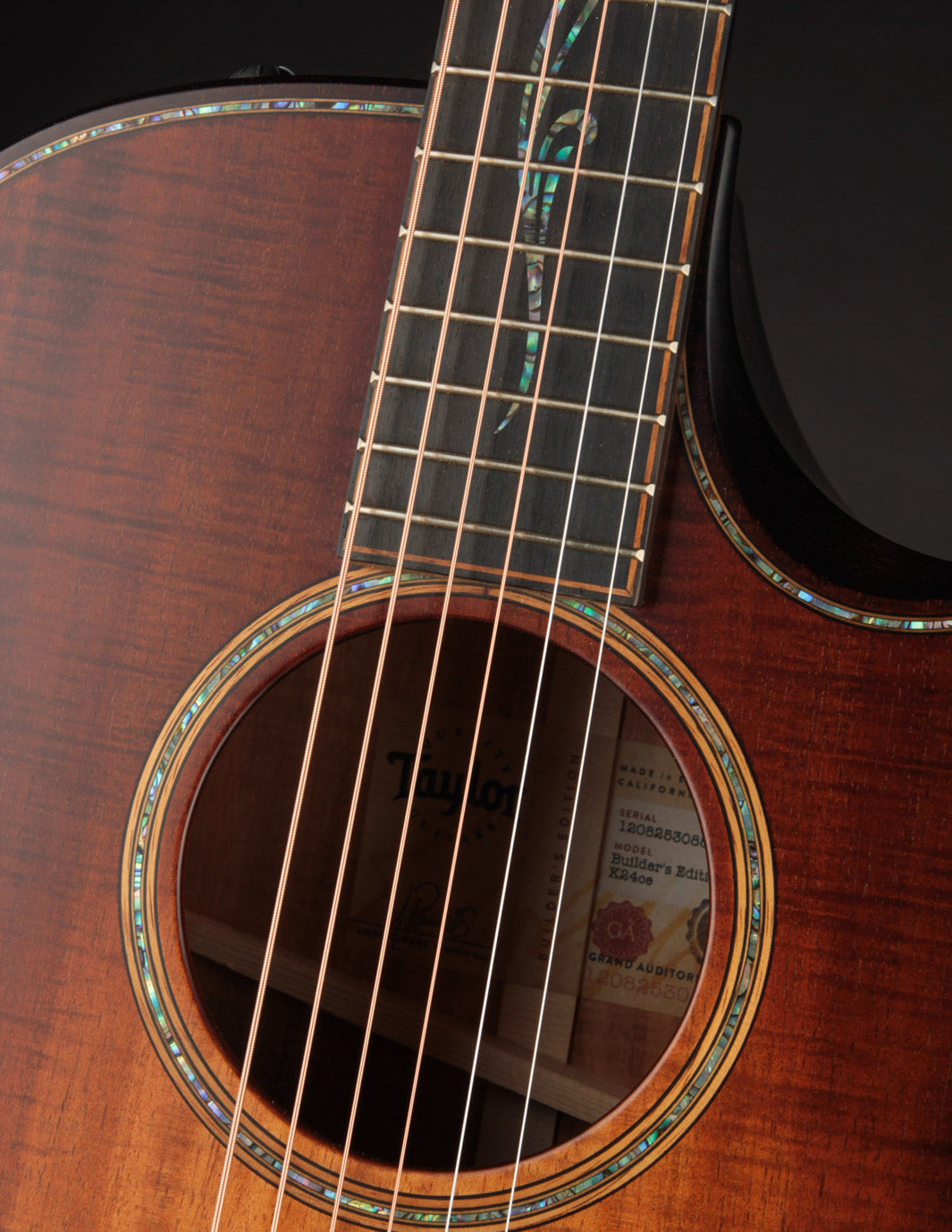 Sonically, the K24CE Builder's Edition bears the hallmarks of Koa’s unique tone, with high-end clarity balanced against the volume and sustain improvements delivered by the new bracing scheme. Koa’s inimitable aging properties also make this guitar a special find, opening and adding depth and sweetness as the guitar is played over time.