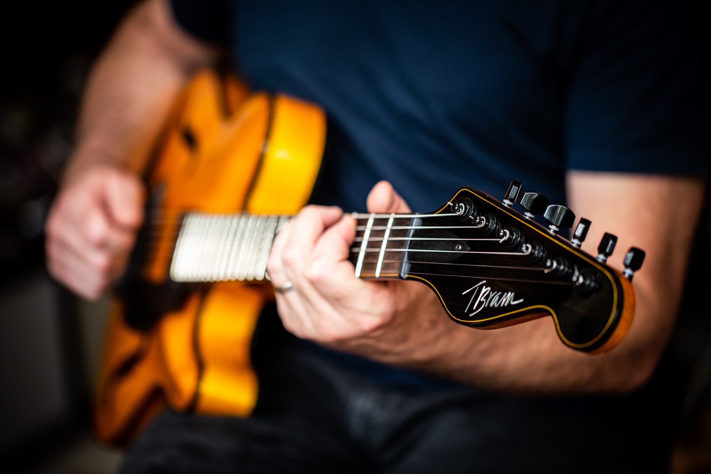 His Tribute Archtop is a perfect example - merging the rich, resonant voice of a classic archtop with the sleek, familiar comfort of a Telecaster. The result is an approachable, scaled-down guitar that delivers all the warmth and depth you’d expect from a full-sized archtop, in a package that feels instantly inviting in the hands.