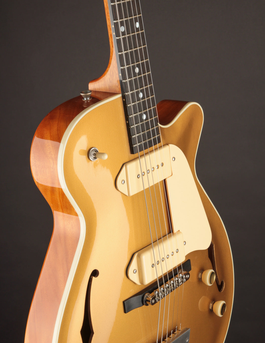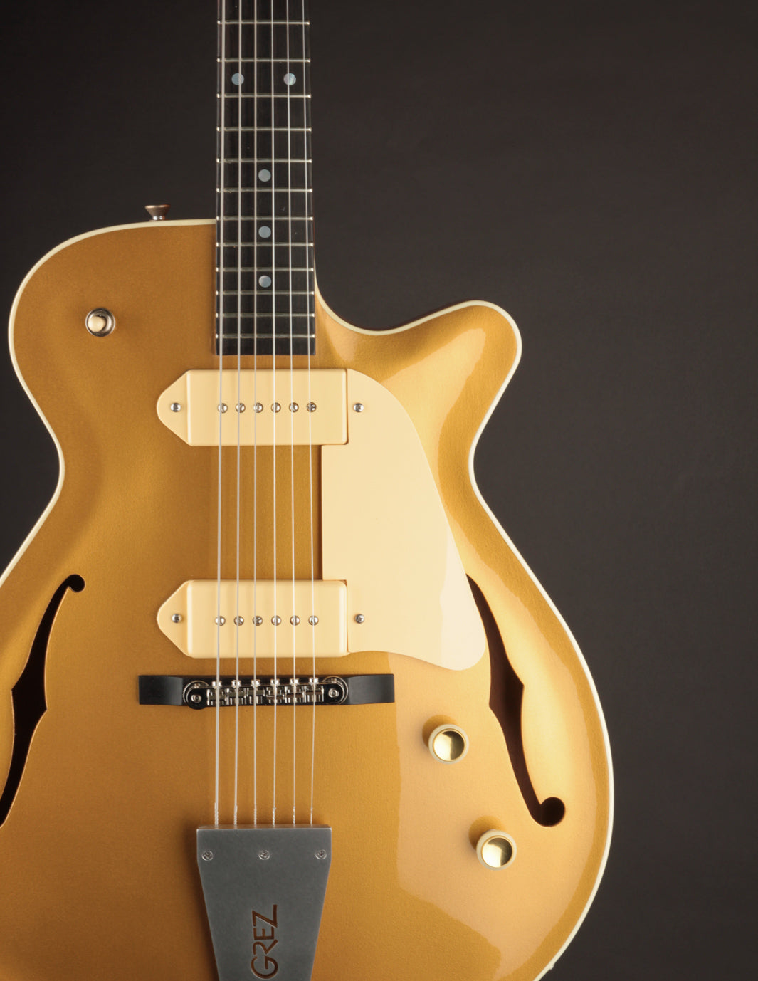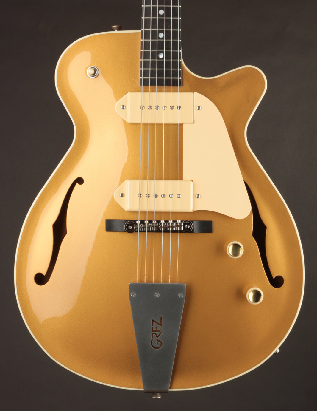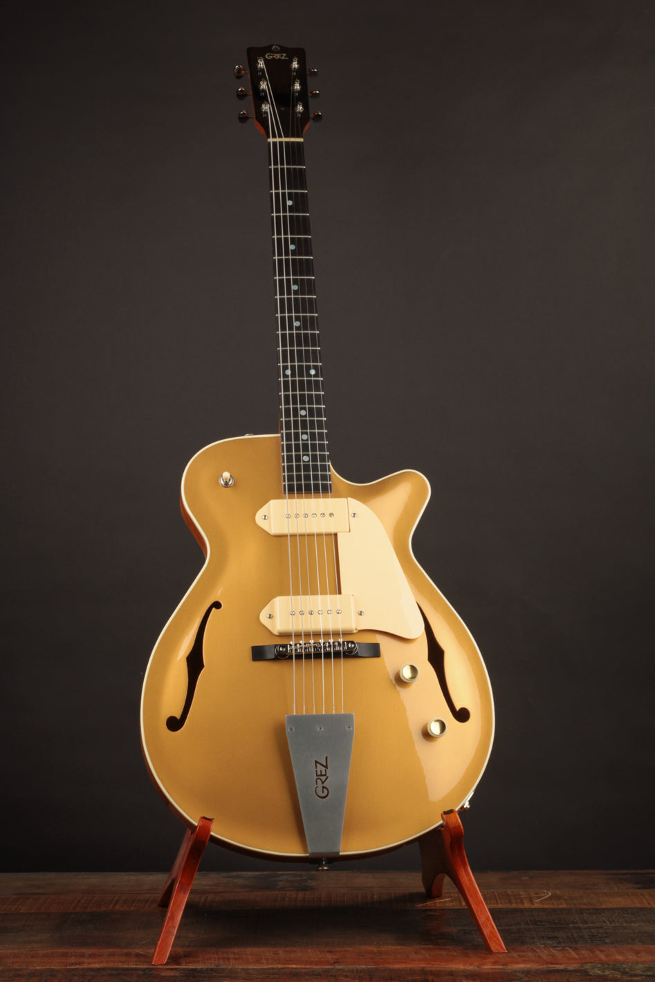 Built with a spruce top, Honduran mahogany body, ebony fingerboard, 25" scale, and a pair of lush-sounding Lollar P90s, the Grand Tour carries on Grez Guitars’ tradition of exceptional craftsmanship and musicality.