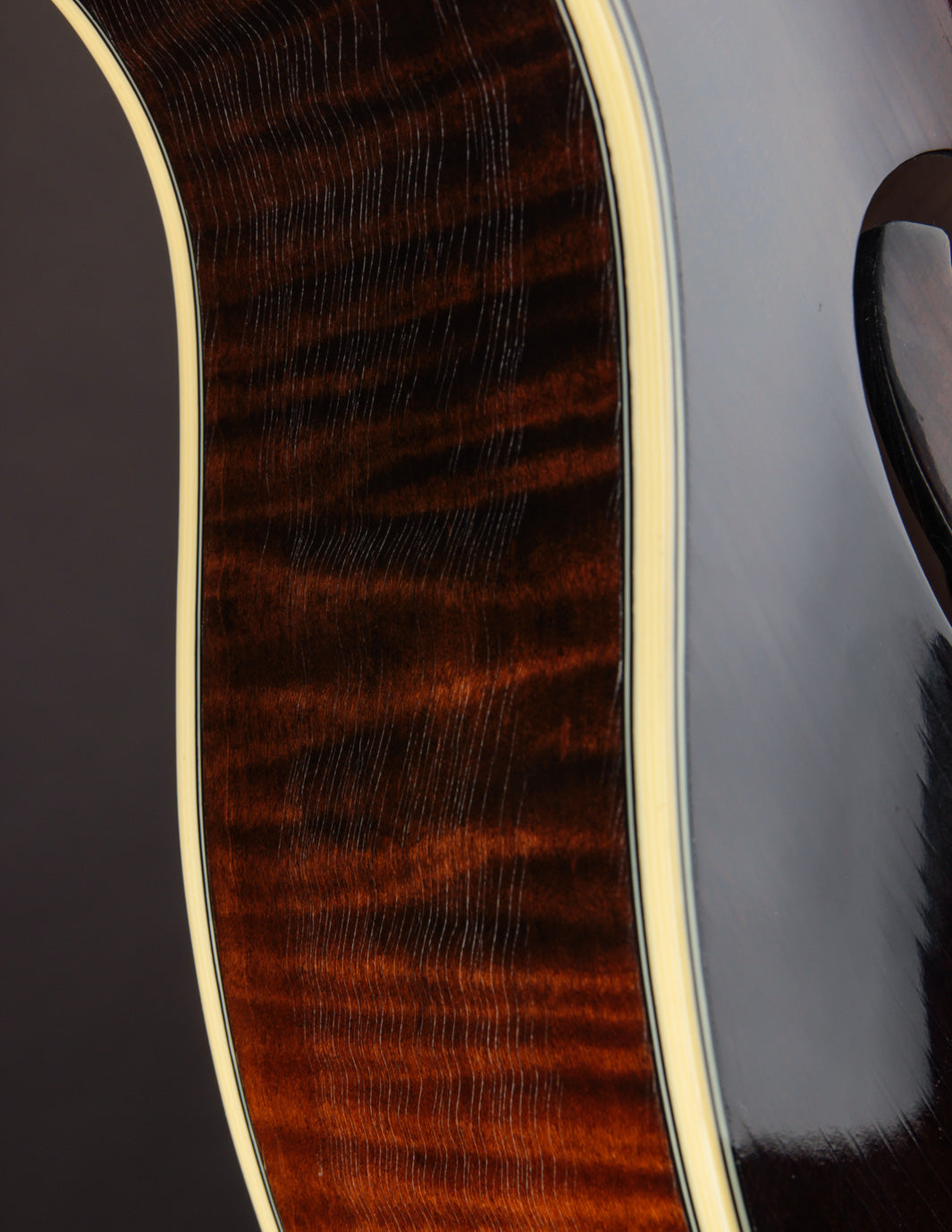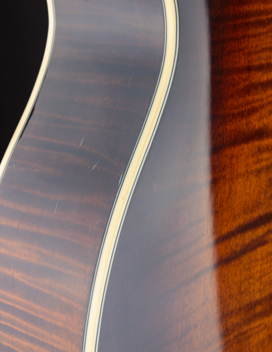 This recent build has been played, and has opened up nicely over the years. As such, it does display playwear throughout, including some finish marks below the pickguard and some finish crazing on the sides/lower bout, which is visible in the photos. Feel free to give us a call for an in hand description! Priced with original hardshell case.