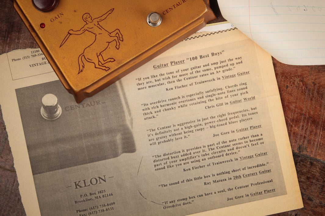 This 1997 Klon Centaur was purchased brand new, direct from Bill Finnegan, in August 1997. It remained with its original owner until now. It represents the second iteration of the fabled "Gold Horsie" Klon, which is really just a slight change in the Centaur graphic.