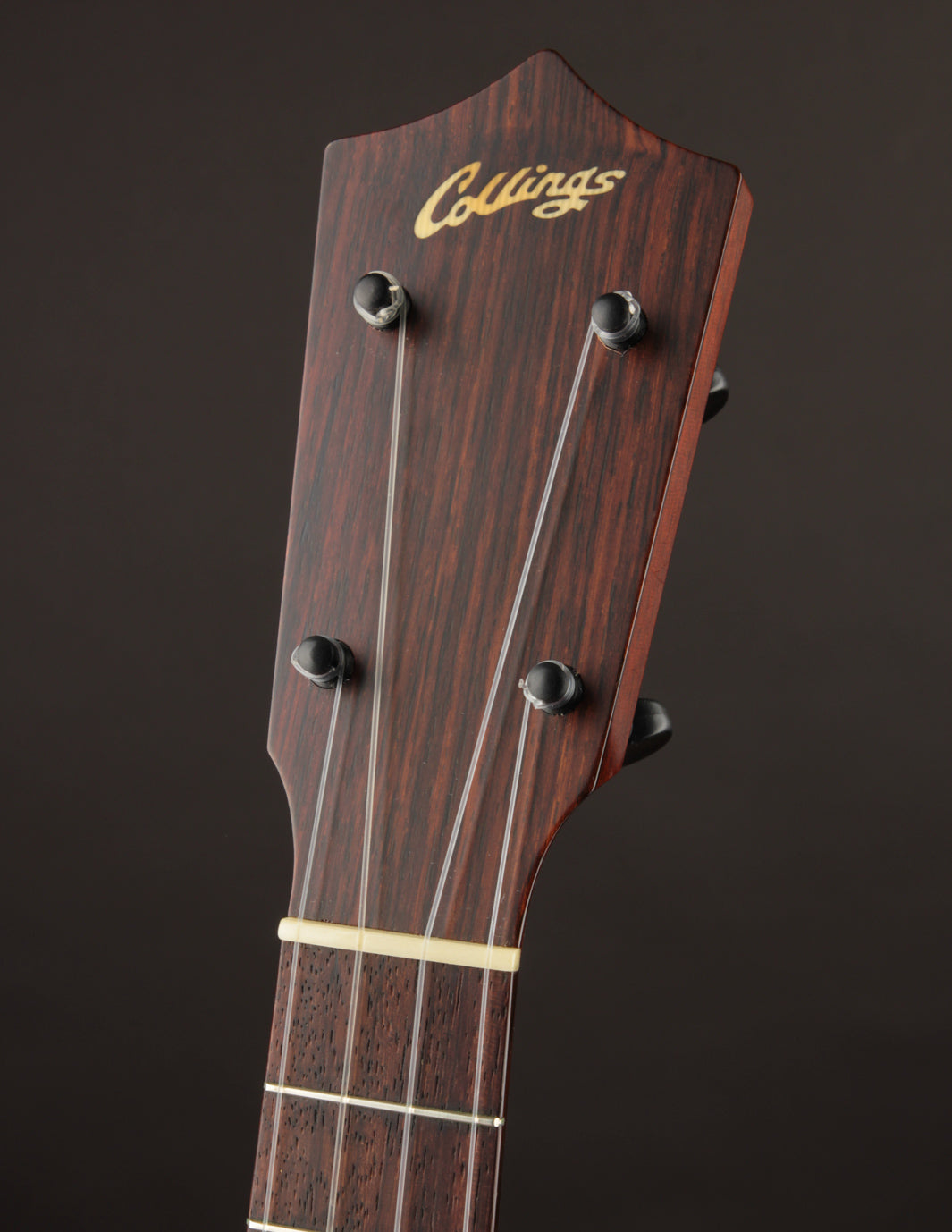 This uke remains in very good overall condition for its age. The body shows minor signs of handling, consistent with regular use; and the headstock shows one slightly dark area of finish (the result of a clip-on tuner resting on it). Priced with its original hardshell case ~ the slightly larger, more commercially available one Collings used before transitioning to a custom-made Ameritage ukulele case.