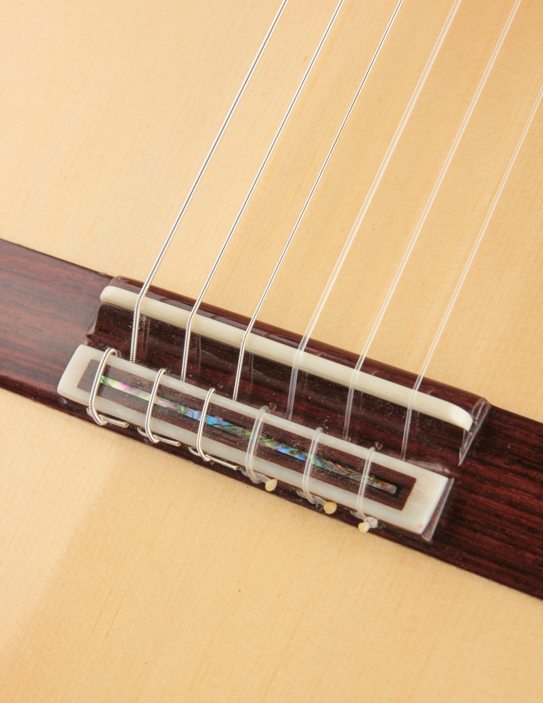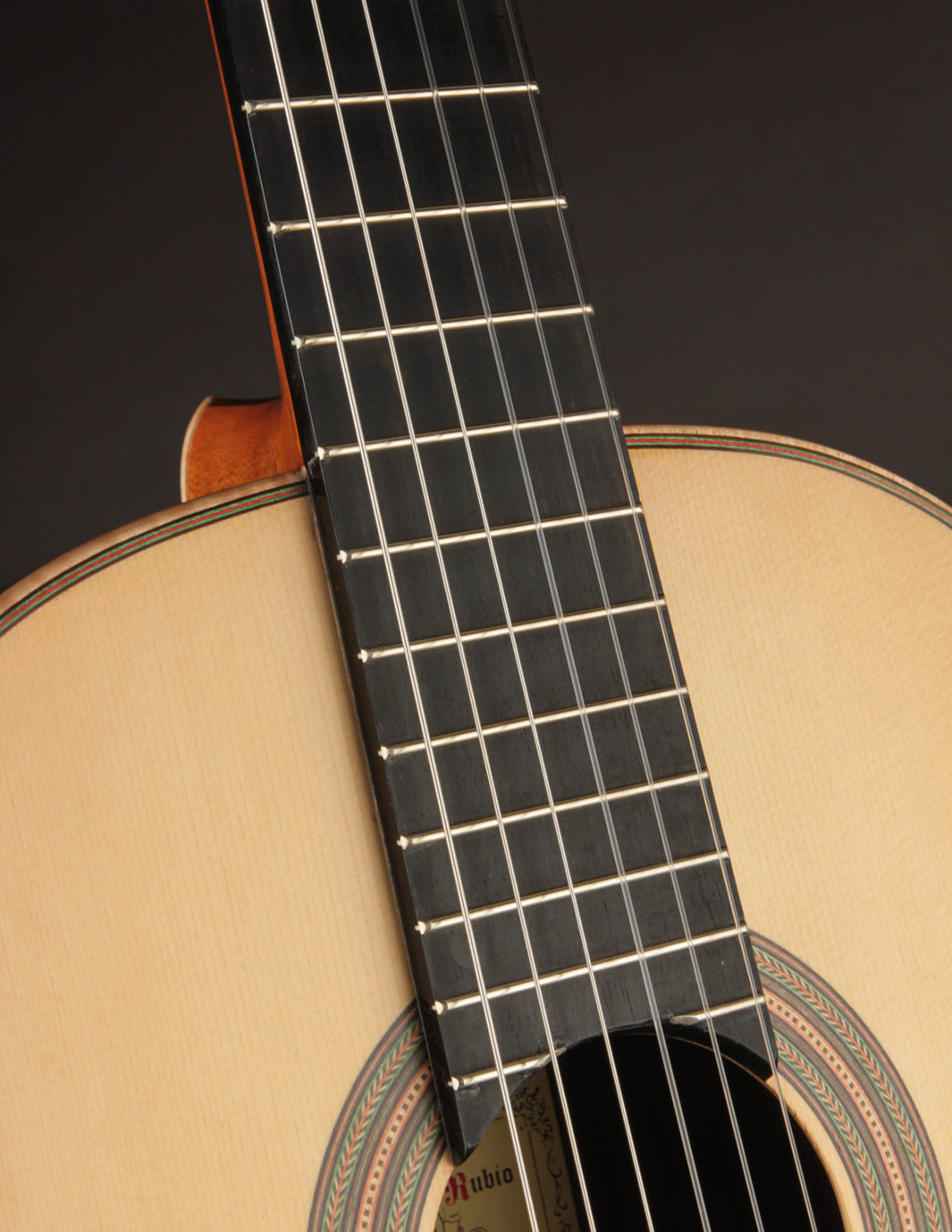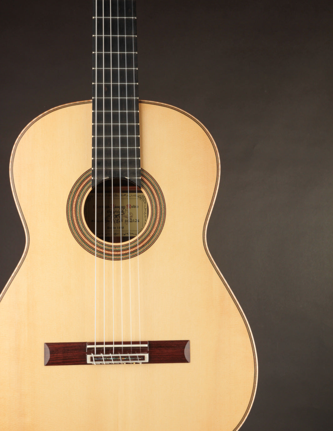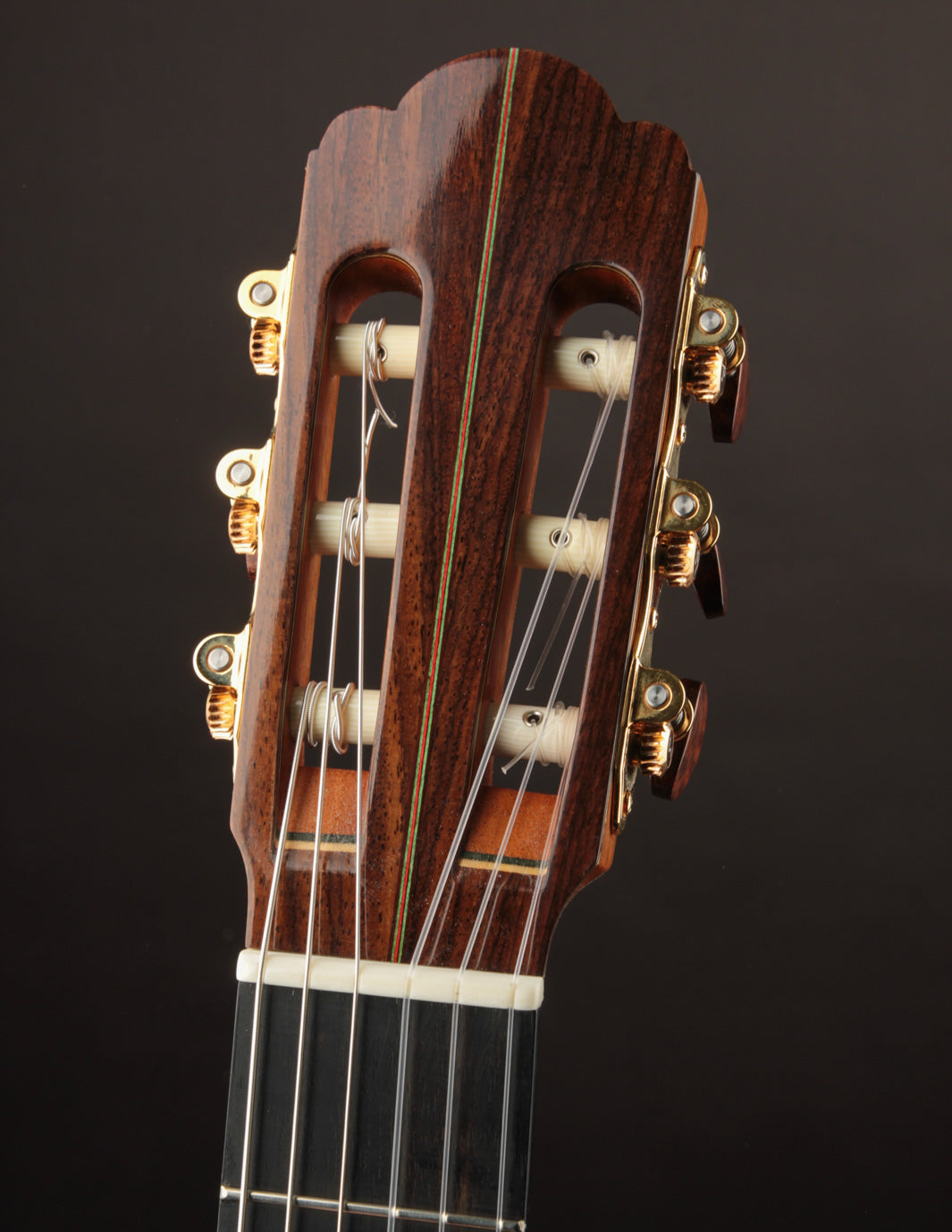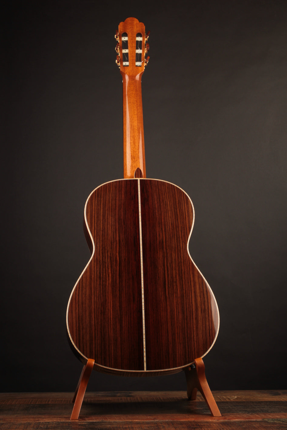 An inspired interpretation of the venerable Hermann Hauser instruments from the 1930s. French polished finish, stellar tonewoods—a deeply expressive, house favorite model from a modern master classical guitar luthier.