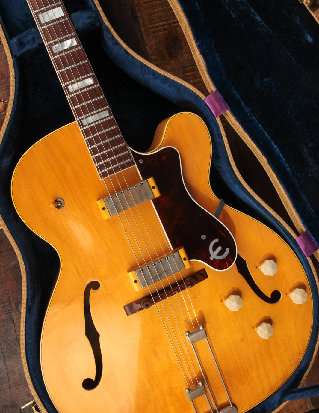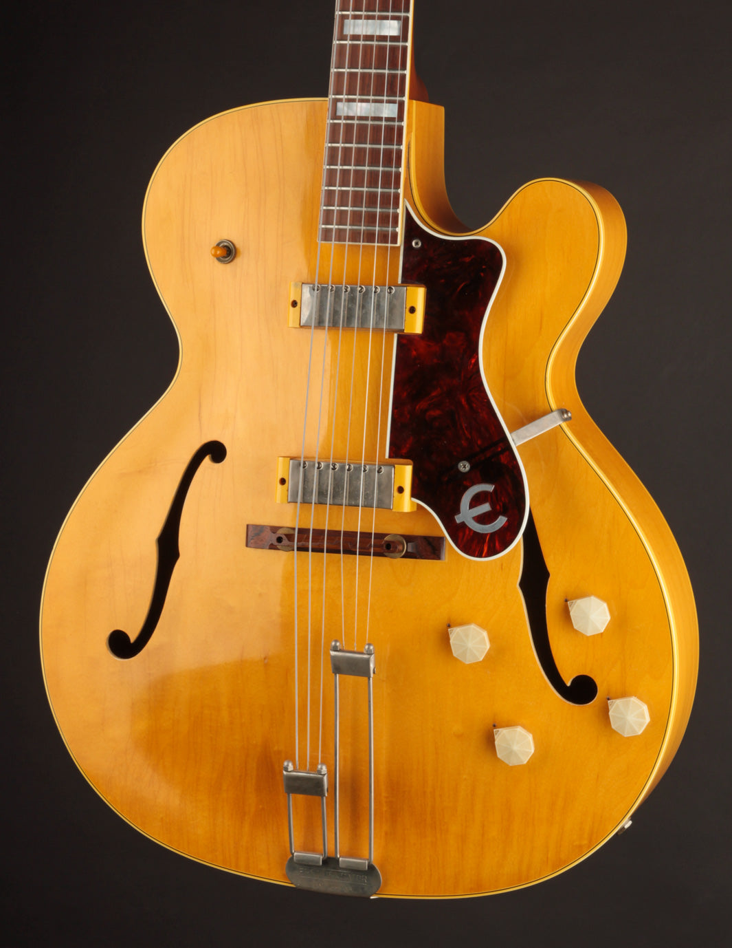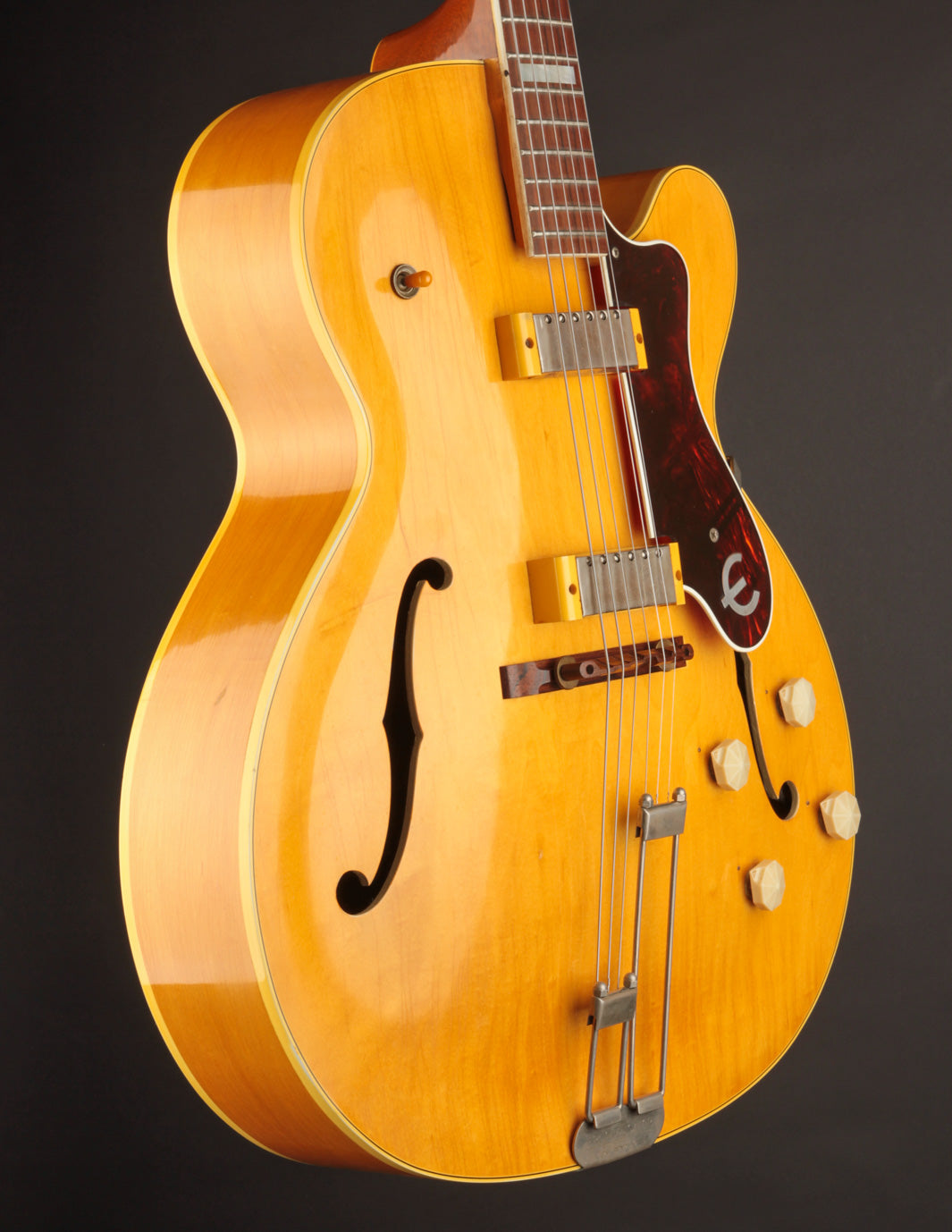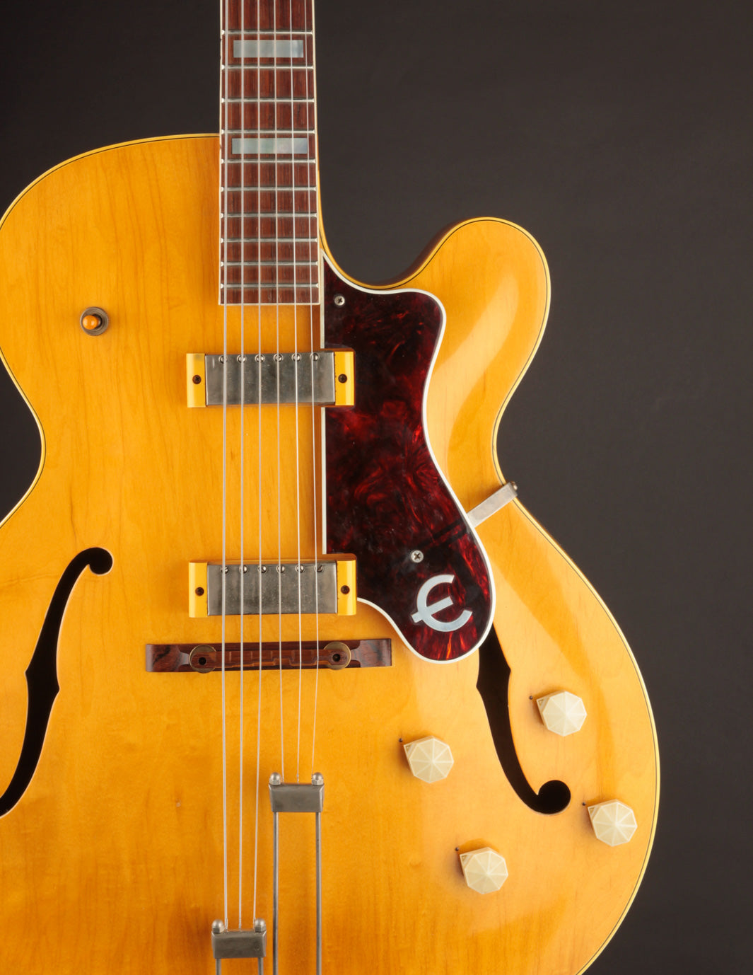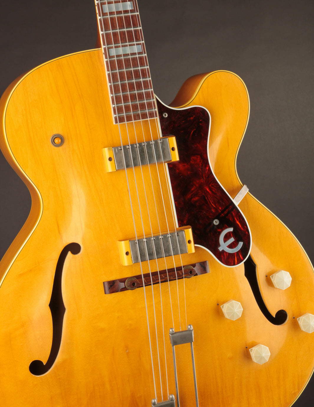 What sets the Natural apart from the standard Sunburst model? Gibson only shipped 19 of these Naturals in 1959 - they're unquestionably one of the rarest production model Epiphones to come out of Kalamazoo. The combination of this finish with other first-year "NY" features like the 'New York' pickups, carousel knobs, and a 3-piece neck were changed in 1960. You get the NY Epiphone look with Gibson's build quality behind it - pretty amazing!