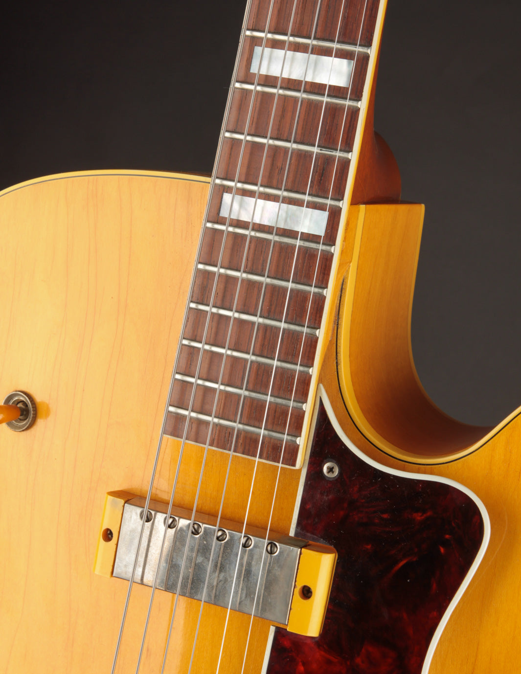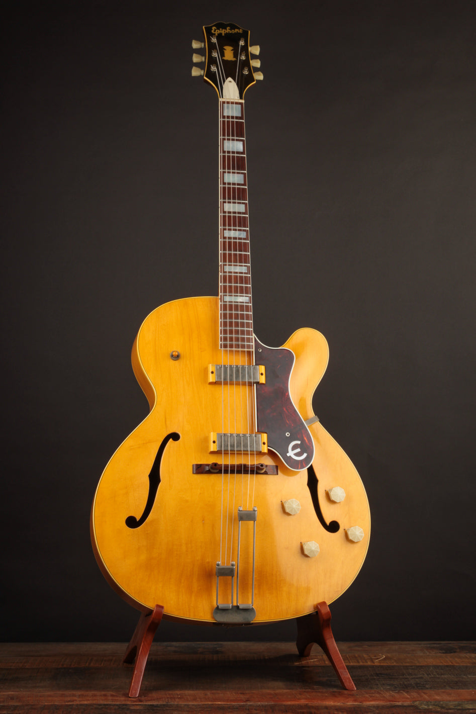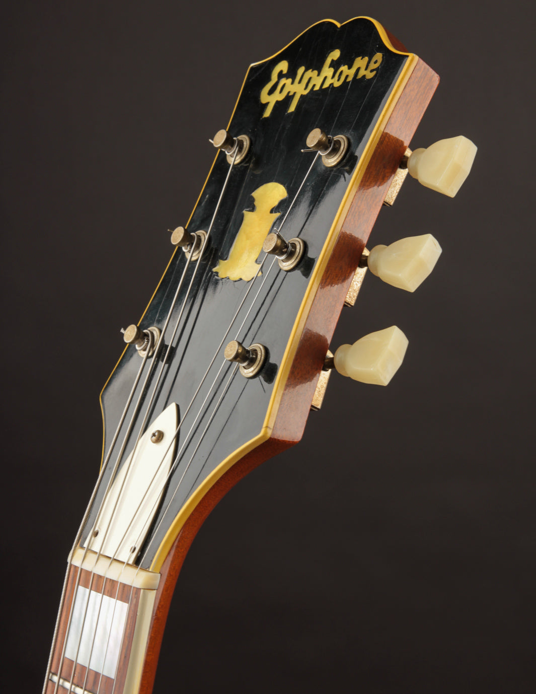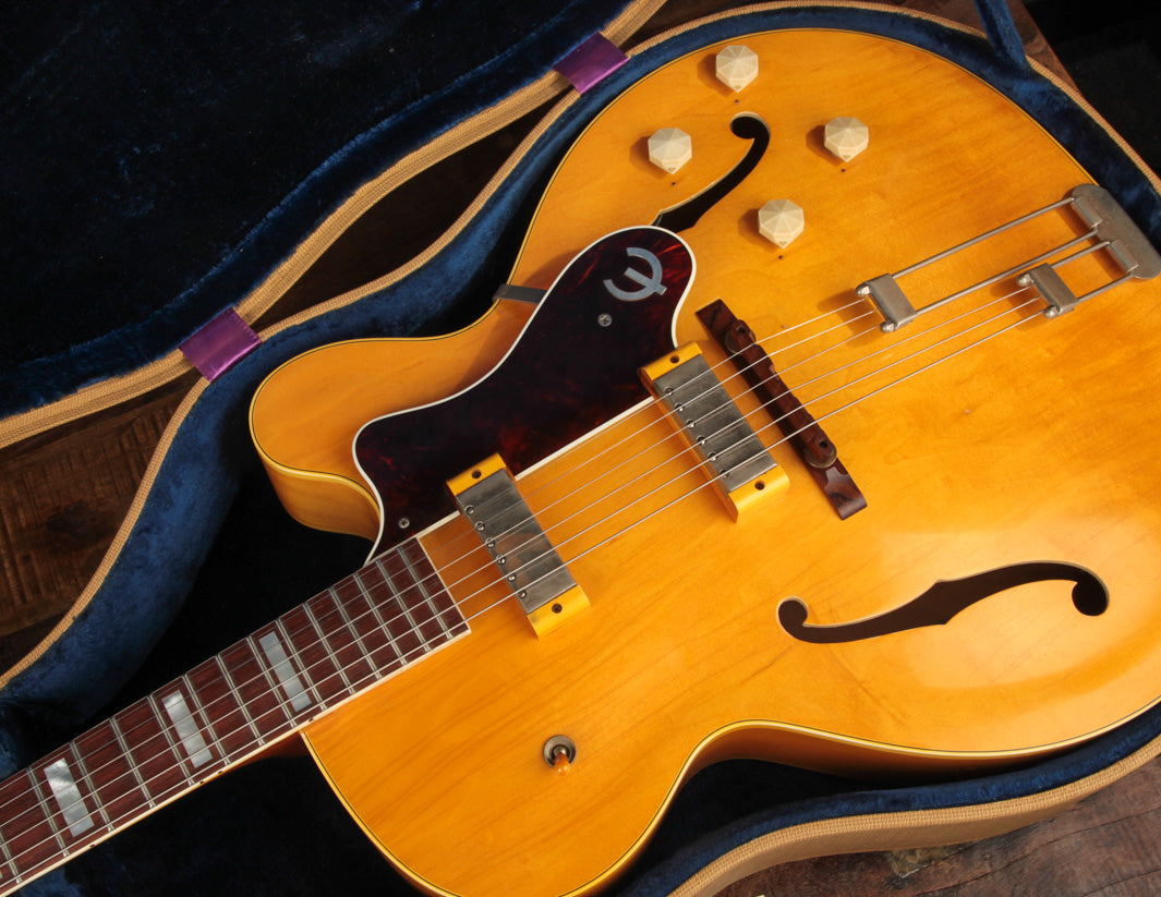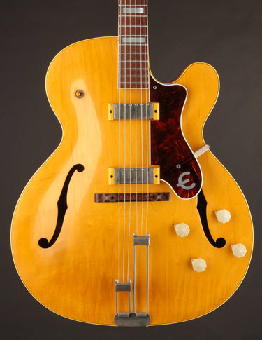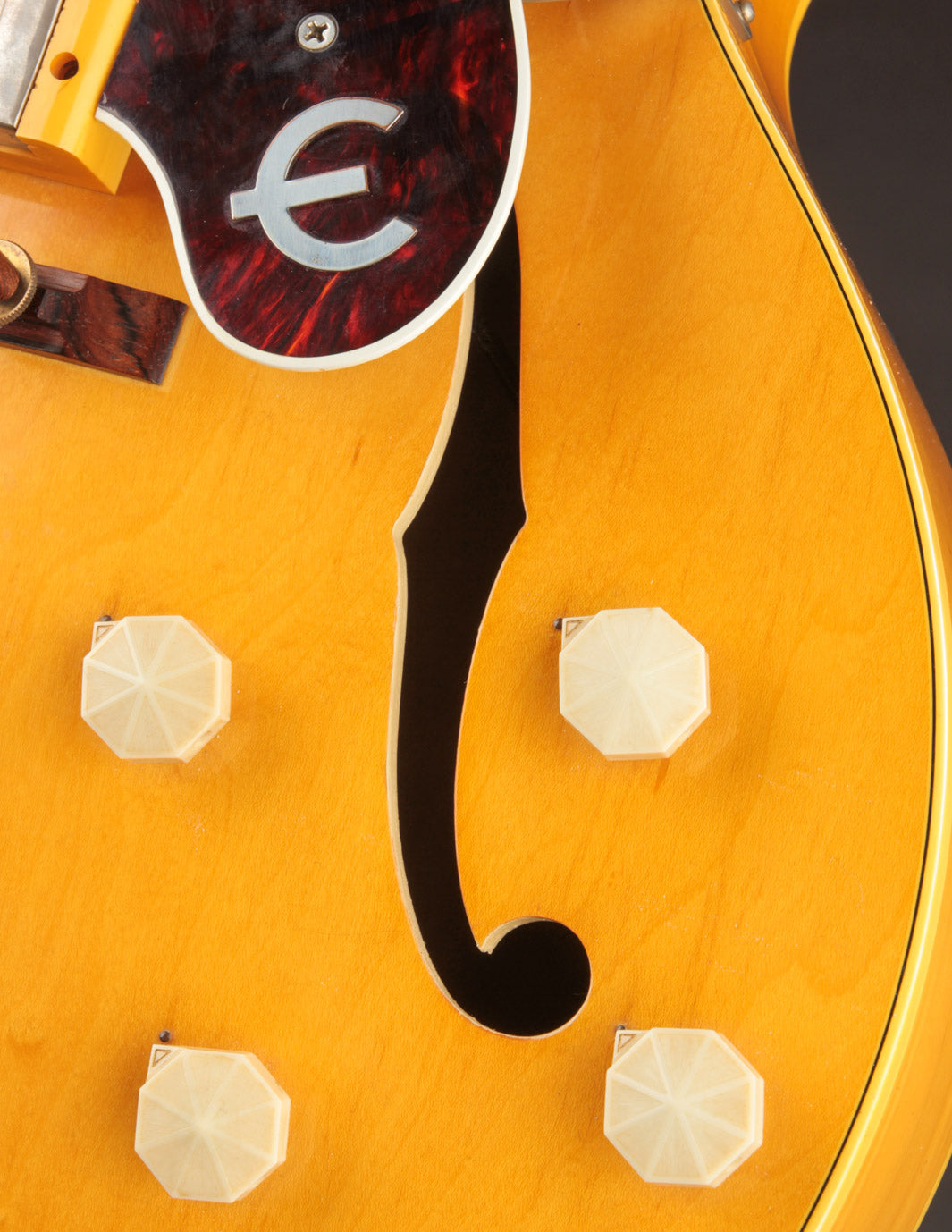 What sets the Natural apart from the standard Sunburst model? Gibson only shipped 19 of these Naturals in 1959 - they're unquestionably one of the rarest production model Epiphones to come out of Kalamazoo. The combination of this finish with other first-year "NY" features like the 'New York' pickups, carousel knobs, and a 3-piece neck were changed in 1960. You get the NY Epiphone look with Gibson's build quality behind it - pretty amazing!