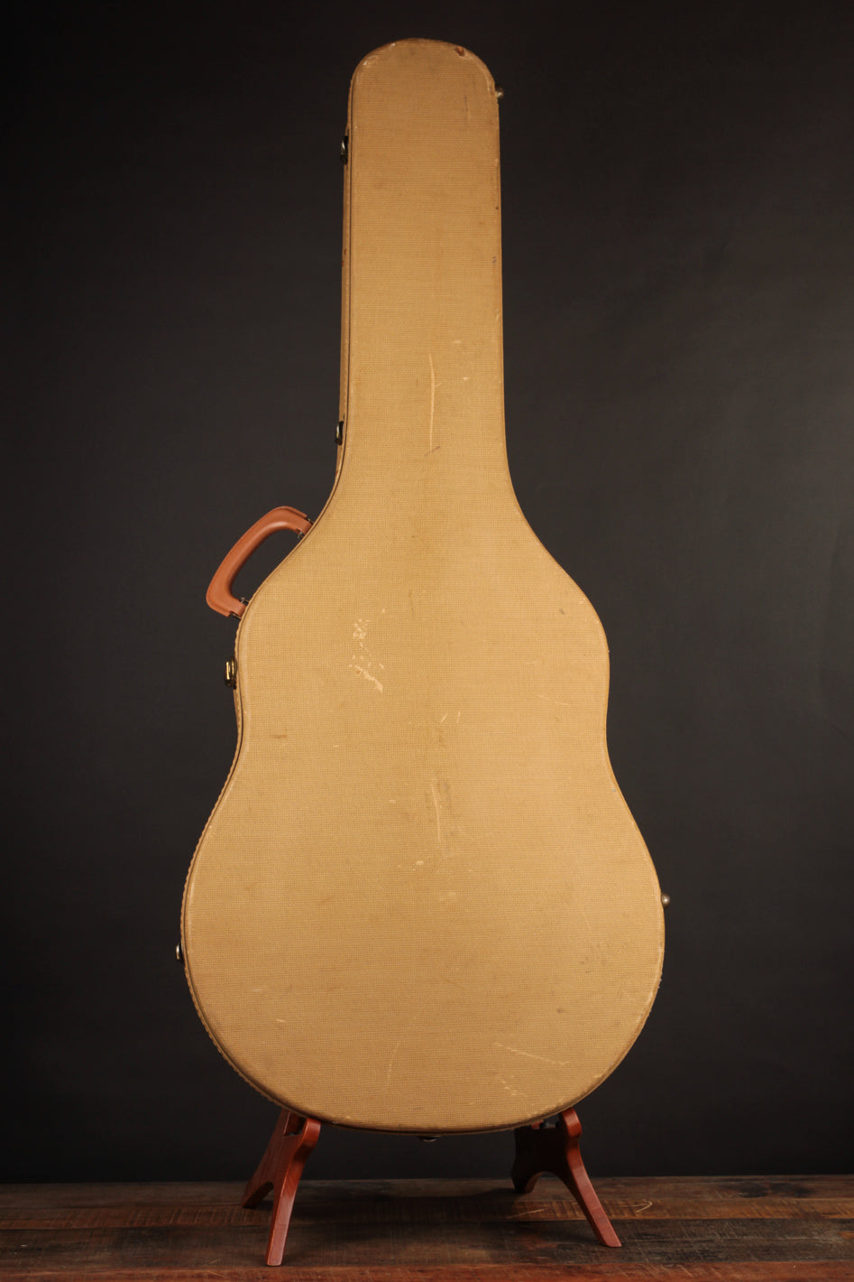 The guitar was recently acquired from the family of the original owner, who was said to have purchased it in Albuqurque, New Mexico while stationed there in the late 50s. It was purchased along with the fabulous and equally rare Geib hardshell case, which feature a unique beige cloth-like covering and indigo blue plush interior. The guitar showed almost no play wear, save for a replaced nut (a mystery to all). The guitar survived with minimal lacquer checking and showed essentially no fretwear. Very close to a time capsule piece by our estimations!
