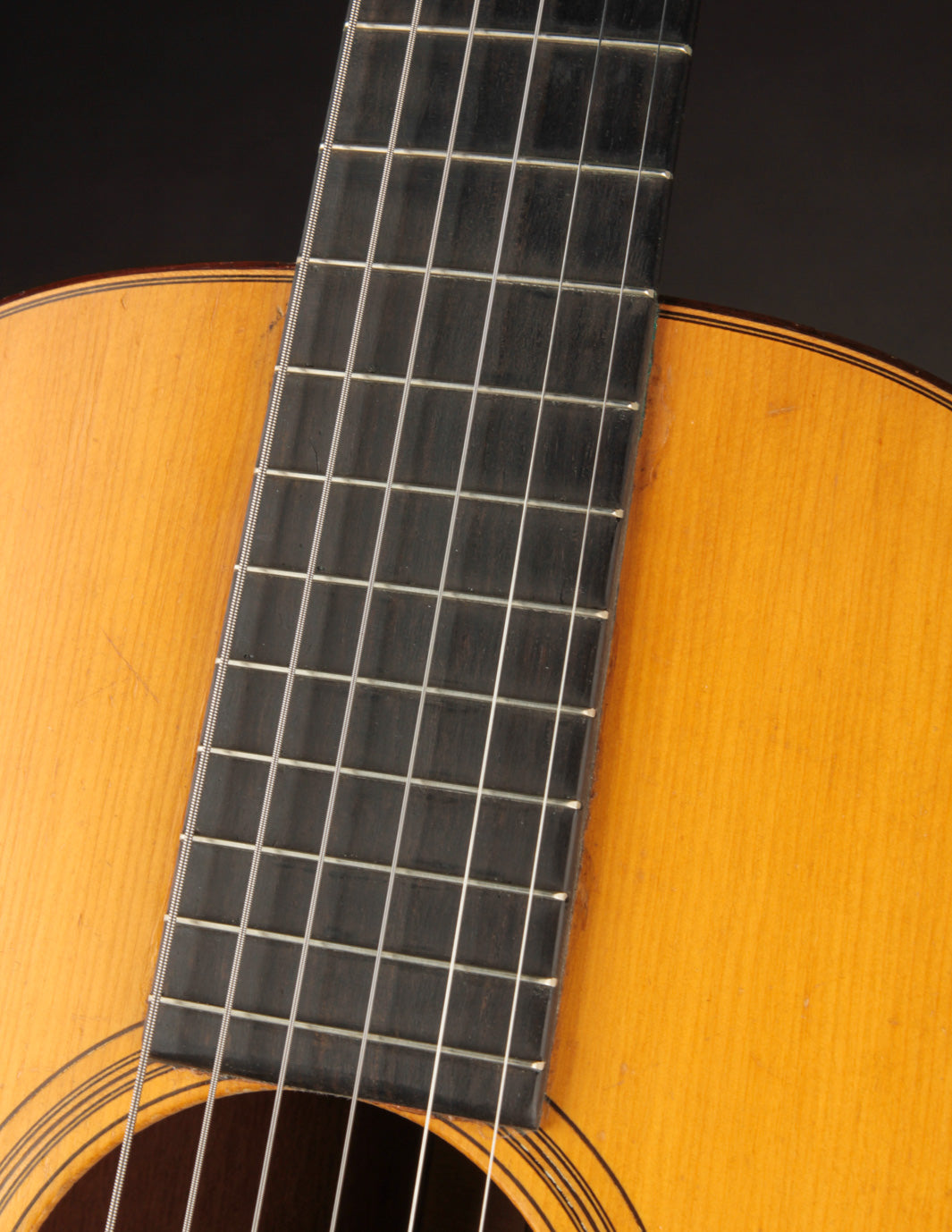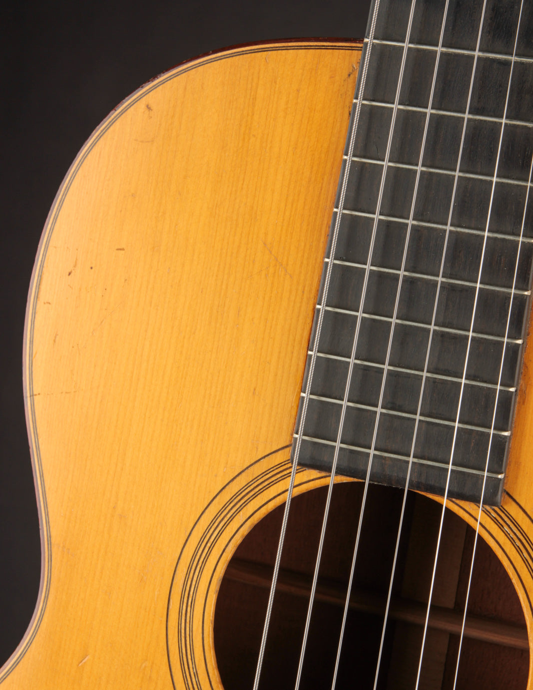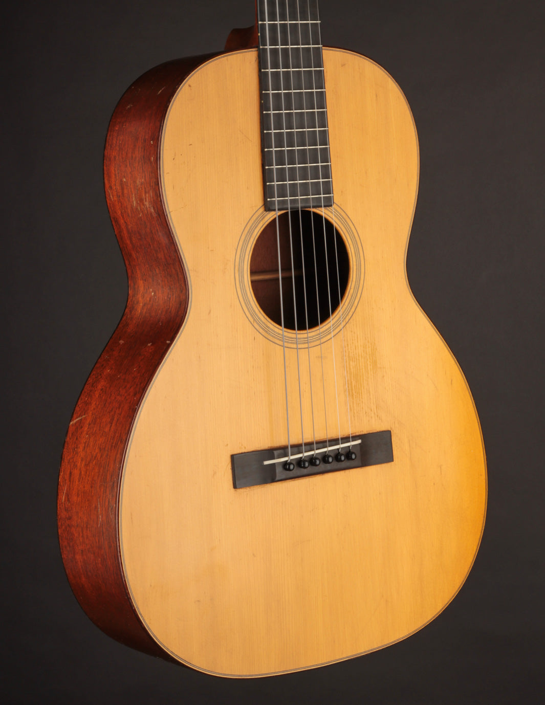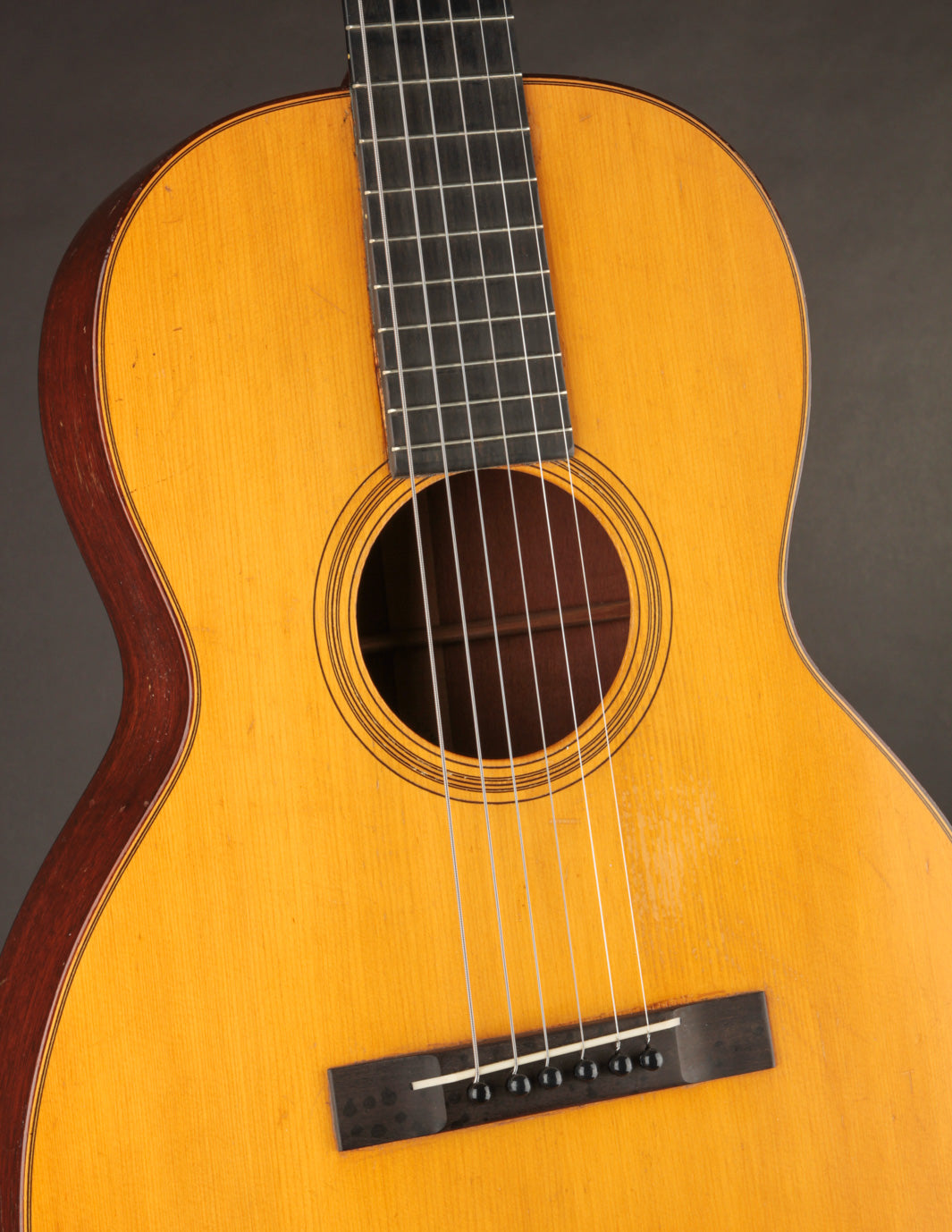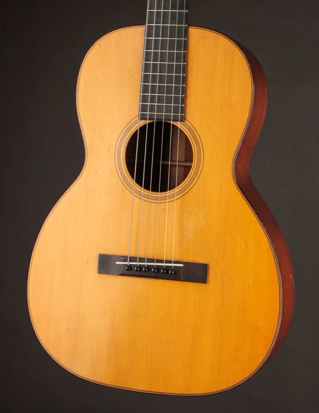 This 1928 Martin 00-18 has been in TME's orbit for many years: it was owned by a regular customer, and we always remembered it as one of the lightest pre-war Martin flattops we've ever encountered. (It's just a hair under three pounds!) It's a beautifully preserved guitar, made during a short stretch of time when Martin was using a rectangular bridge before transitioning the the familiar "belly" style bridge in late 1929. As you might imagine, based on its weight, it's an amazing-sounding guitar -- whether played fingerstyle or with a light-to-medium gauge flatpick a la Norman Blake. Its light bracing and thin-but-stiff Red Spruce top produce endlessly fat, warm tones (and it's got a shocking amount of bass response for such a small guitar). It's a lifetime guitar for anyone who's been on the lookout for a 12-fret vintage Martin.