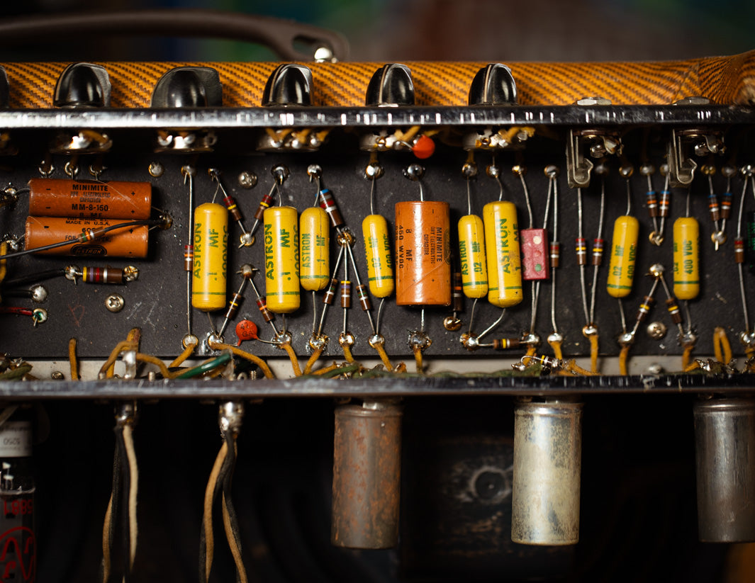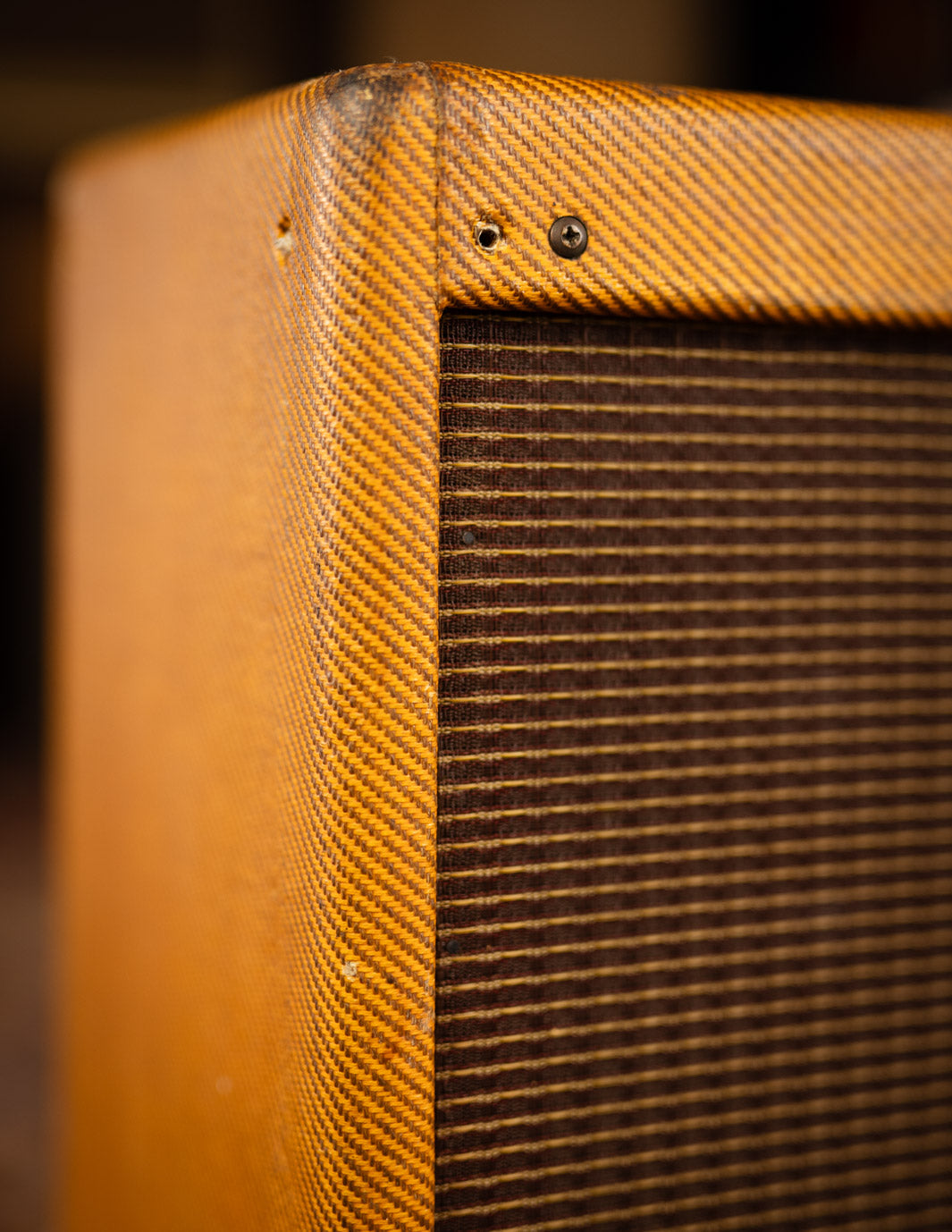 This a late '60 build with a December 1960 tube chart stamp and original transformers throughout. It has clearly seen some action over there years as evidenced by the natural wear of the original tweed covering and reconed vintage Jensen P10Q speakers. Still, it retains that unmistakable hifi voice and power, with incredible harmonically rich tube breakup and a touch sensitivity that great Tweeds like this are known for.