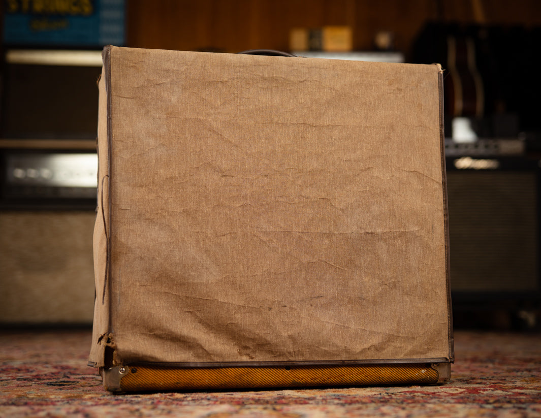 The cabinet and back panels are original and have their original tweed covering. The amp also includes its original Victoria slipcover in good/fair condition.
