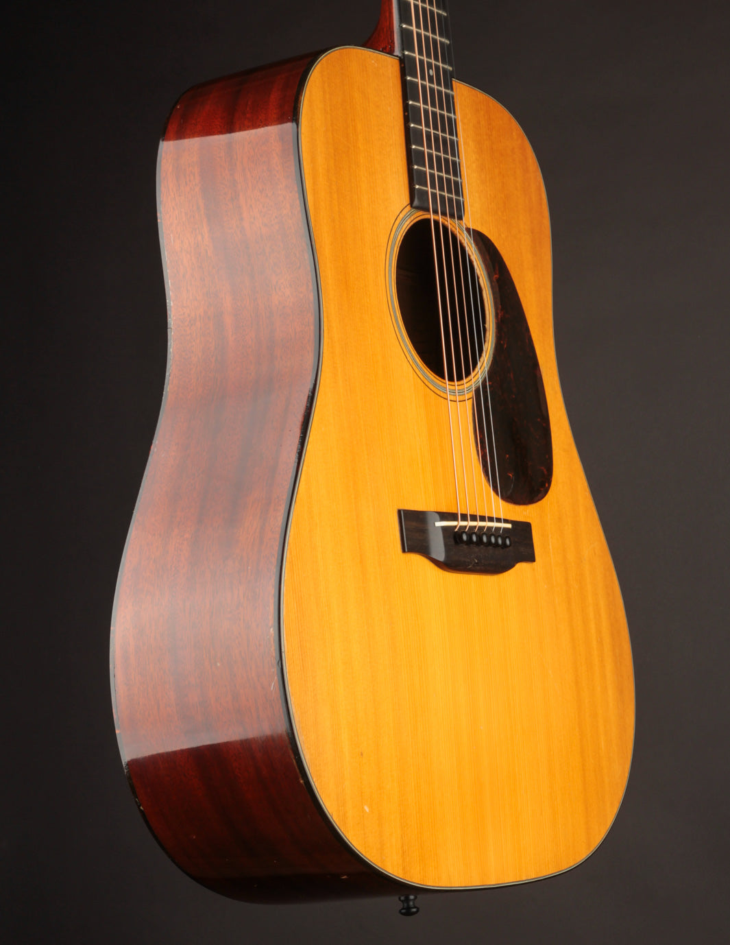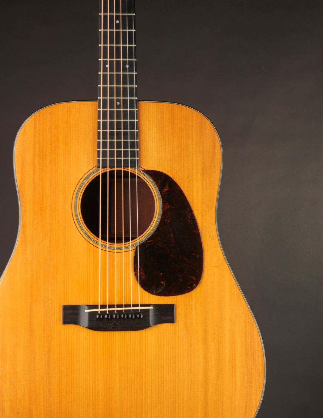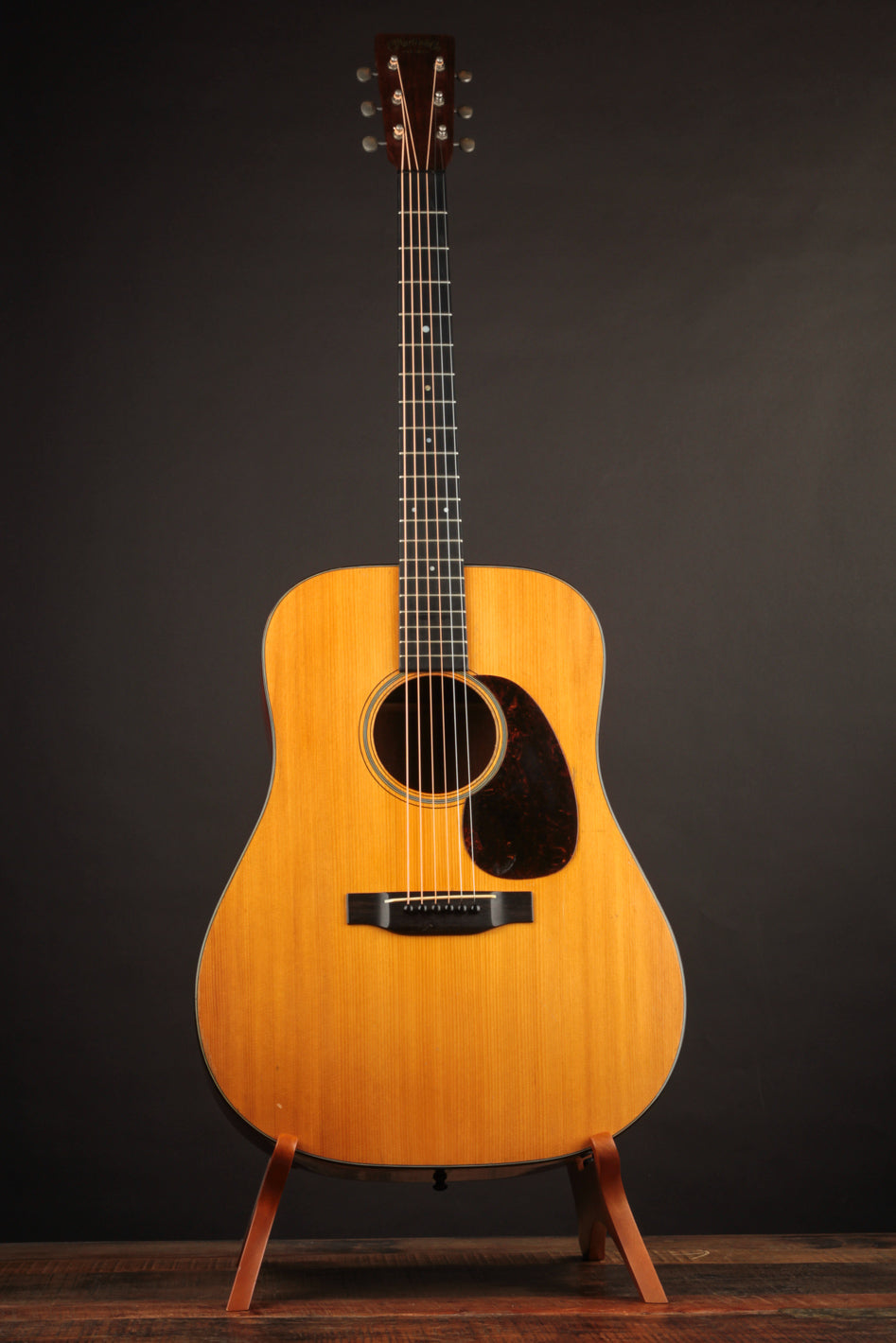 Under a pick, this 1943 Martin D-18 produces immediate, pleasing, tactile responsiveness, and throws air forward with impressive force. As a fingerstyle guitar, it's complex-sounding and present all at once, showing gorgeous shimmer.