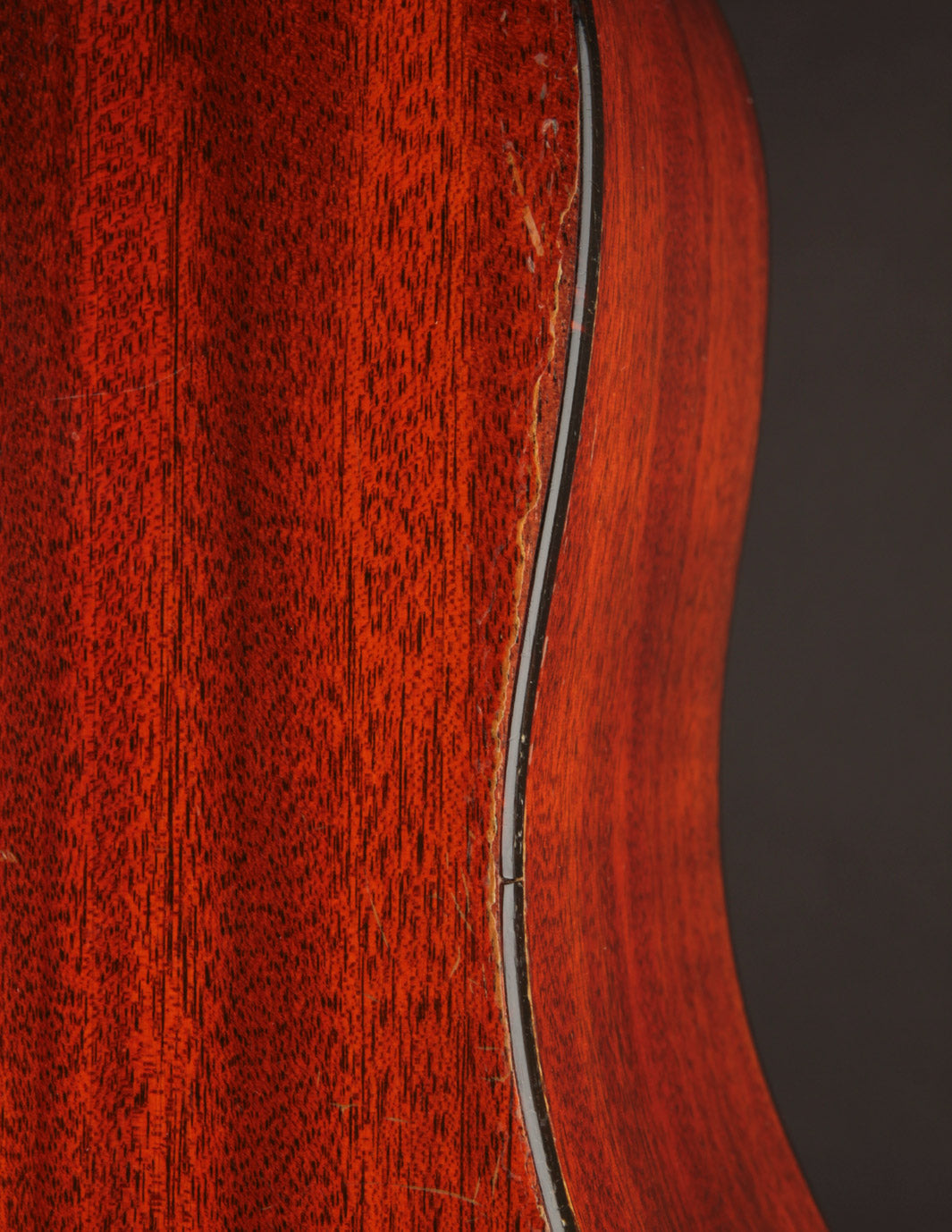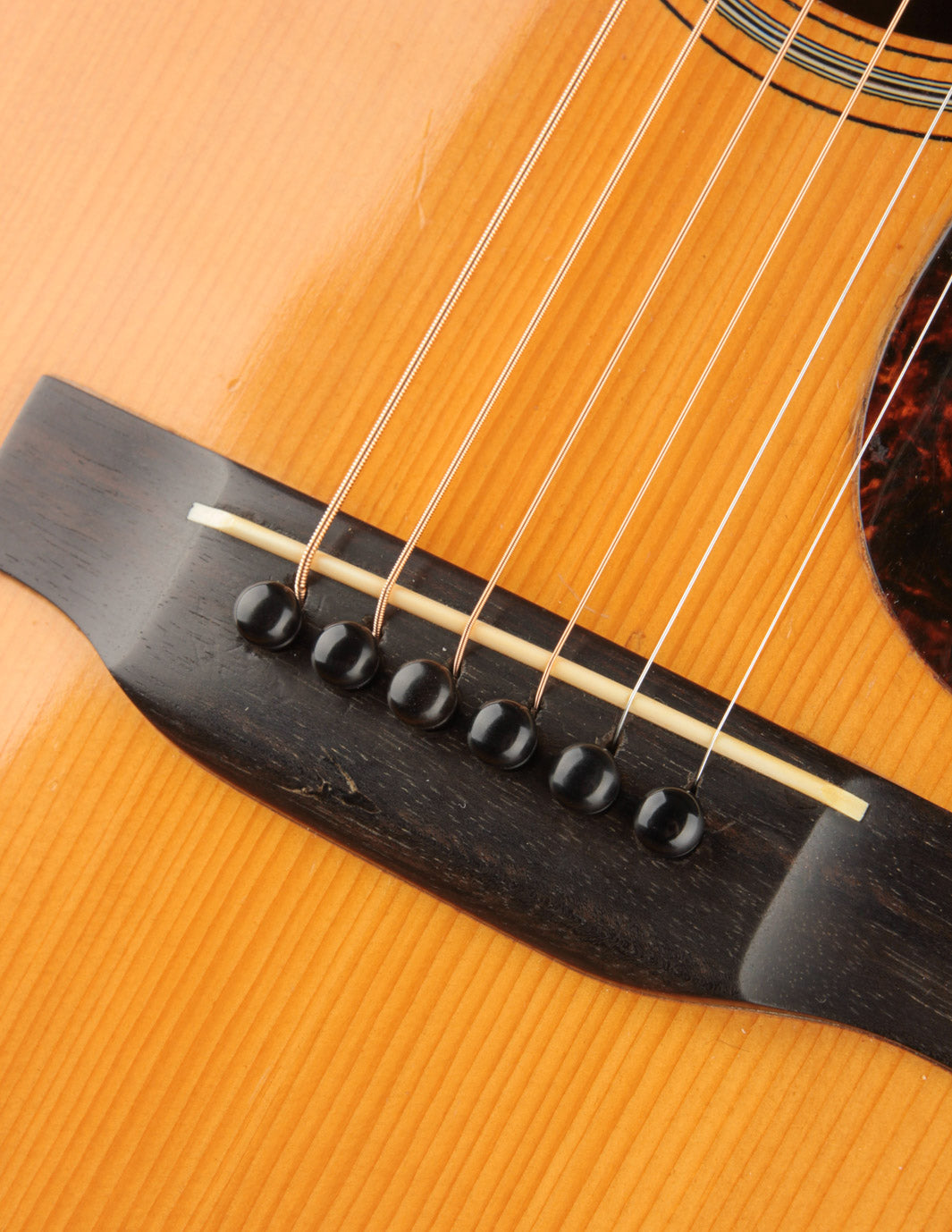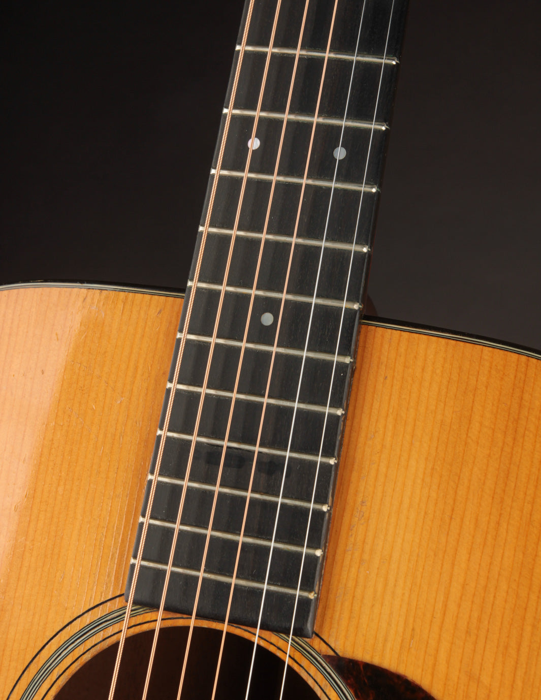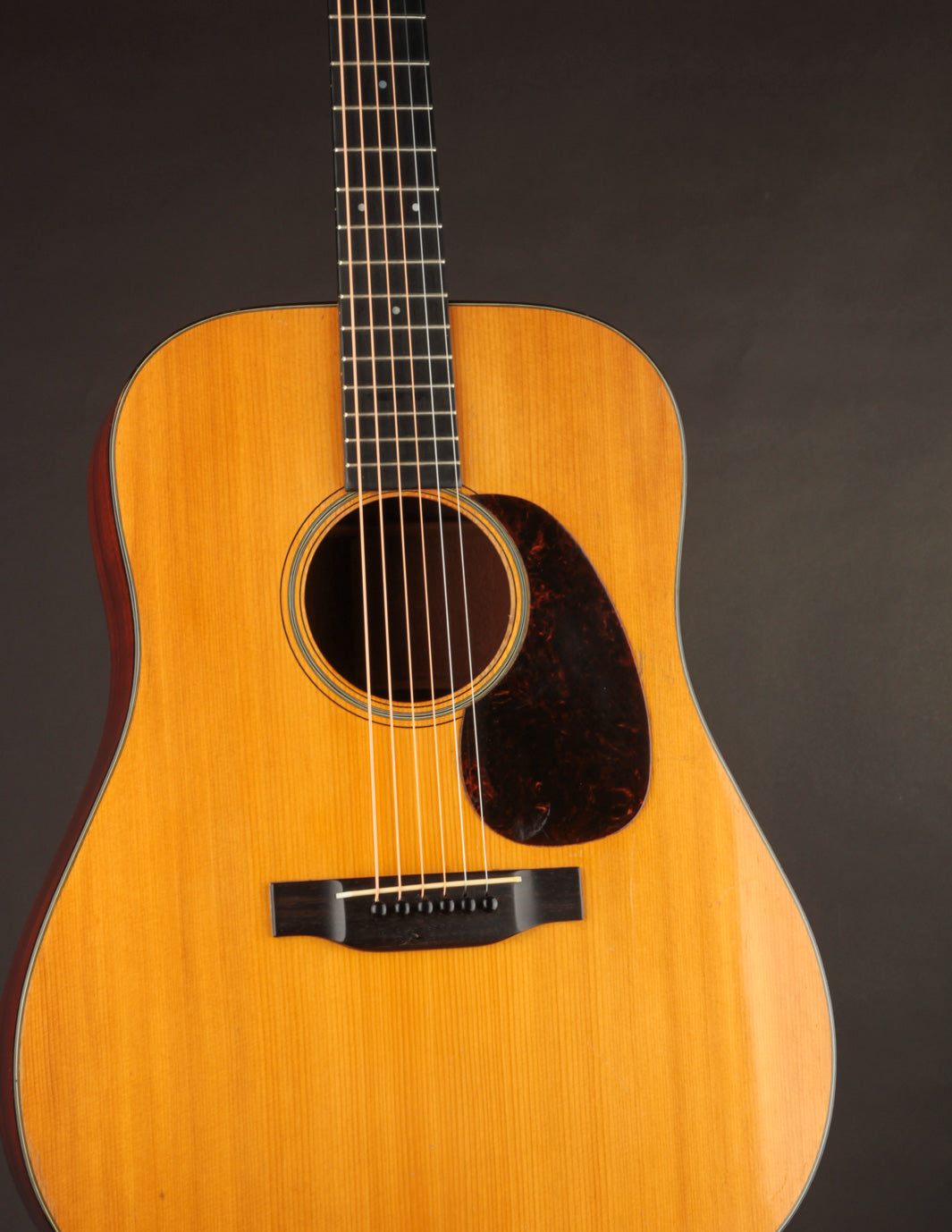 Under a pick, this 1943 Martin D-18 produces immediate, pleasing, tactile responsiveness, and throws air forward with impressive force. As a fingerstyle guitar, it's complex-sounding and present all at once, showing gorgeous shimmer.