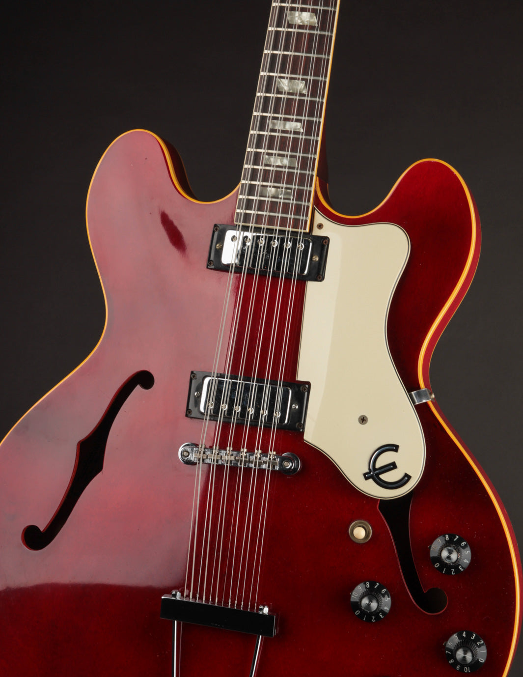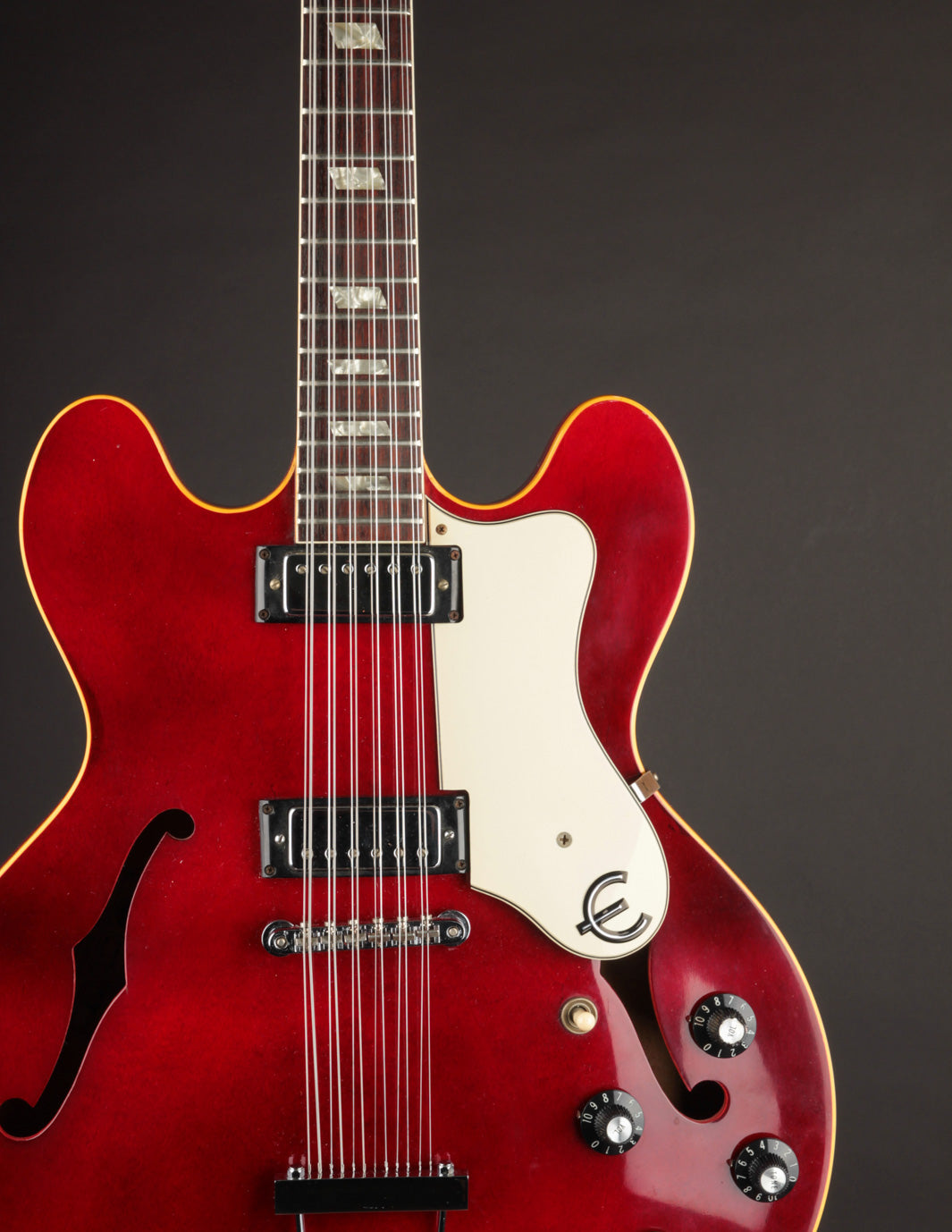 With Rickenbackers cornering the electric 12-string market for decades, it's no surprise that even the likes of Gibson couldn't match their impact. Nonetheless, it didn't stop them from working to cut out their piece of the pie, and it's clear in this cherry-colored semi-hollow that they had something to bring to the table.