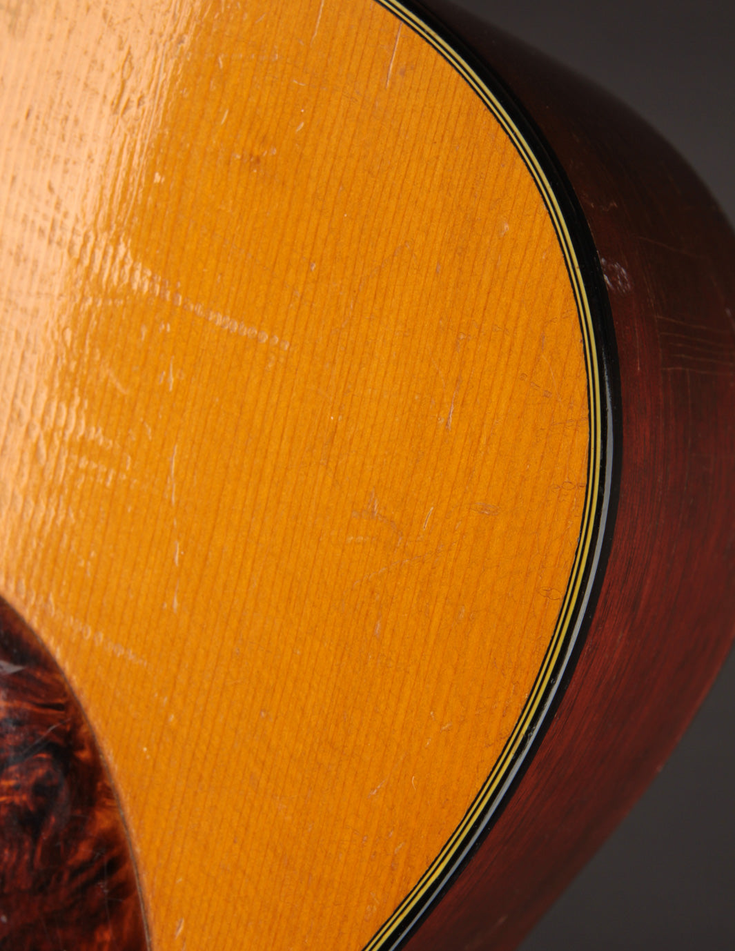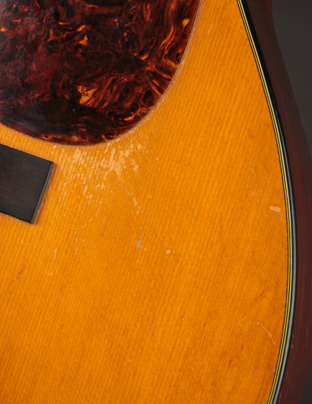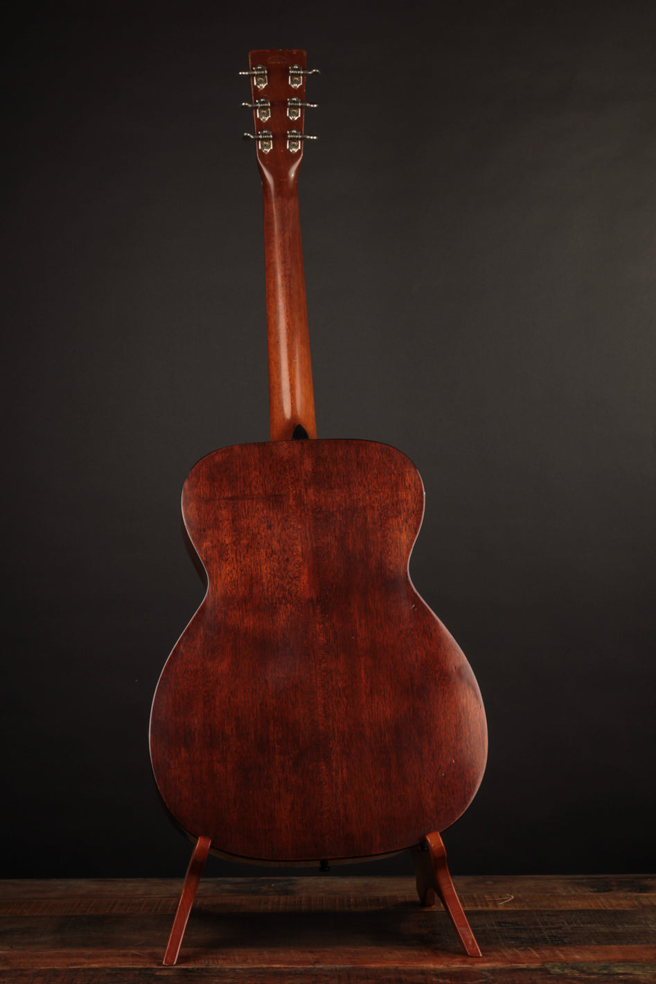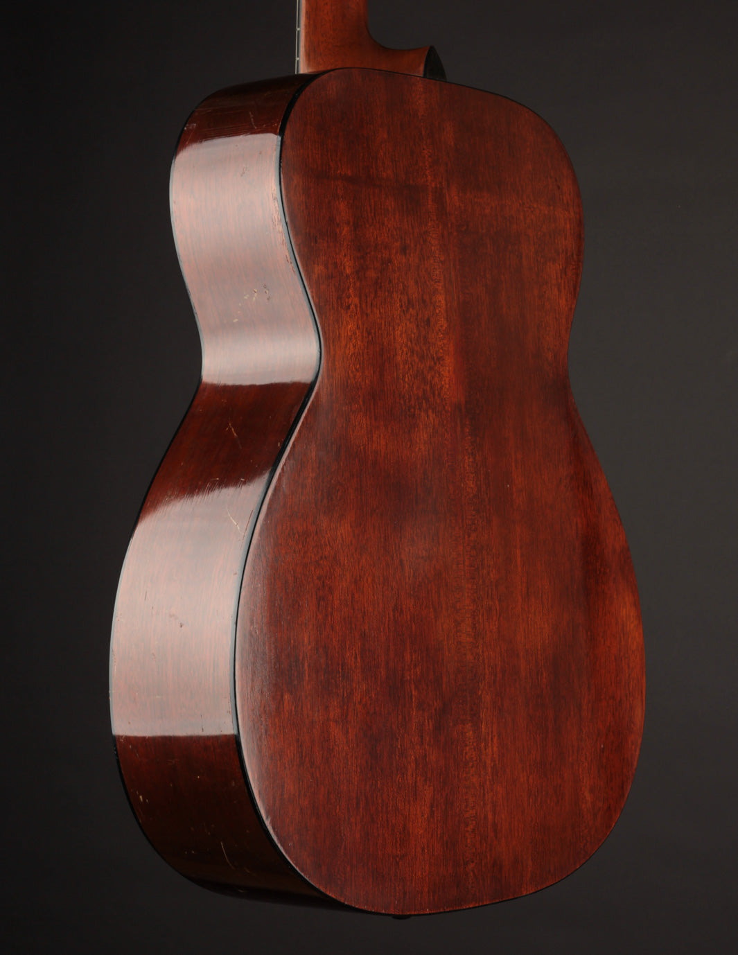 After you hear about ten seconds of the accompanying demo, we think you'll know why we love this guitar. The power, dryness, and clarity of a 1930's style-18 Martin is simply irresistible. This OM-18, serial 54584, is an excellent-sounding example of the model; which plays as easily as one of these can thanks to a refret and setup by TJ Thompson. The guitar has had a neck reset in the past, and its original bridge has been replaced. The back has been oversprayed as well, with recent antiquing of the overspray by TJ. The bridge plate and all internal components are original and healthy; and the guitar has no cracks. The takeaway here is sound & playability. We feel that the guitar's overall condition and setup make it attractive to collectors and players alike; but if you're in the camp mostly concerned with the coveted golden-era tone, this guitar gets our highest marks. Priced with Calton hardshell case. Expedited shipping is required.