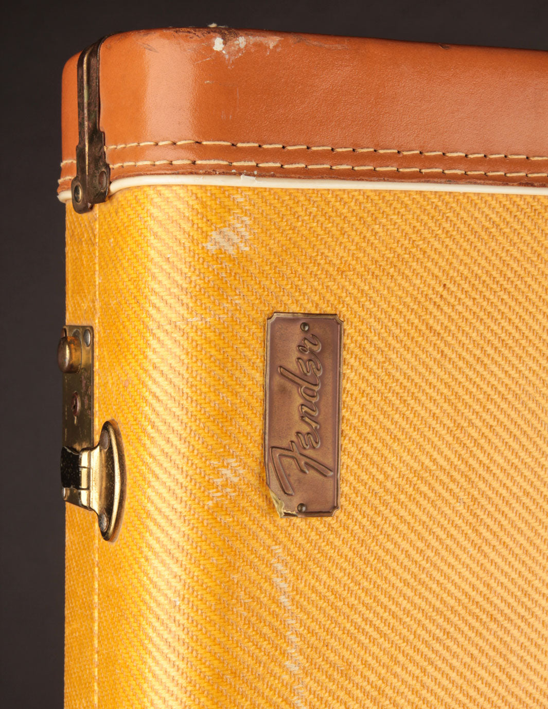 The original tweed case matches the guitar's condition to a tee, and features the incredibly rare brass case badge that seldom survives. The original ash tray bridge cover accompanies the guitar as well.