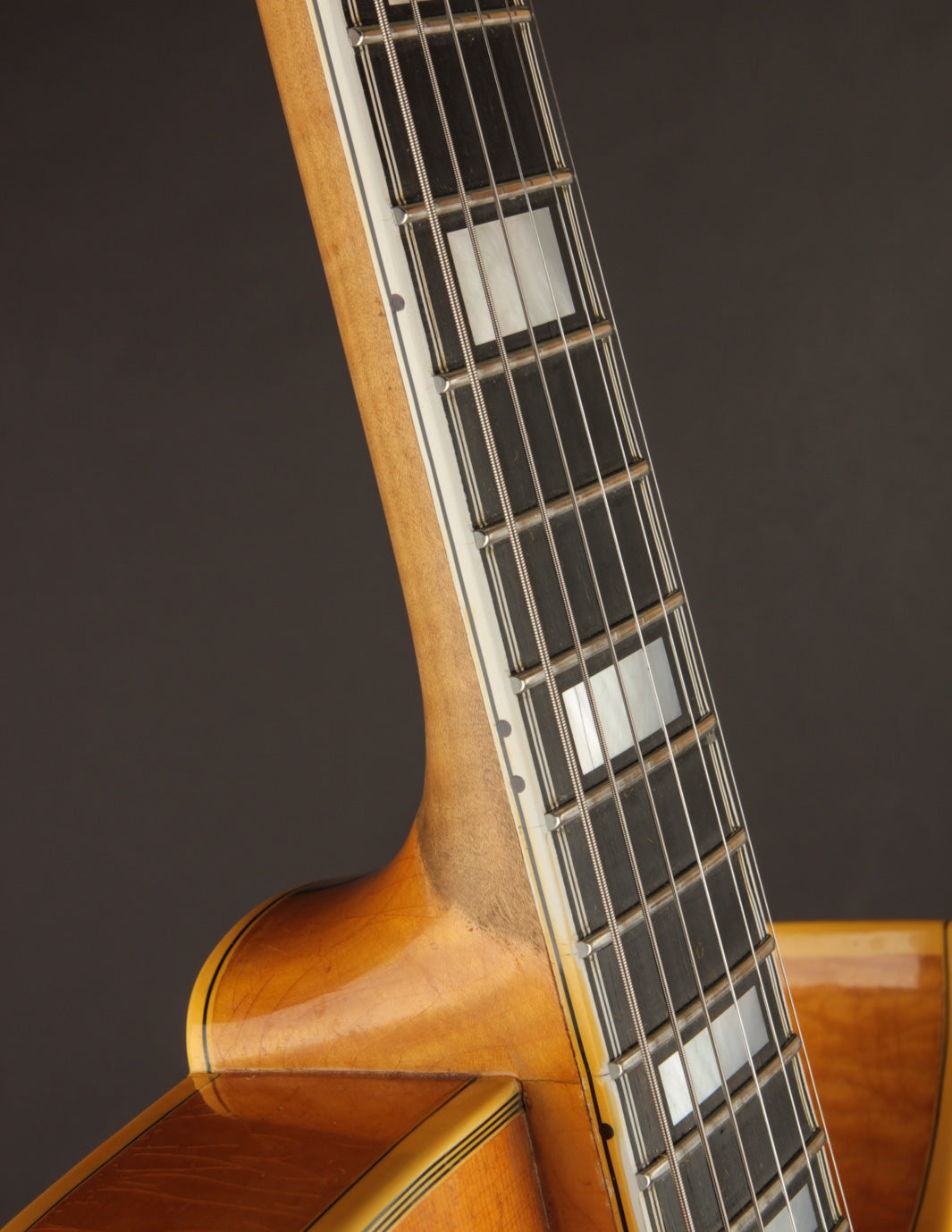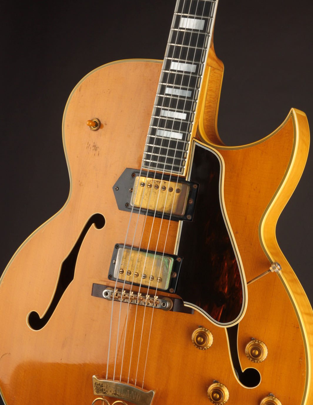 This Byrdland featured the Florentine cutaway, a more dramatic, sharper style than that of the Venetian cutaway that was being used on this model (and many others) at the time. Gibson didn't employ the use of the Florentine cutaway on the Byrdland model in a standard production capacity until early 1961 or thereabouts, so this Byrdland might be considered one of the very first Florentine cutaway archtops in existence.