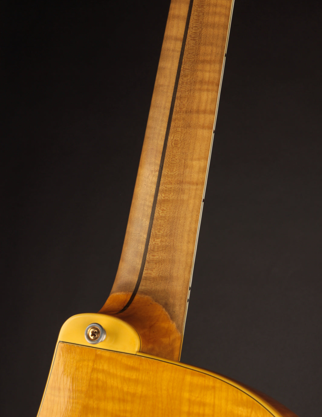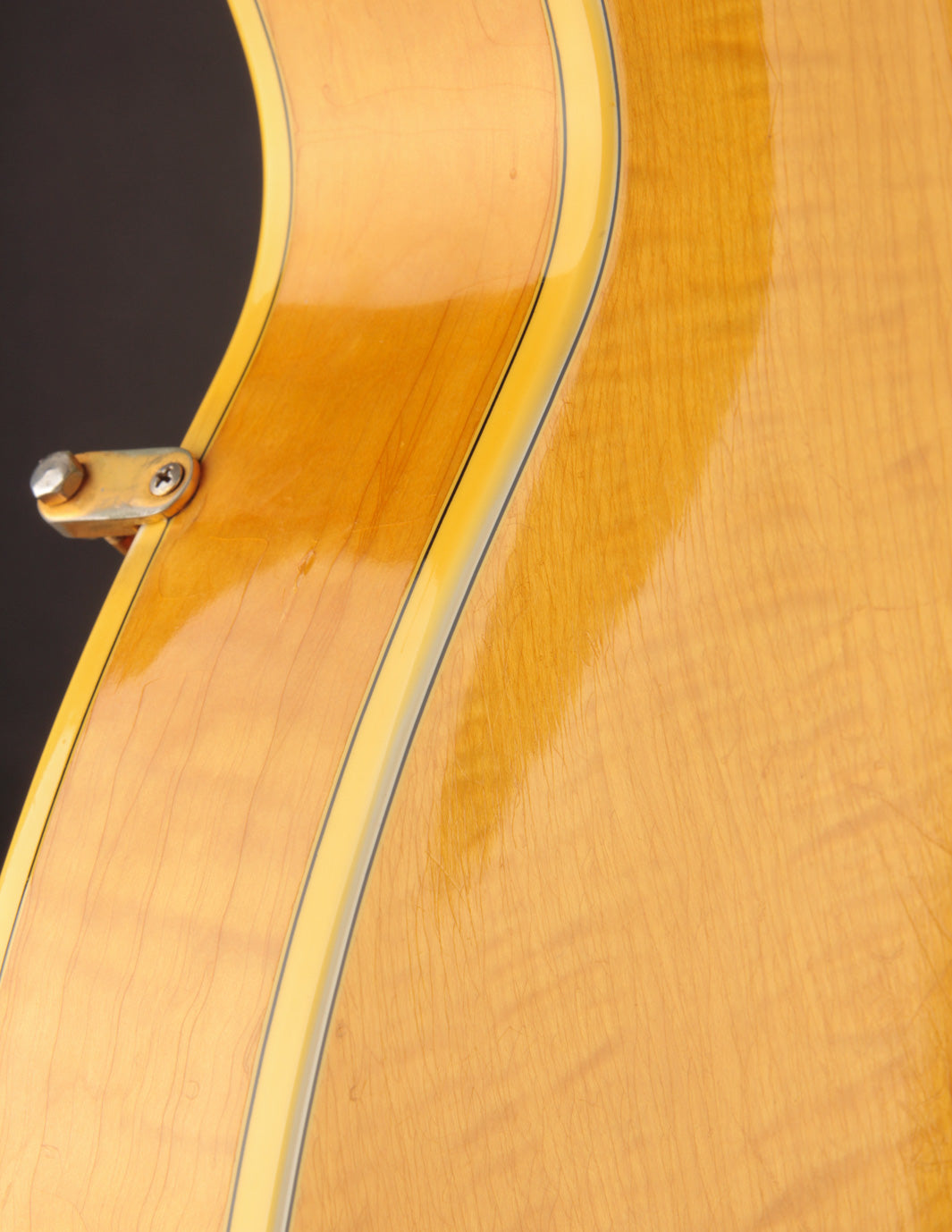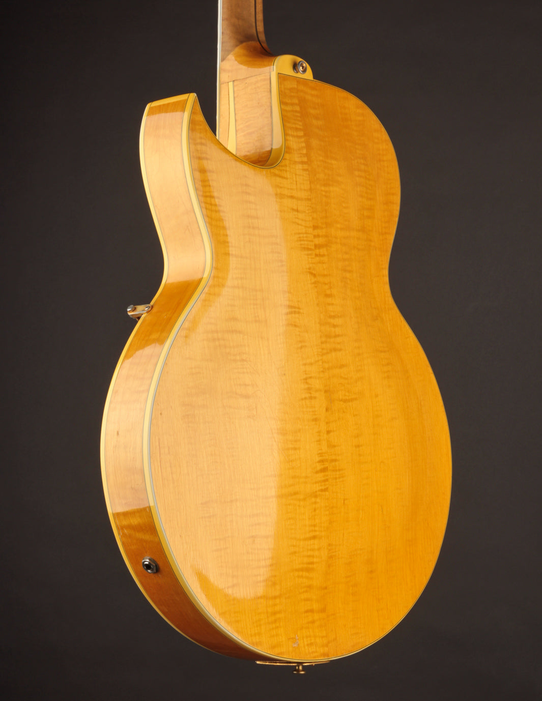 The beautiful carved Spruce top and highly figured Maple back and sides are further highlighted by the rare Natural finish, but even rarer is the body's cutaway style.
