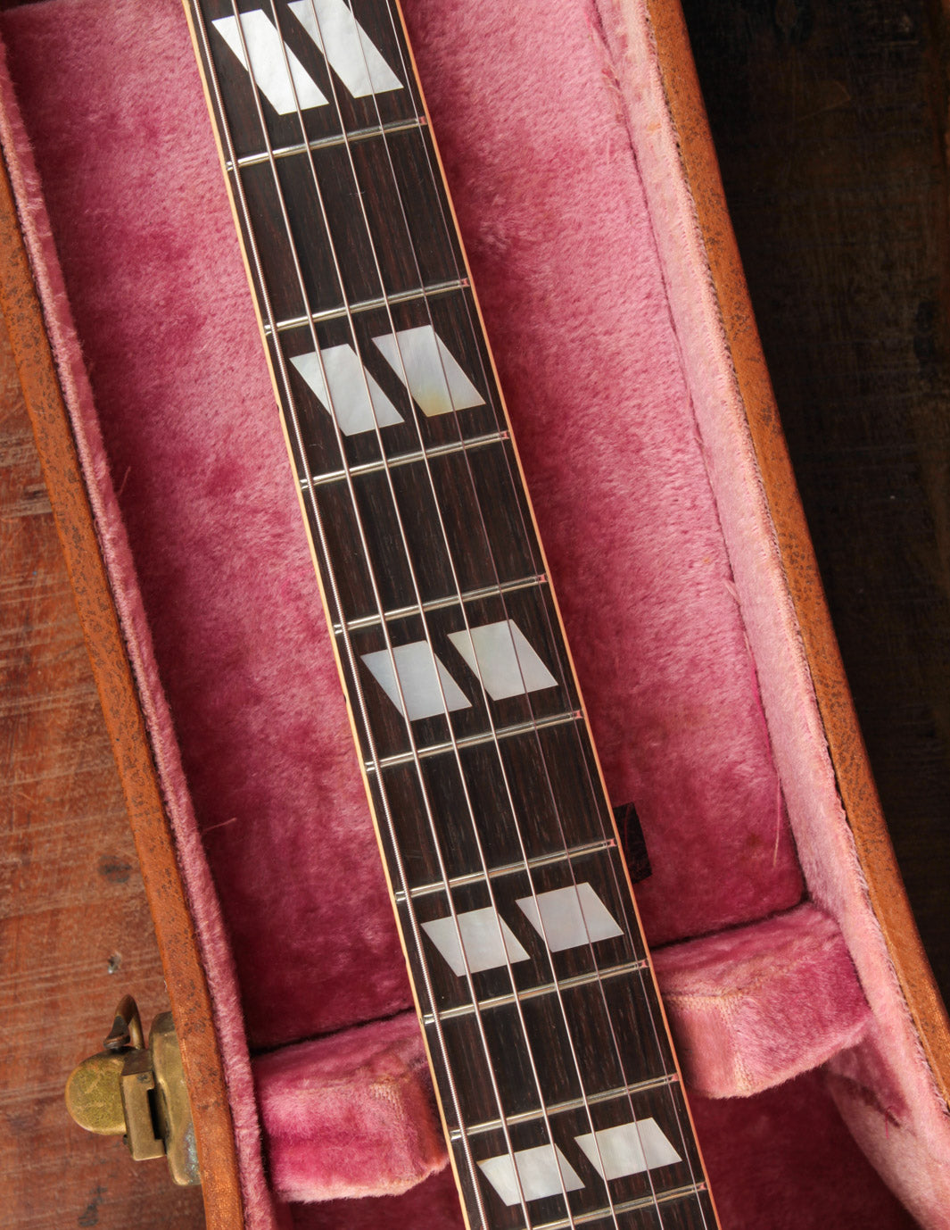 The full C Maple neck has excellent feel and playability, with the wider 1 3/4" nut accommodating both fingerstyle and flatpicking rhythm work equally well. The original Kluson 'no line' tuners are in excellent condition, and the original nut shows very little wear or additional string slot manipulation.