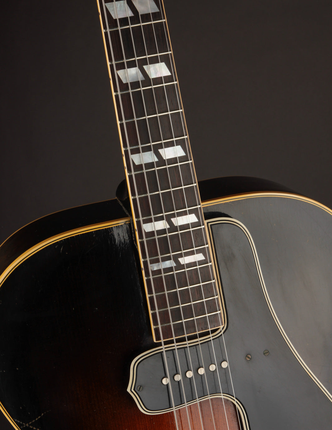 Although not as appointed and appreciated as the L-5, the L-7E offers top-tier tone that Golden Era Gibsons are known for.