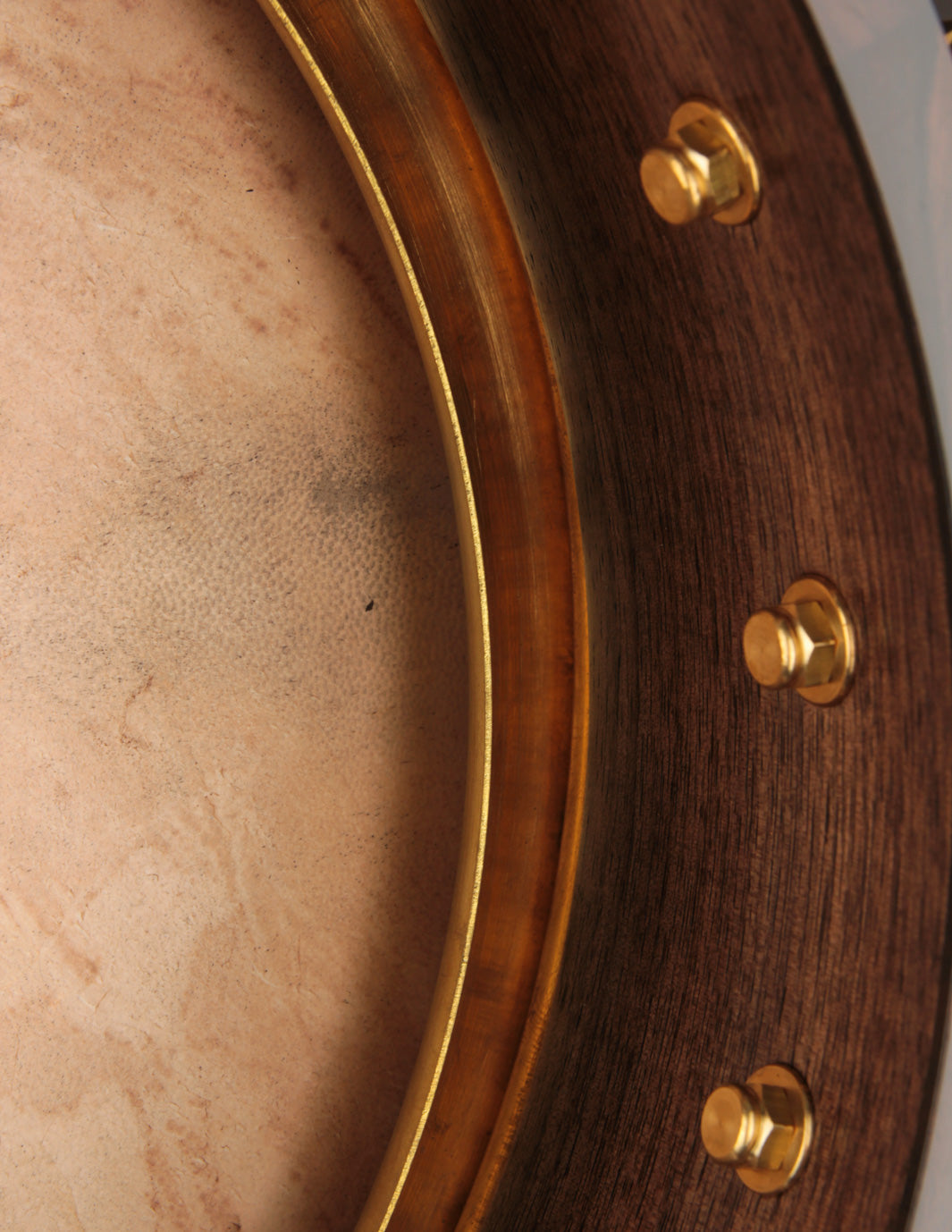 This instrument, a 12" banjo featuring a Dobson tone ring and all-Walnut construction, is powerful, clear, and midrange forward.
