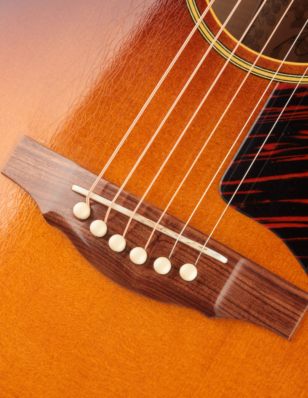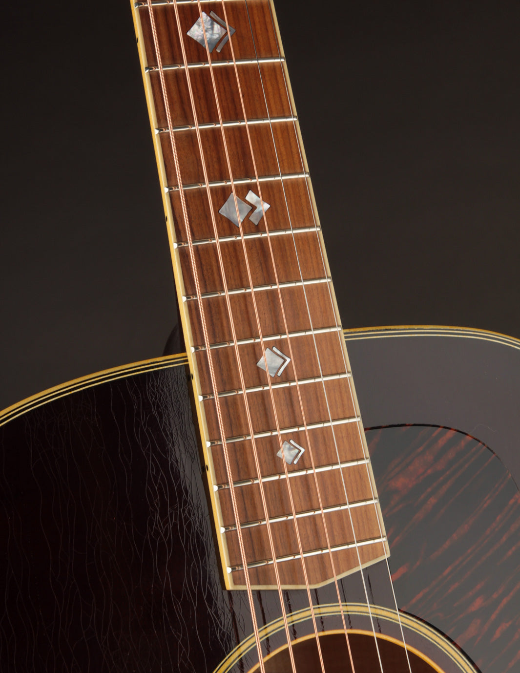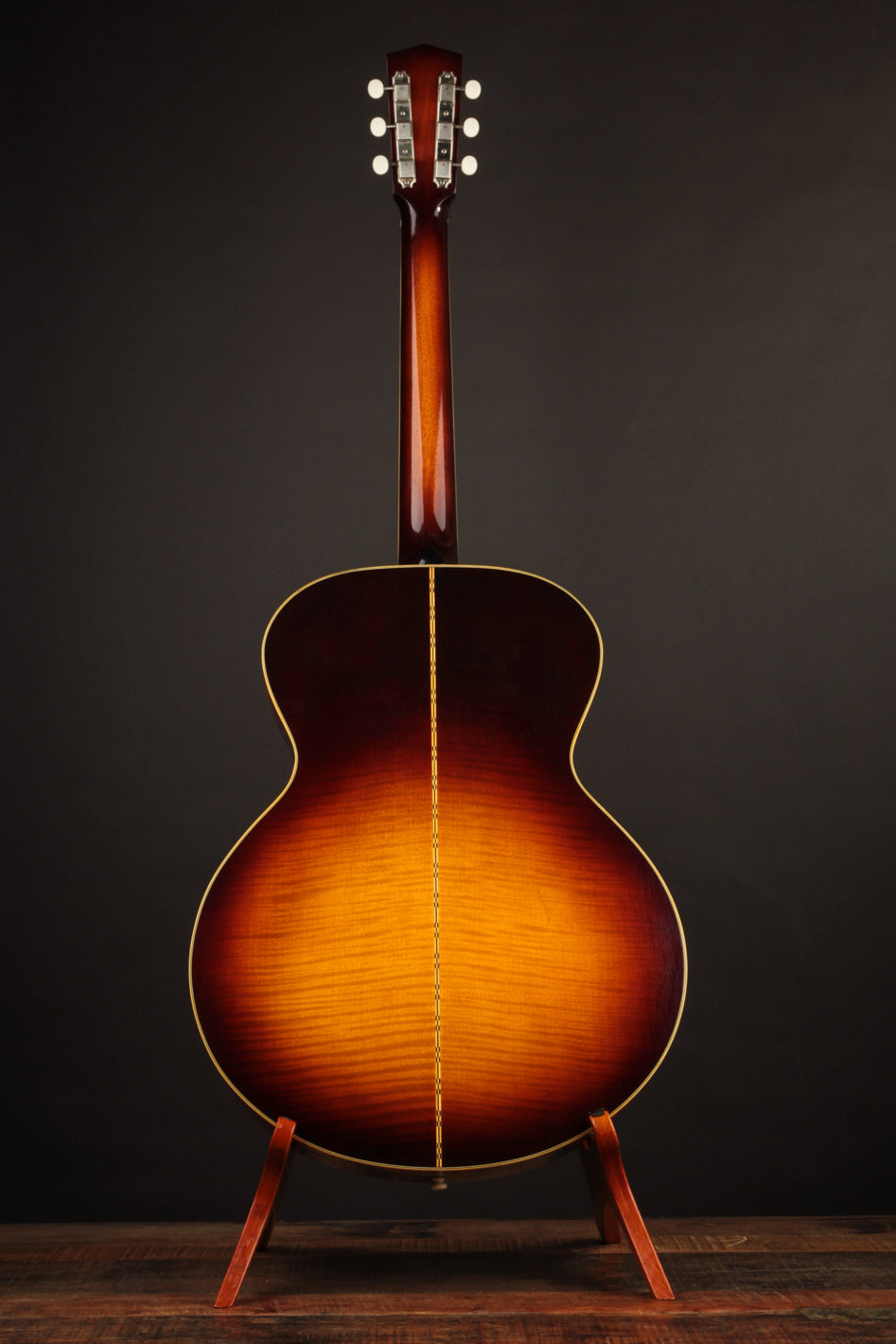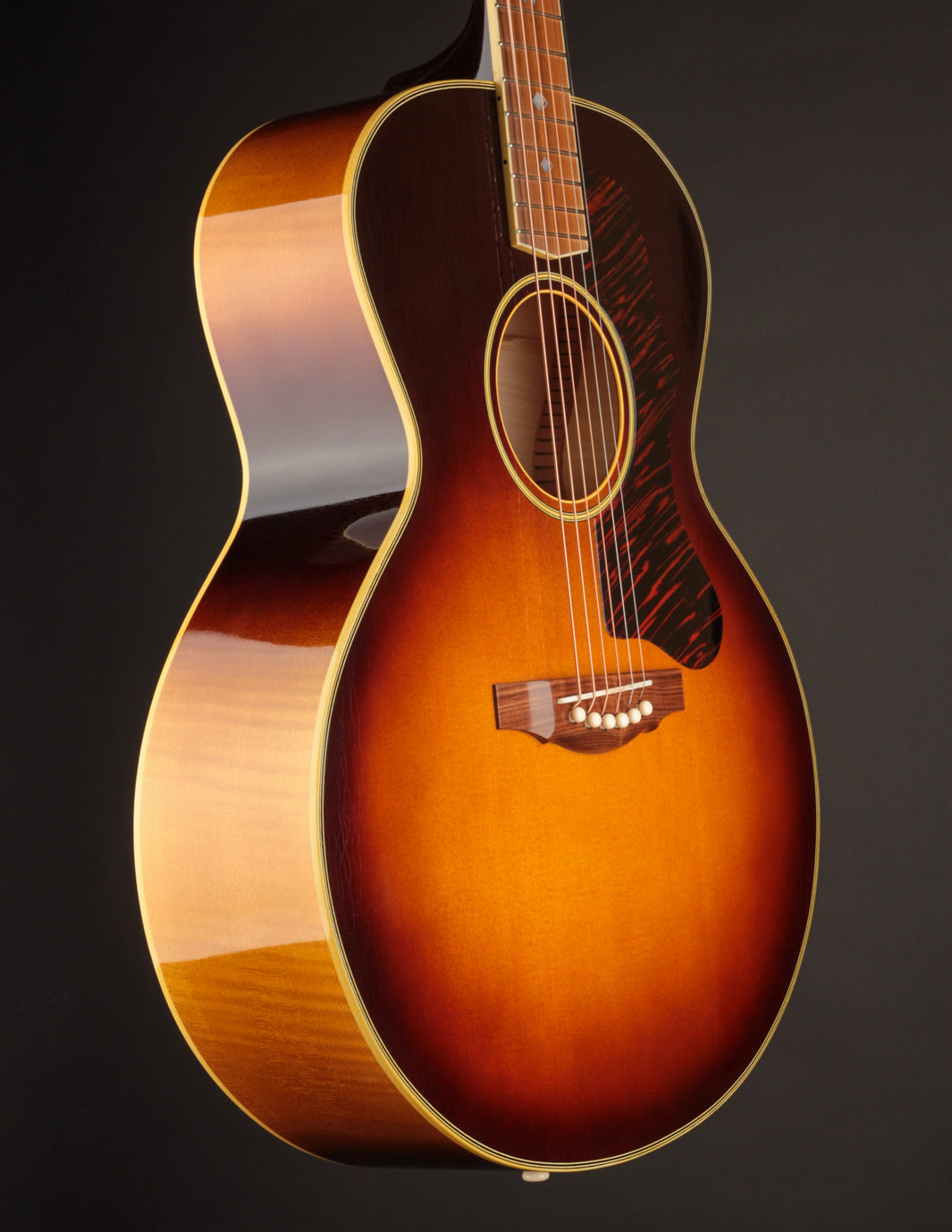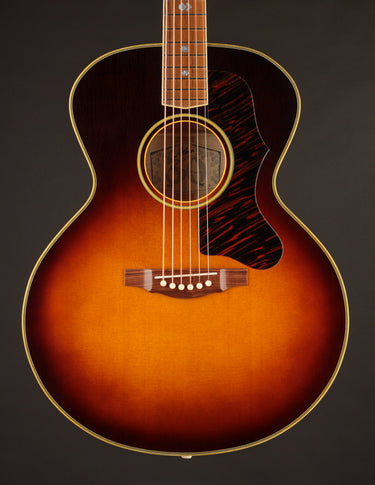 This ASJ recalls the well-known small jumbos of the 1950's; and it features beautiful flamed Maple back & sides in place of the Standard Mahogany. It's far from a "bright" sounding guitar, despite what you've heard about Maple; but it's got all the crispness needed to sit presently in a mix. The low end is downright huge for a guitar this size. And it makes a beautiful, well-defined backup when used to accompany vocals.
