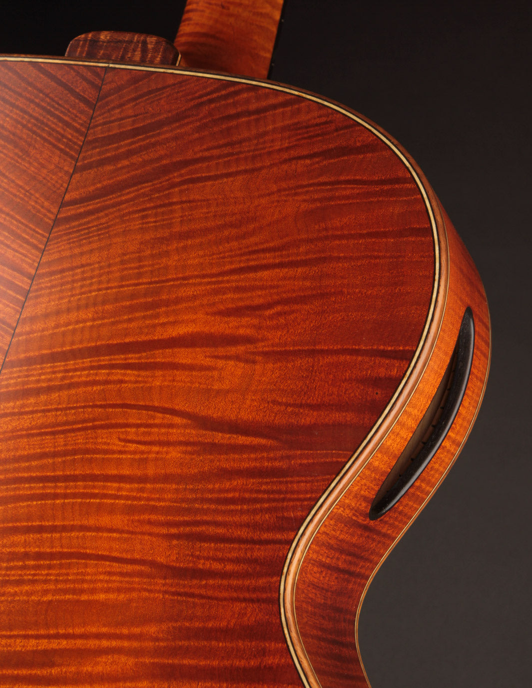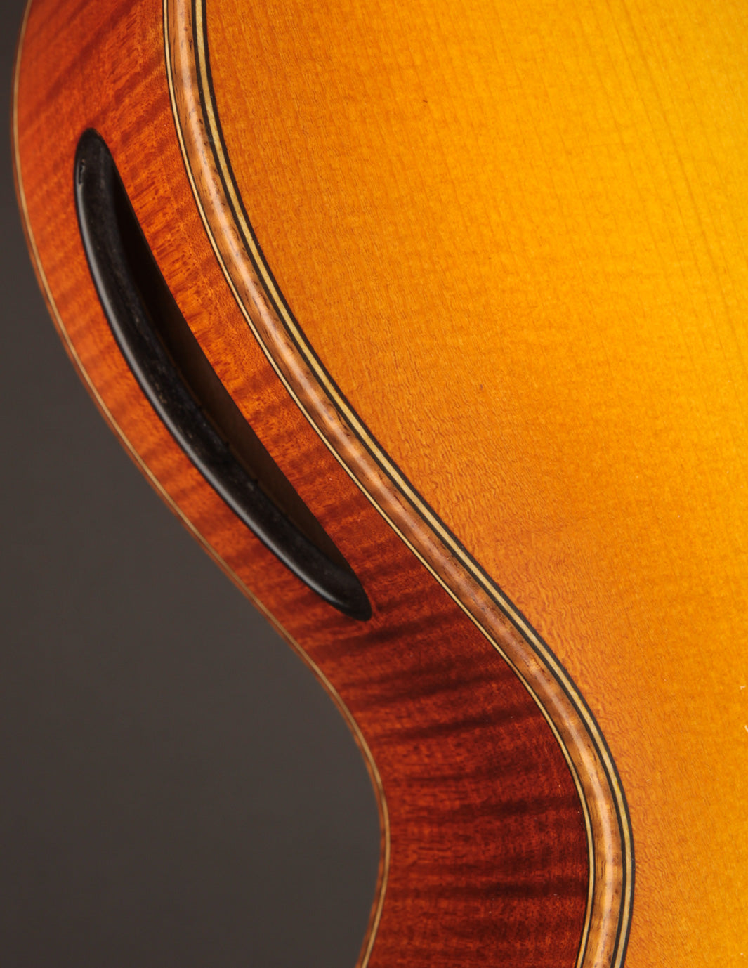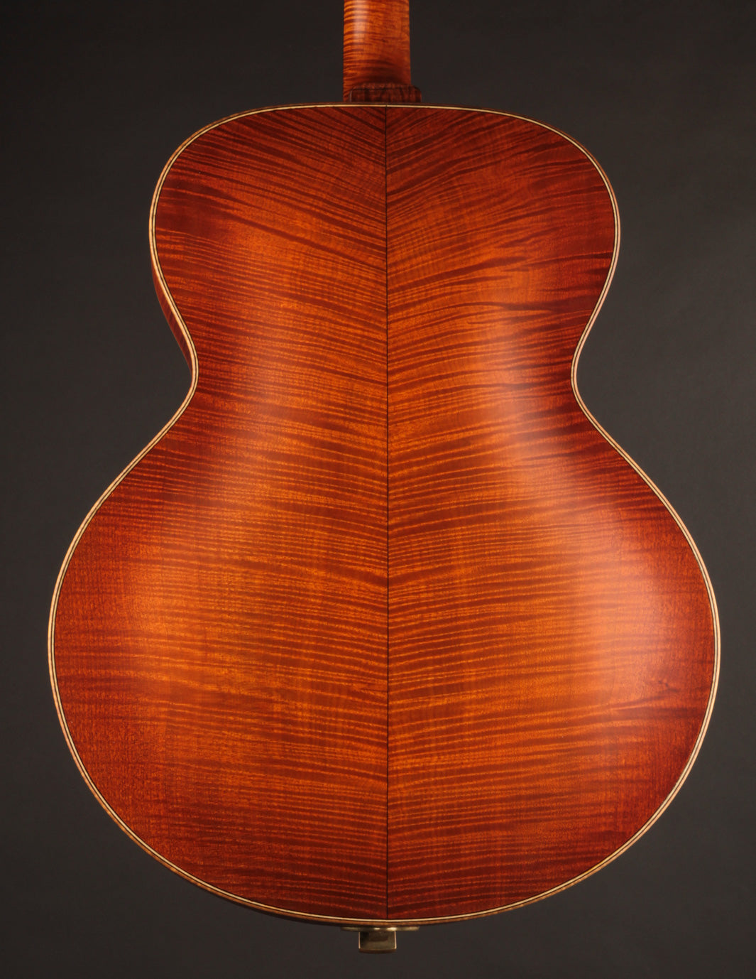 From the handmade, cast tailpiece to the impeccable, satin finish over a lovely iced tea sunburst, Bayard's rigorous attention to detail is on full display. As impressive an arched-top instrument as we have seen in some time here.