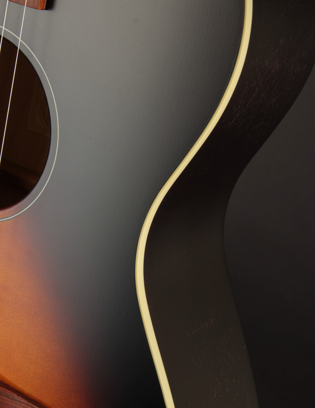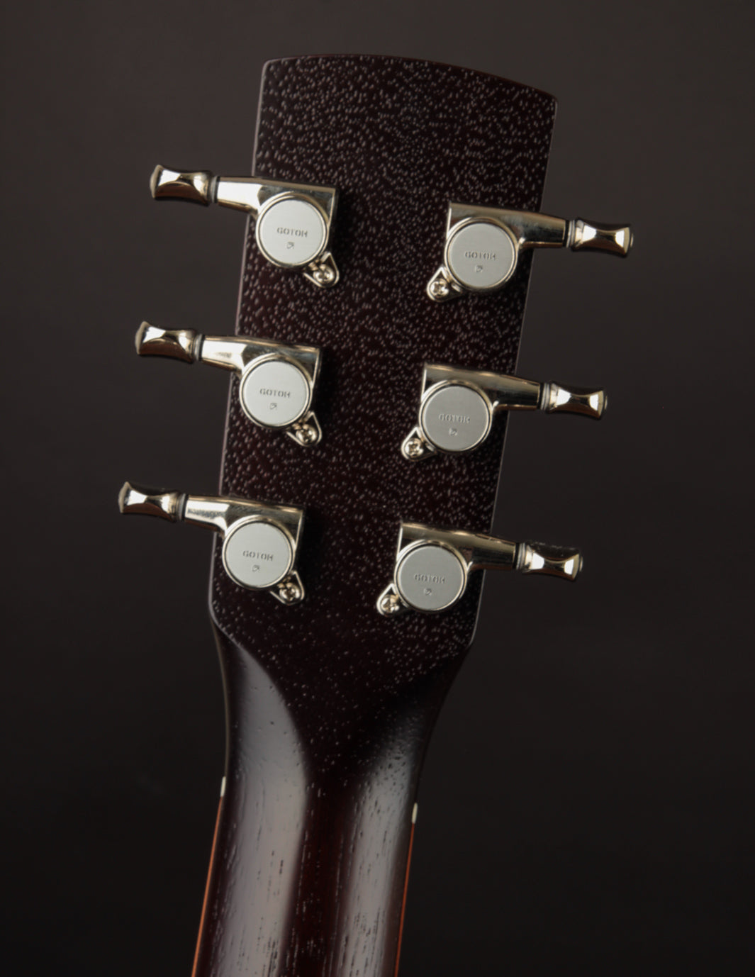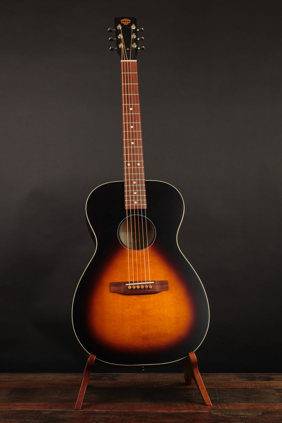 The Sidecar is the flagship model of the Deco line. The classic and compact Beard “R” body shape is comfortable and appealing. A solid spruce top featuring mahogany Aero-X bracing provides a rich, balanced sound with a slightly pronounced midrange response. The Sidecar is especially suited for fingerstyle and blues. The mahogany 14 fret neck has a subtle V-shape to provide plenty of comfort and access.