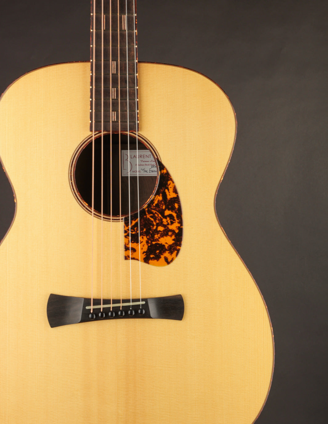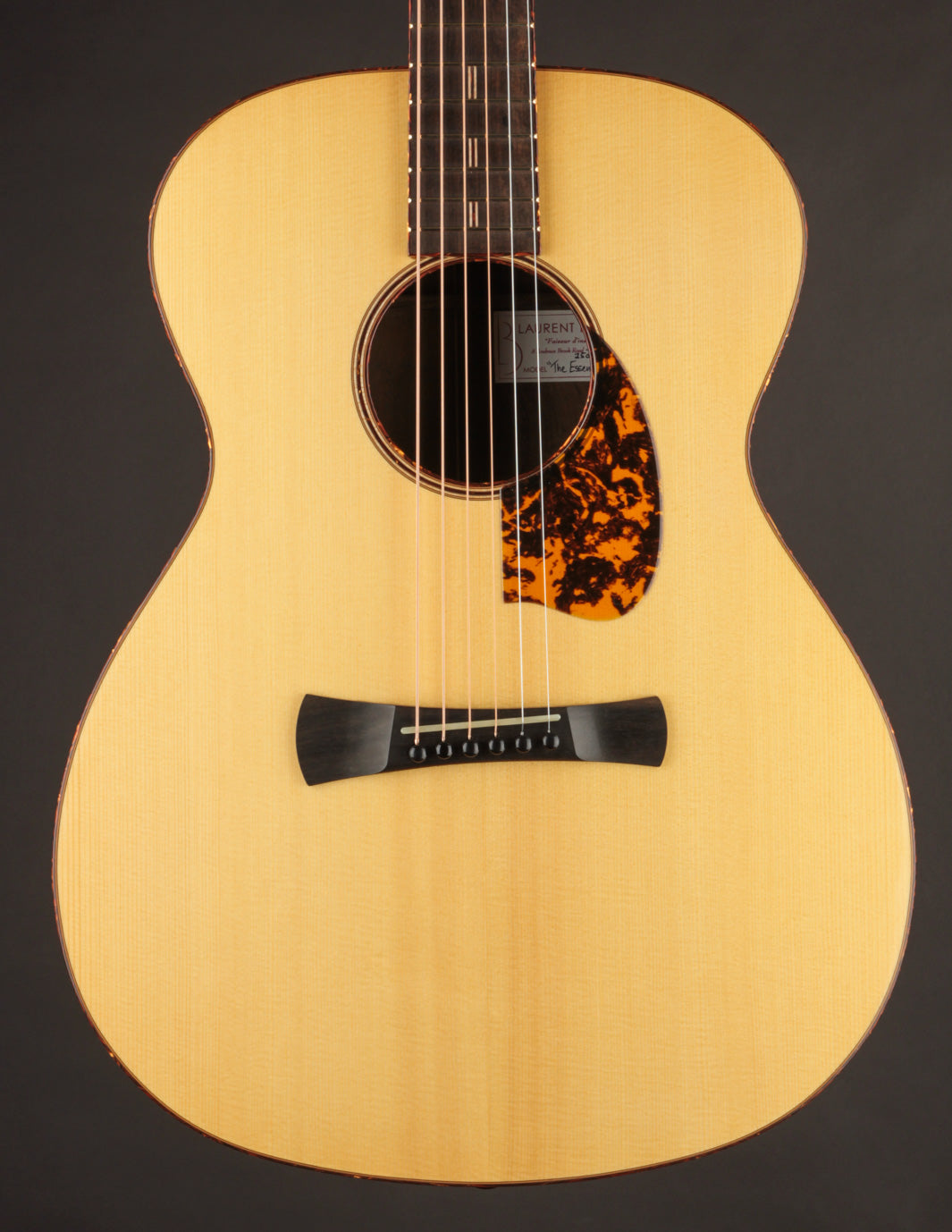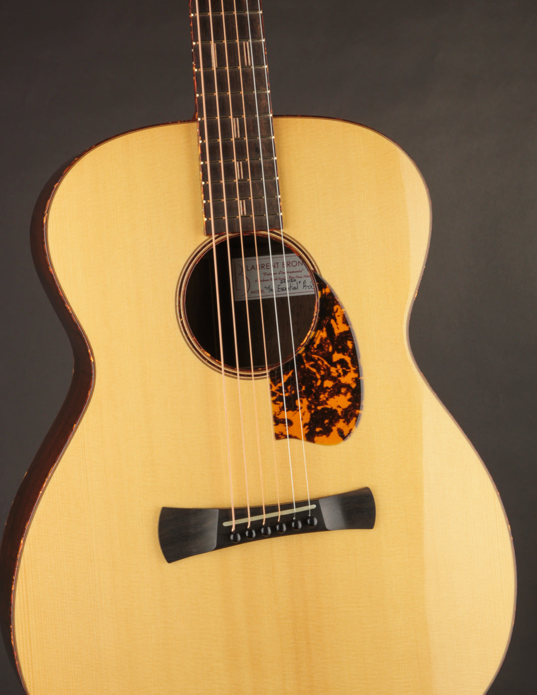 This is the first new A-2 we've had from luthier Laurent Brondel in several years -- and the first ever in Brazilian Rosewood. You're probably anticipating the now-cliched description of how amazing this guitar's sound is; but some things bear repeating. This instrument is a poster child for the magical Brazilian Rosewood sound ~ lush, clear, woody, and perfectly balanced all at once. It's very powerful and responsive, with more than enough headroom to project fiercely under a flatpick; and the 25.6" scale allows for beautifully present tones when the guitar is tuned down. There isn't a guitar in the shop we can recommend over this one for players interested in branching out from underneath the awning of the uber-traditionally styled OM. Priced with Hiscox hard case.