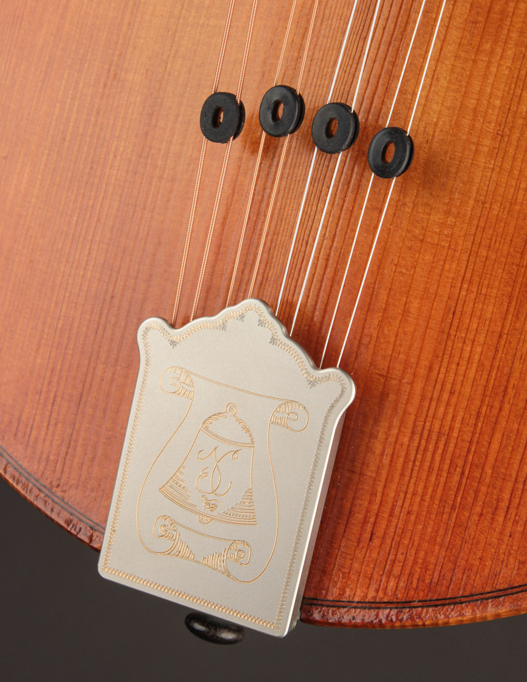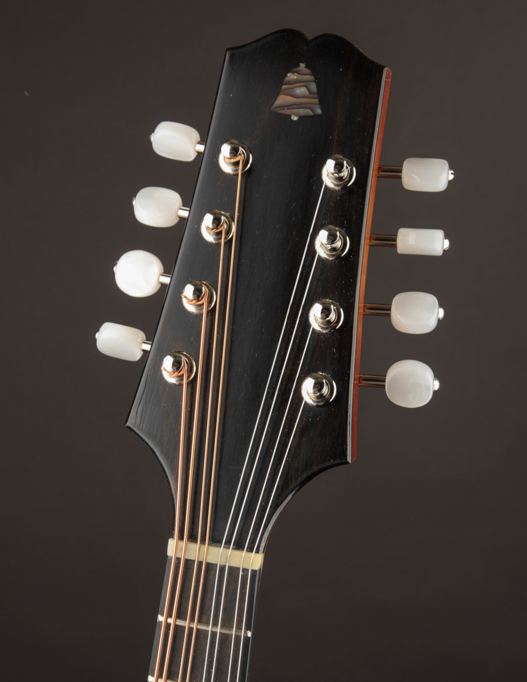 Aided by its European spruce top and tone bar bracing, this Campanella A style has some serious pop, focus and power. Appointments include a James tailpiece, Grover tuners, Campanella's signature bell headstock inlay in abalone, and an ebony pickguard.