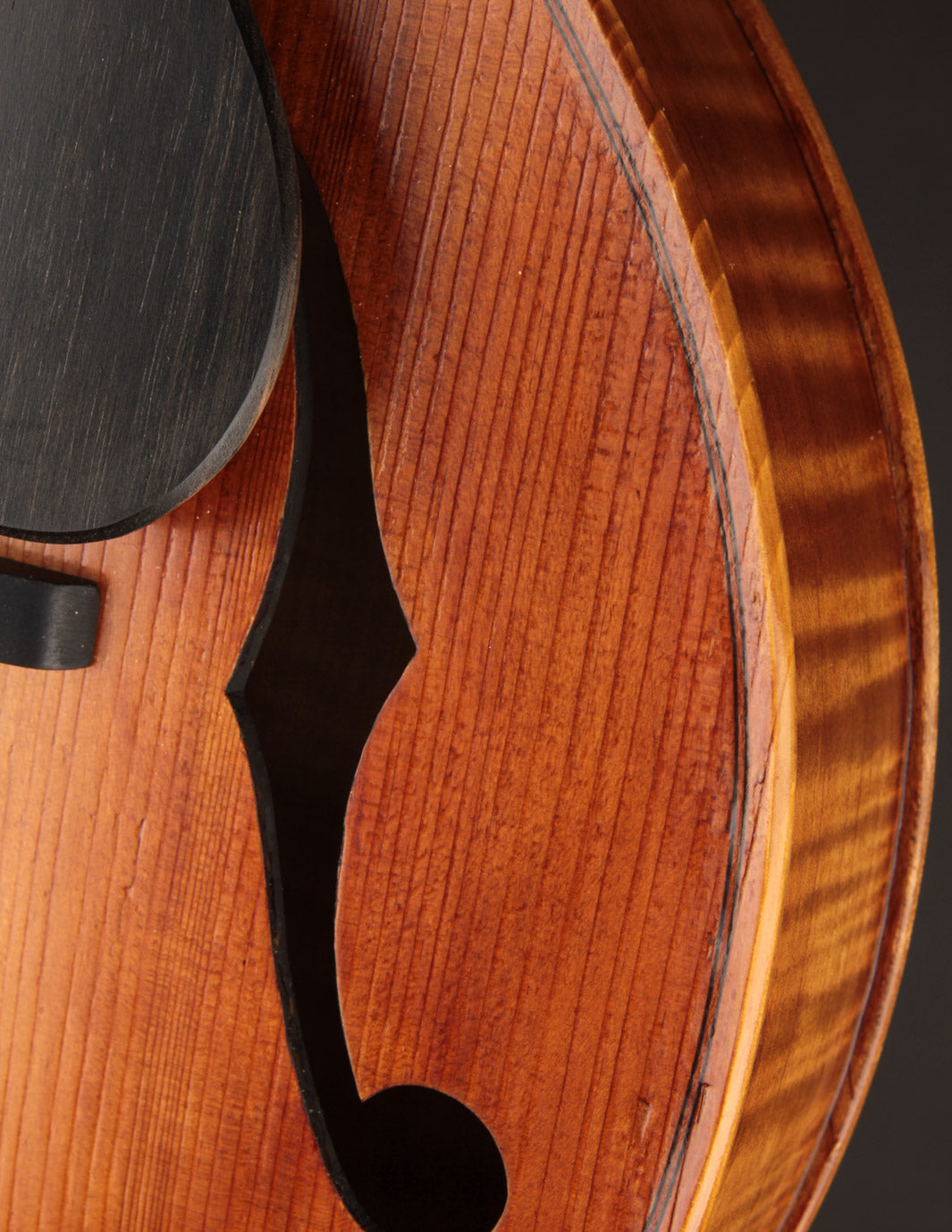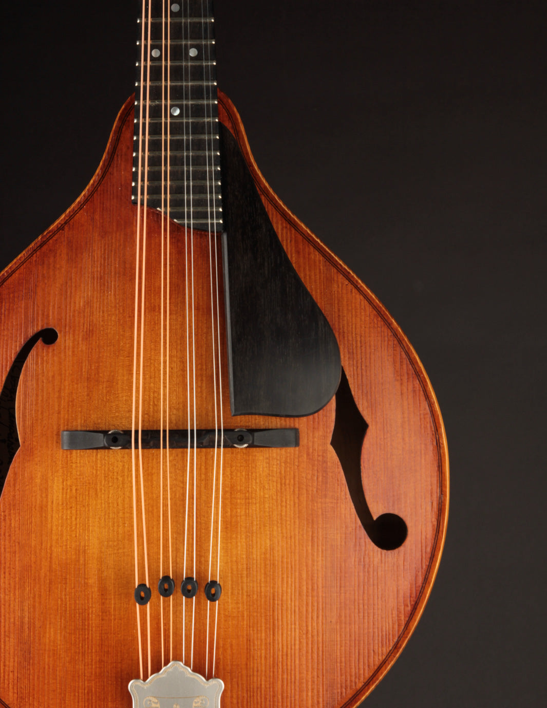 Joseph Campanella Cleary builds exquisite, sonorous mandolins that draw deeply on violin design and aesthetics. While his use of overhung violin edges and deep, earthy colors visually distinguish his instruments, the most exciting aspect of Campanella mandolins is their sound.