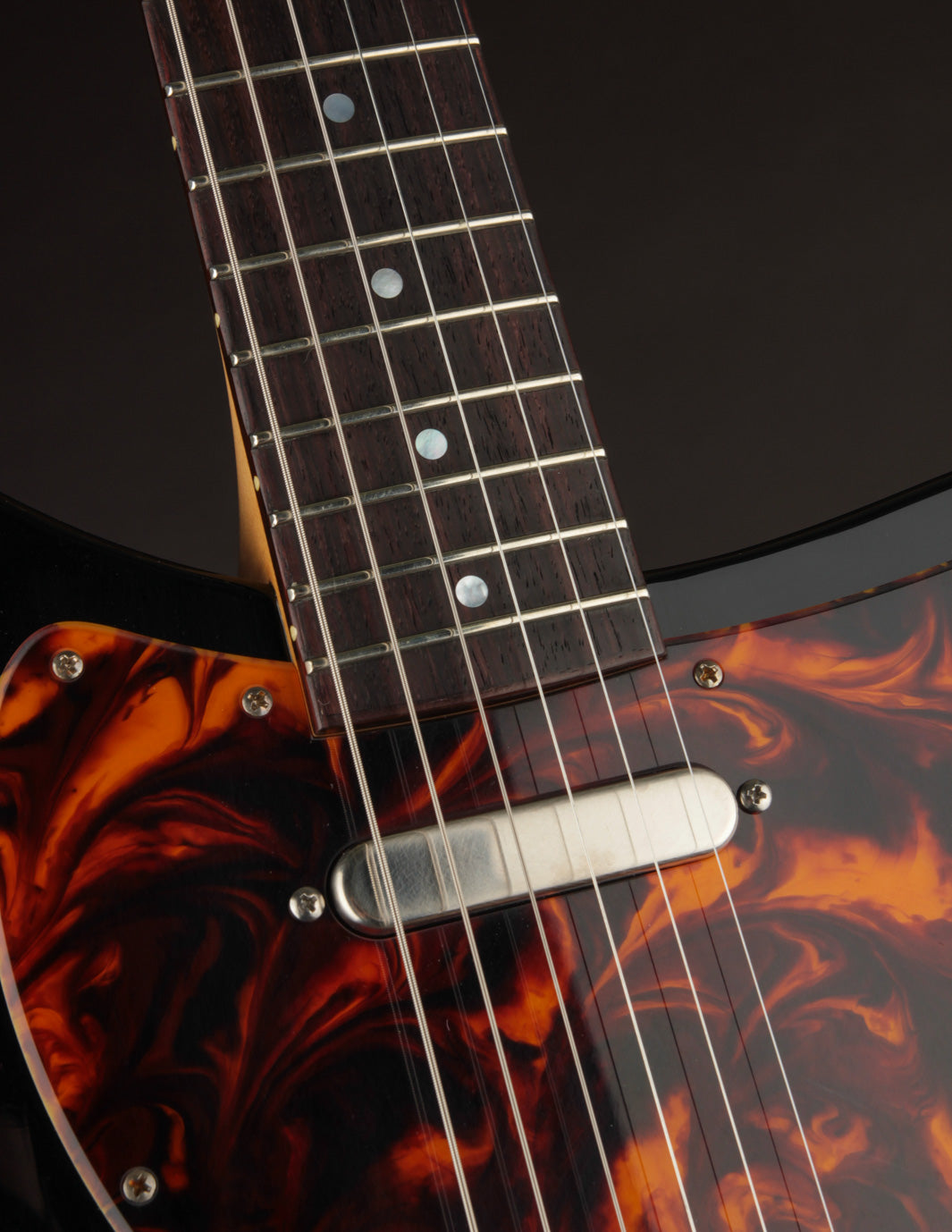 Plugged in, the Ron Ellis pickups deliver classic Tele chime and punch, but with a smooth, controlled compression that keeps things musical. A clever push/pull tone control offers a built-in fat boost - no pedal required. Yes please.