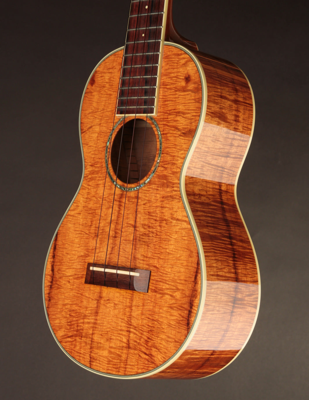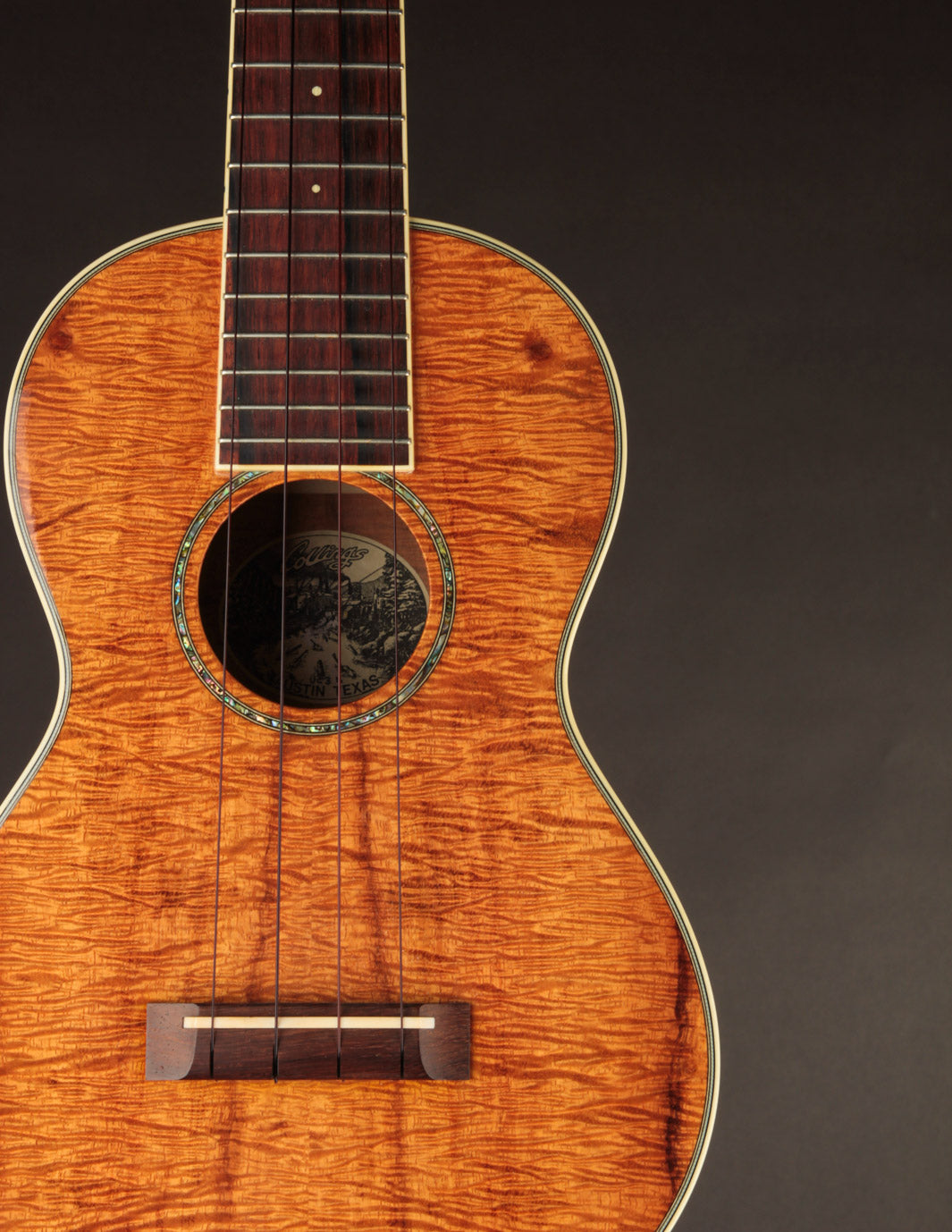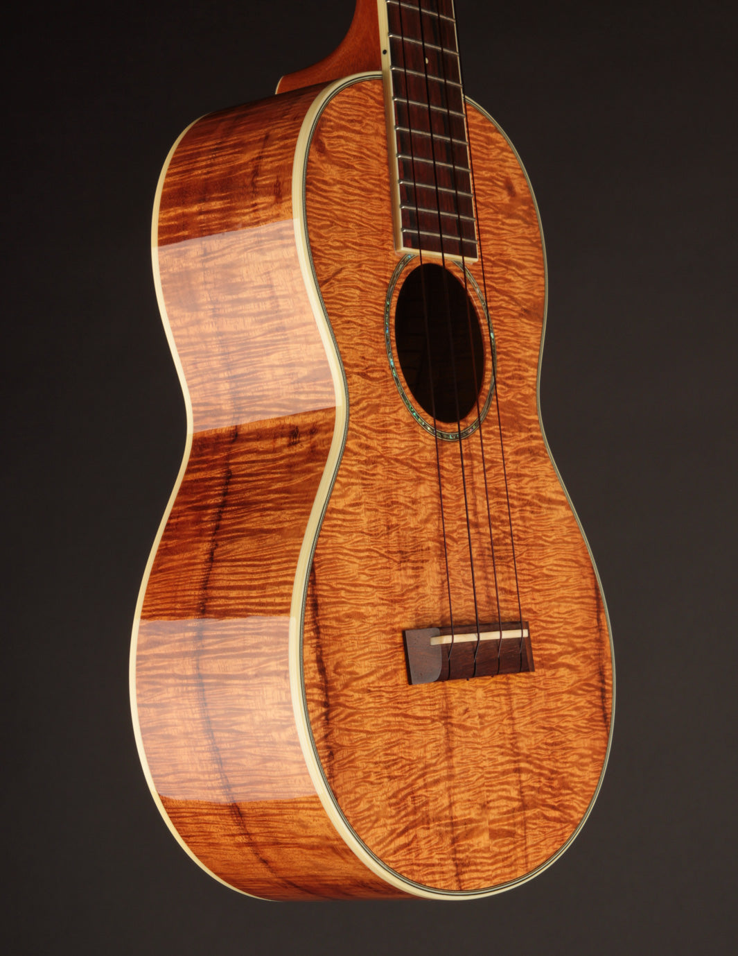 This Collings UC3 Koa has just come into the shop on trade! The style-3 appointments were the dressiest in the Collings ukulele lineup when those instruments were in production; and they correspond to the selection of highest-quality tonewoods as well. This concert-sized uke features some dazzling curly Koa; and it exhibits the expected brilliant, punchy sound.