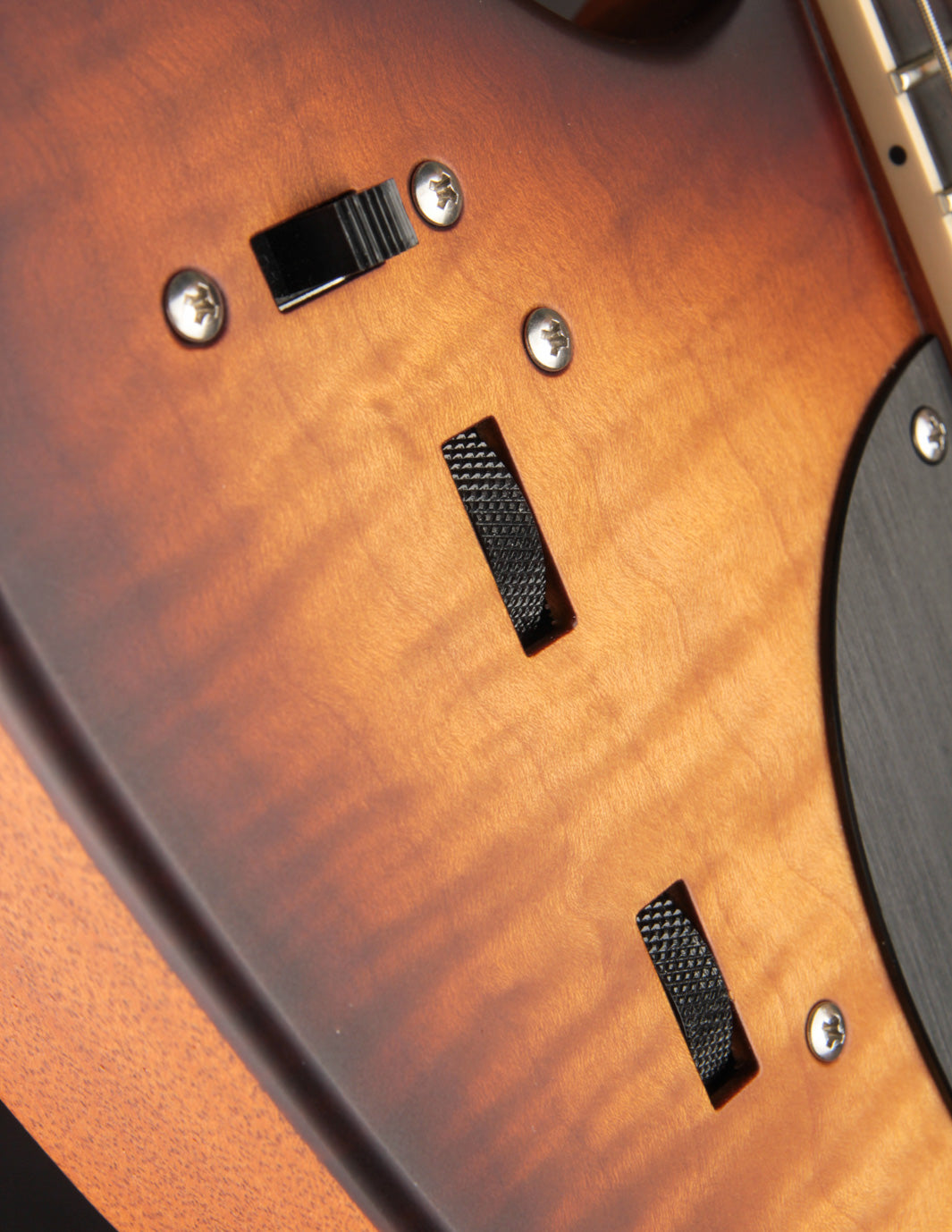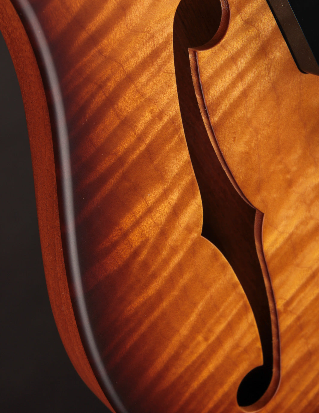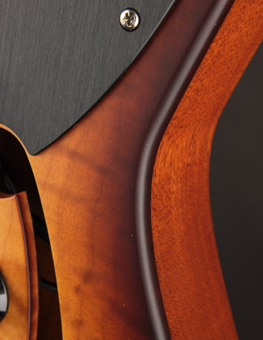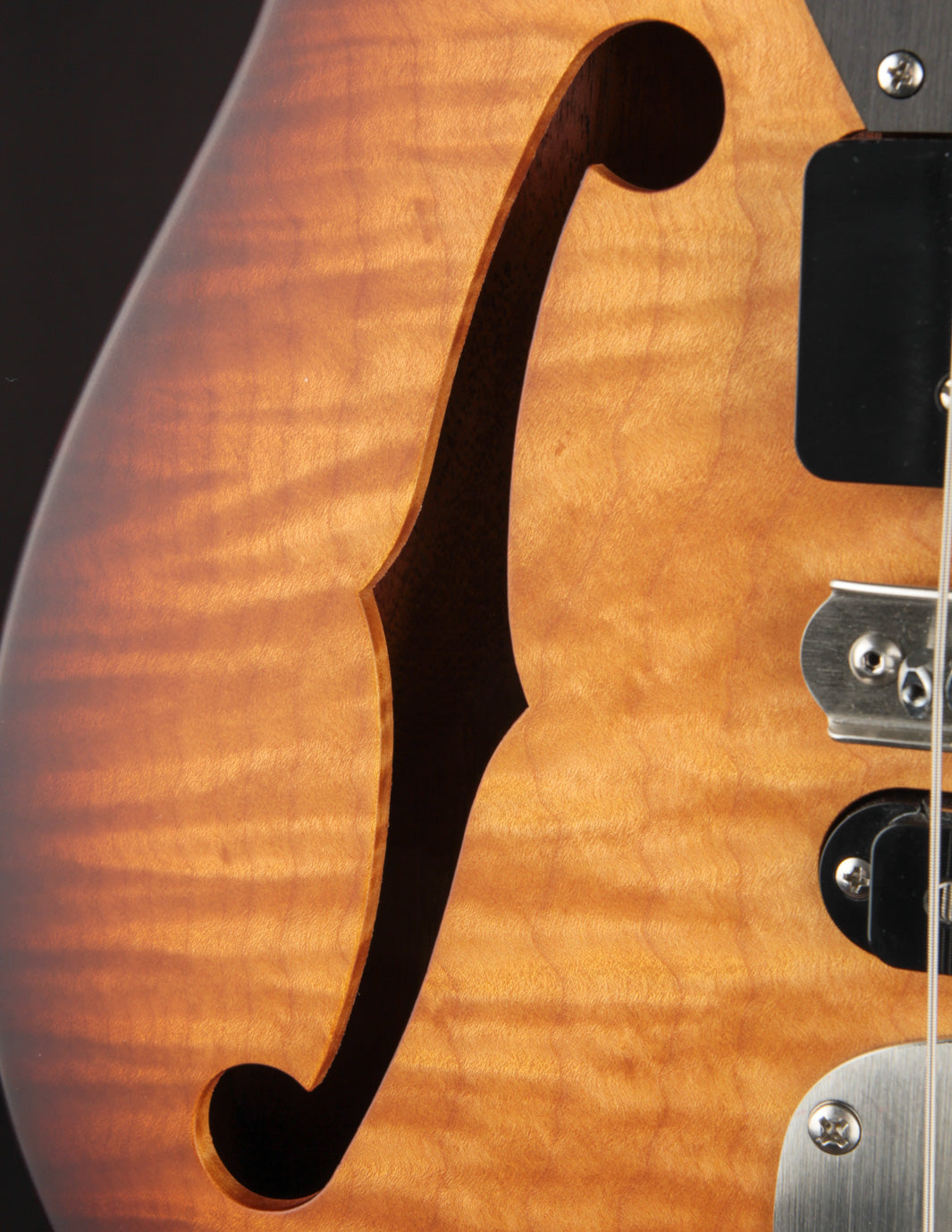 If you've handled the likes of a Huber, Ronin, or Koll, the playability will feel right at home. These guitars are incredibly well dialed-in, with expert fretwork and neck shaping along with a truly remarkable level of fit and finish. The 2-tone Sunburst finish is shot with a tight dark perimeter that transitions into an ambered yellow, exciting all of the gorgeous flame in the figured Maple top. It contrasts very well against the more natural hue of the one-piece Honduran Mahogany body. Top shelf hardware (Mastery, Gotoh) and high quality electronics (CTS, Bourns) also help maintain that high level of playing experience and function. No stone is left unturned with these guitars.