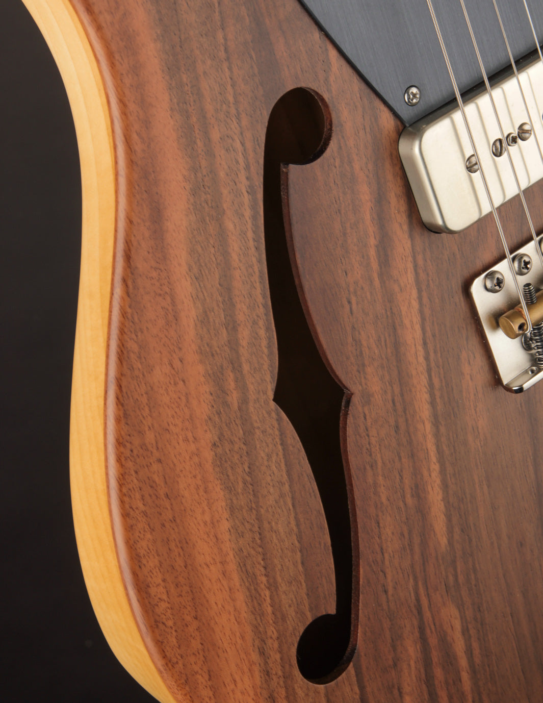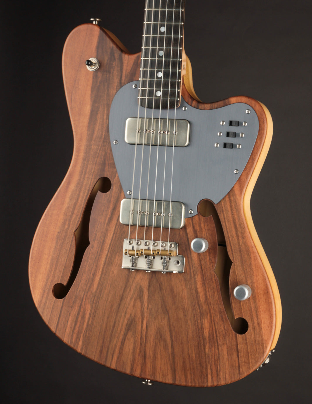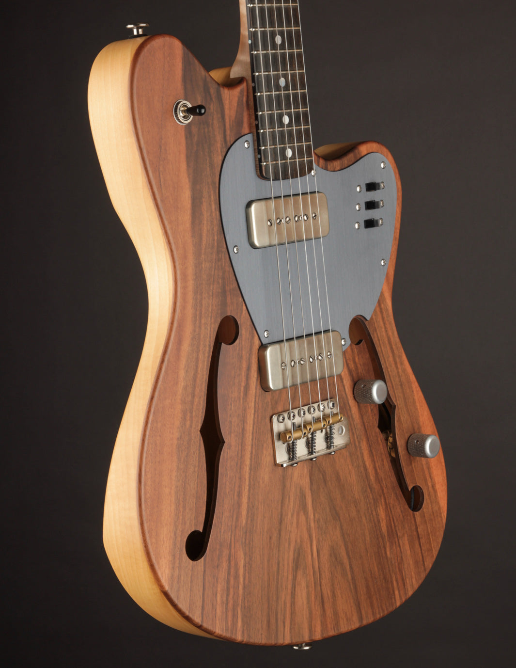 Bluestar No. 023 is for the wood lover. Seeing these exquisite sets of tonewoods in their most natural state and experiencing their inherent resonant properties in a semi-hollow build is such a joy. The connection between player and instrument couldn't be more organic, and Deimel made sure to further solidify that quality with some excellent pickups and circuitry.